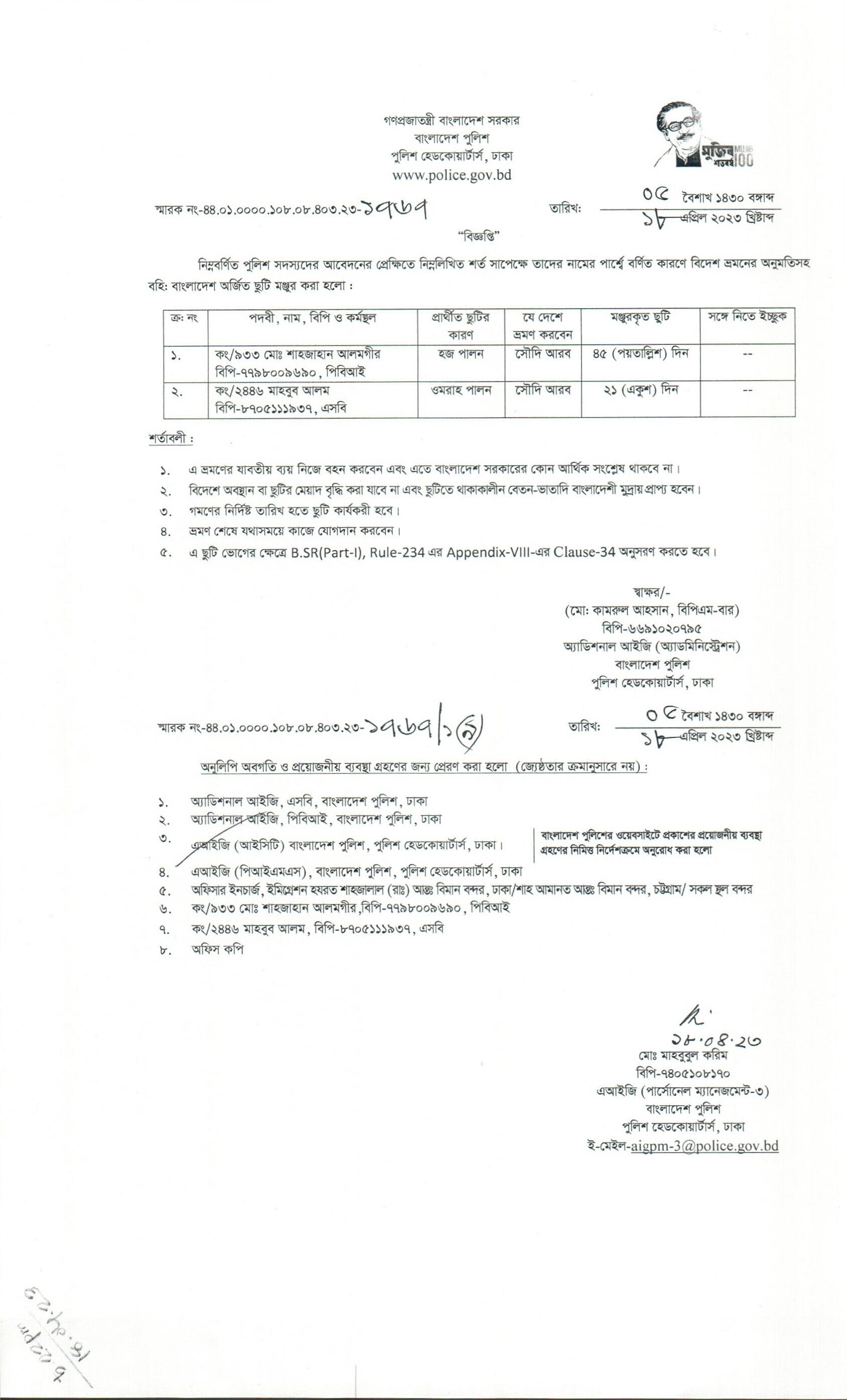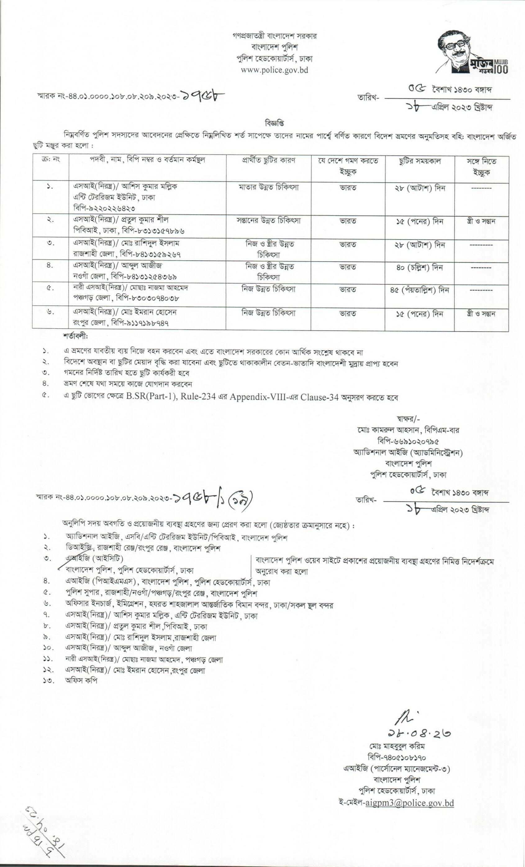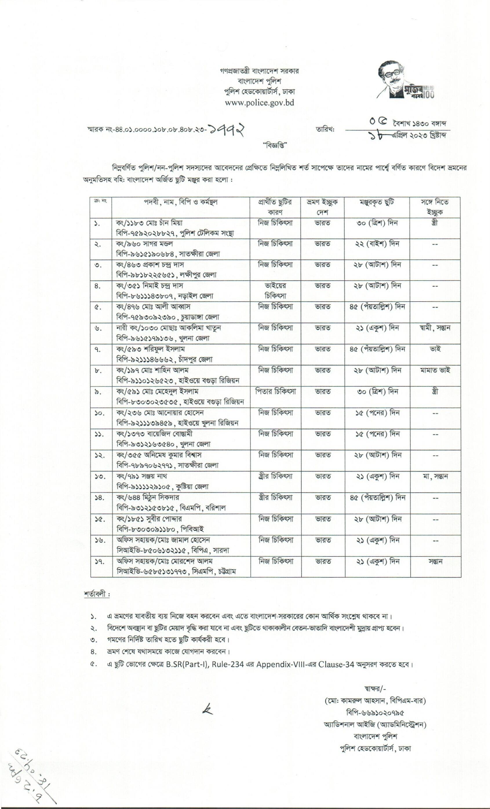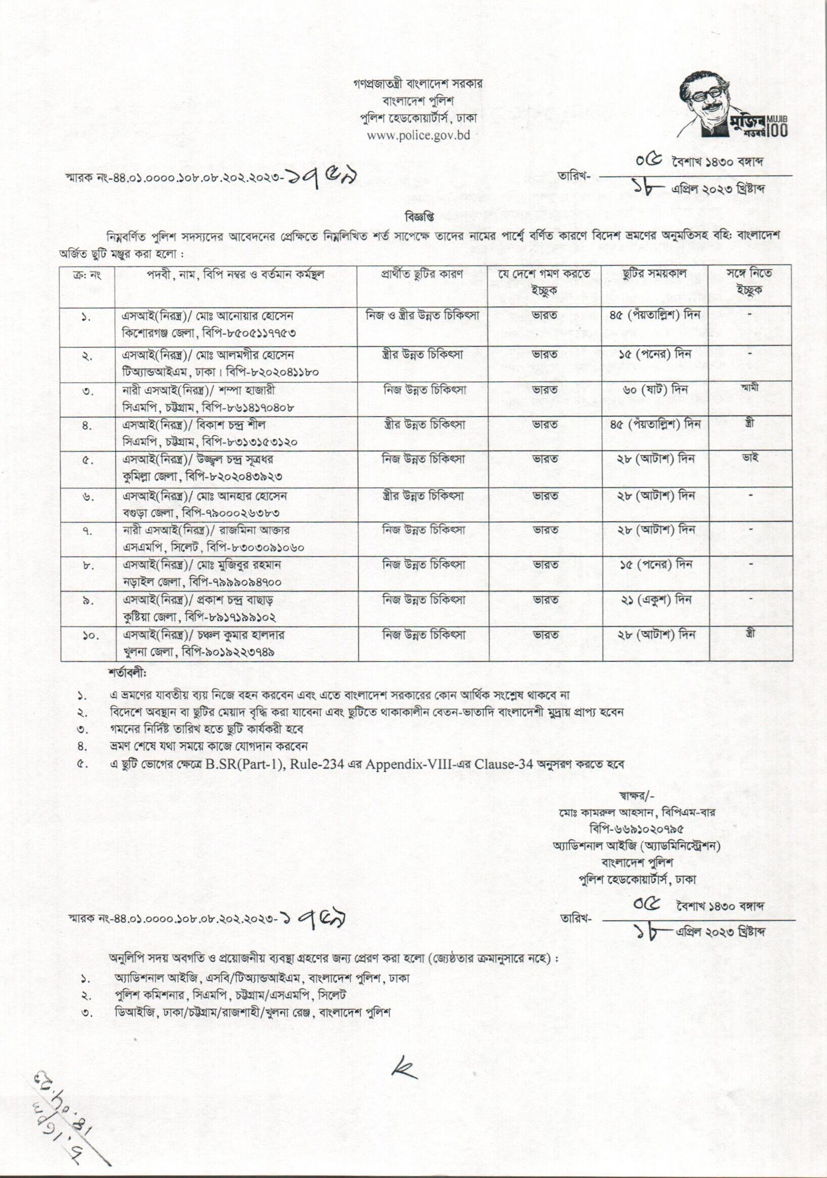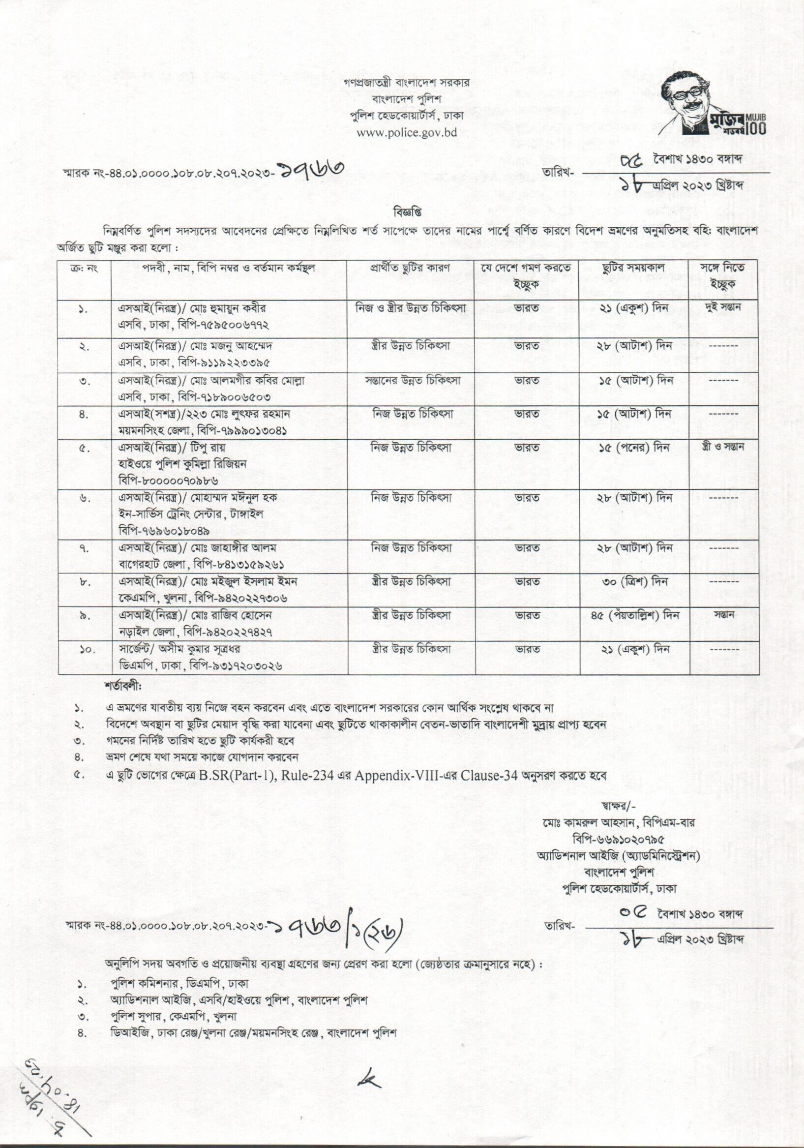 বহিঃ বাংলাদেশ ছুটি, বিজ্ঞপ্তি নং-১৭৭৩, তারিখঃ ১৮/০৪/২০২৩ খ্রিঃ।