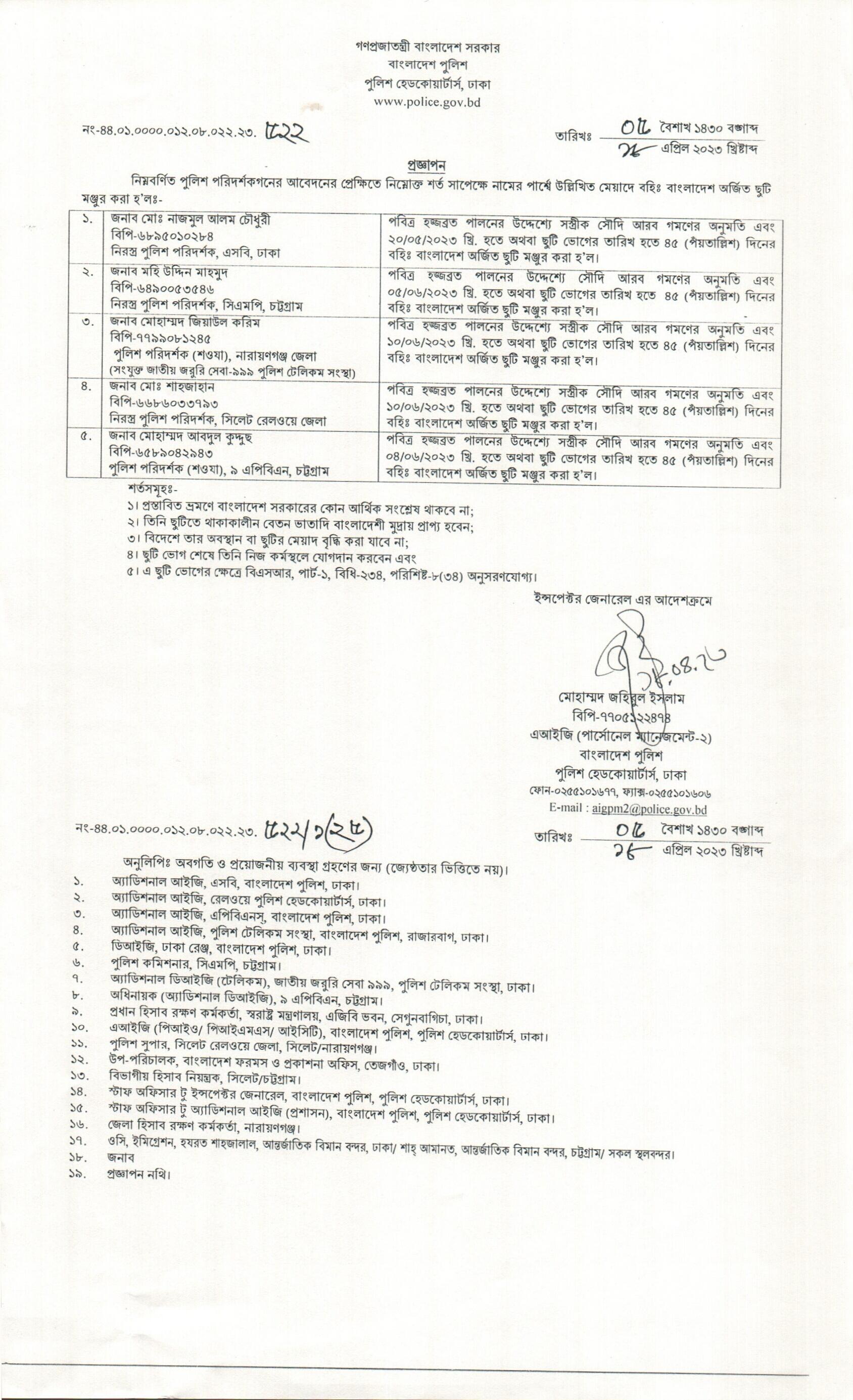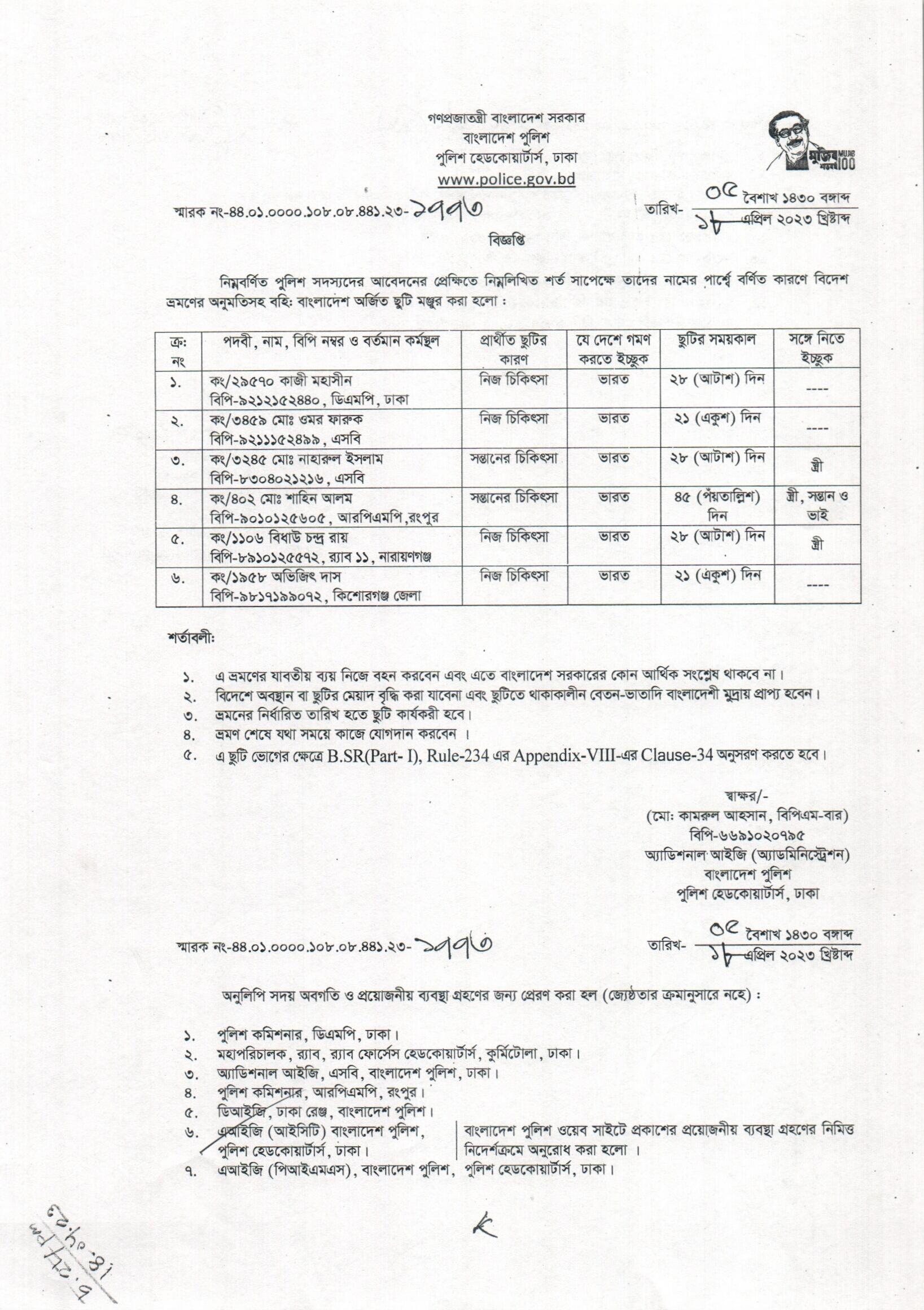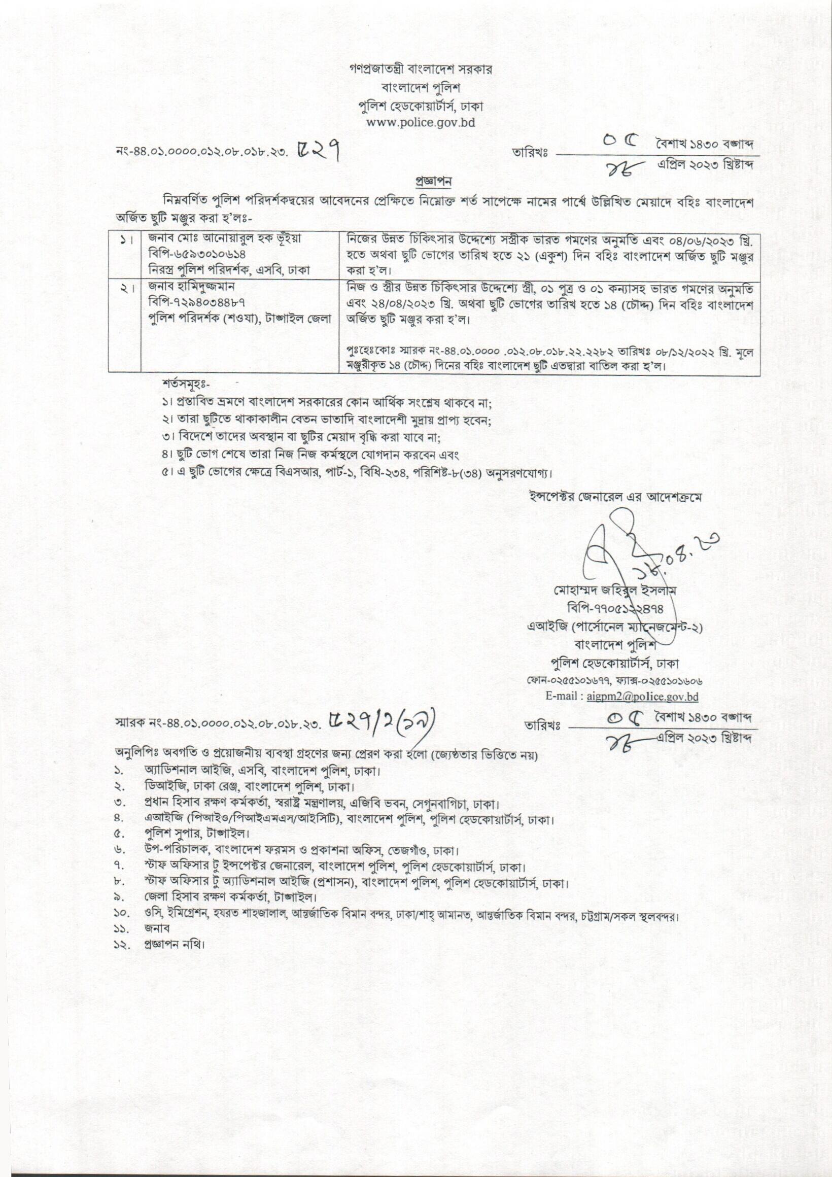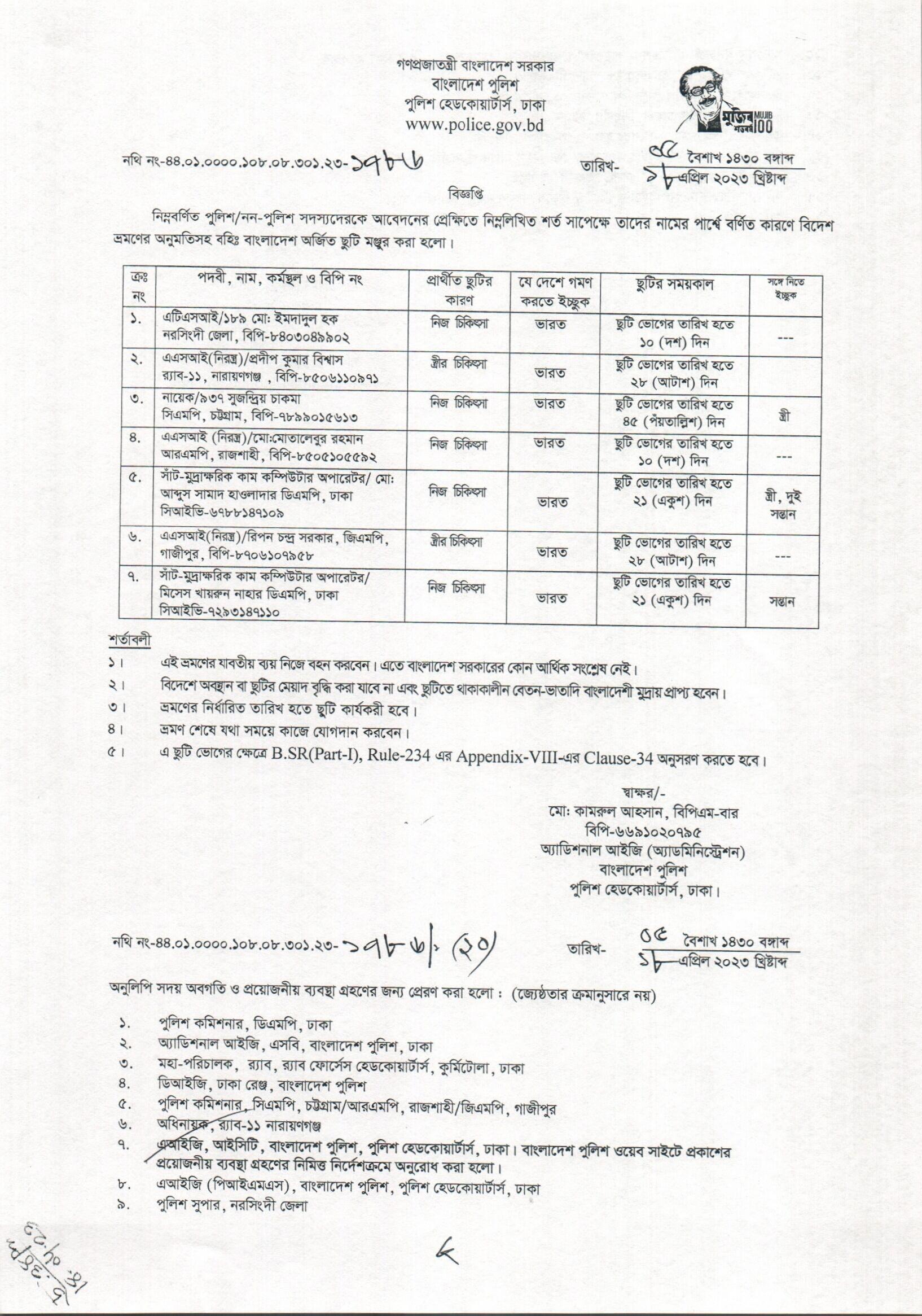 বহিঃ বাংলাদেশ ছুটি, বিজ্ঞপ্তি নং-১৭৮৫, তারিখঃ ১৮/০৪/২০২৩ খ্রিঃ।