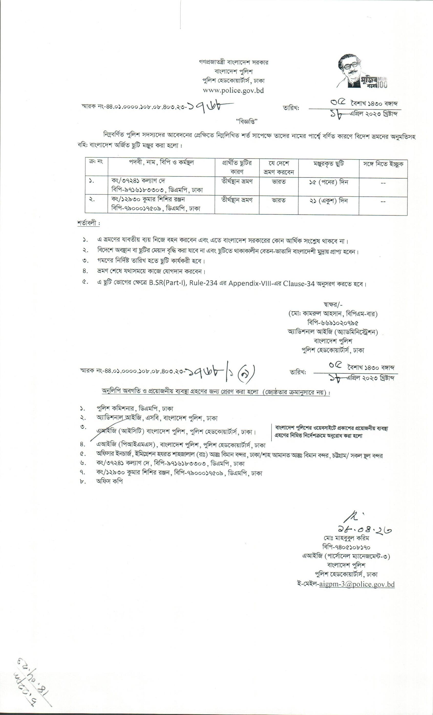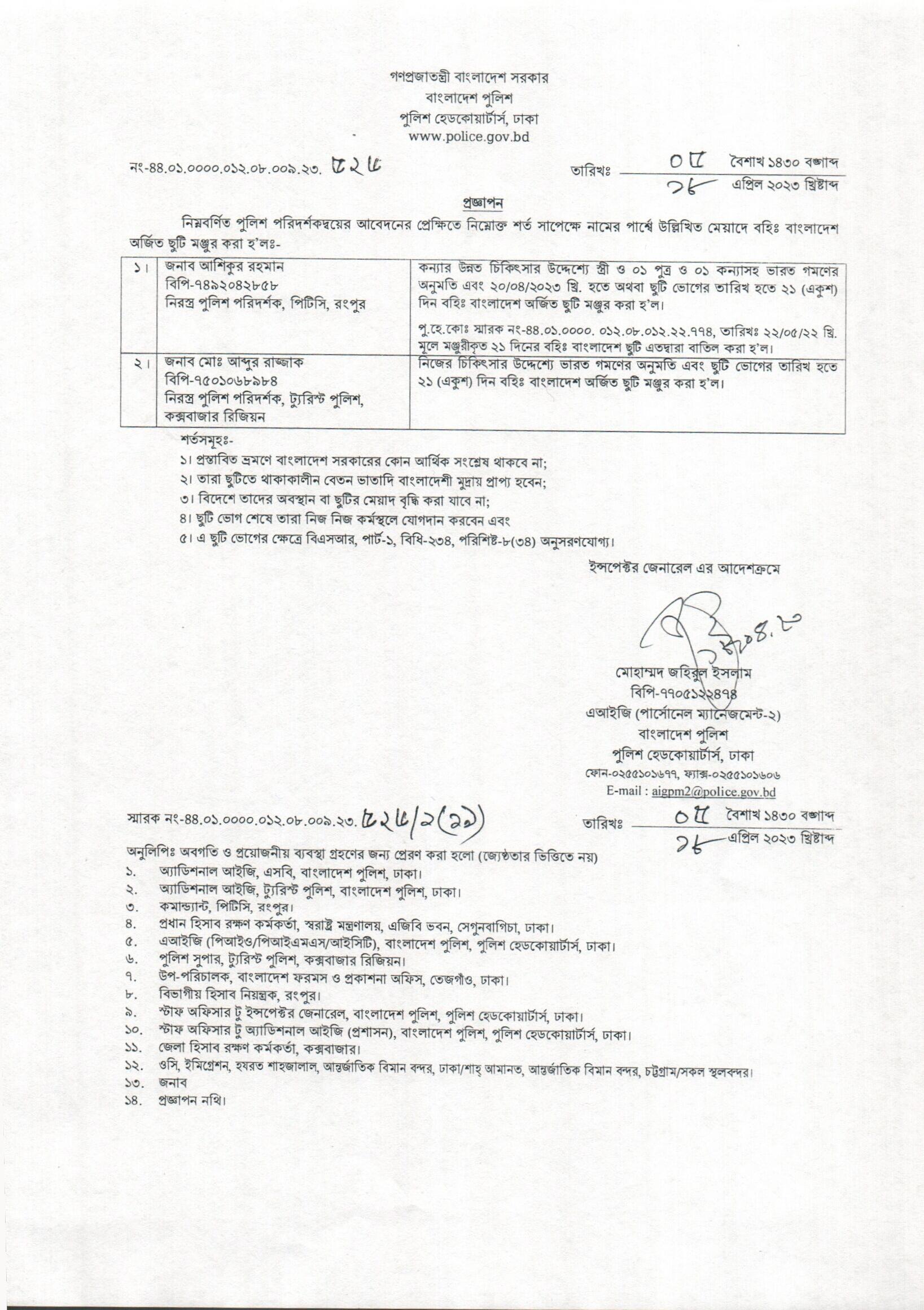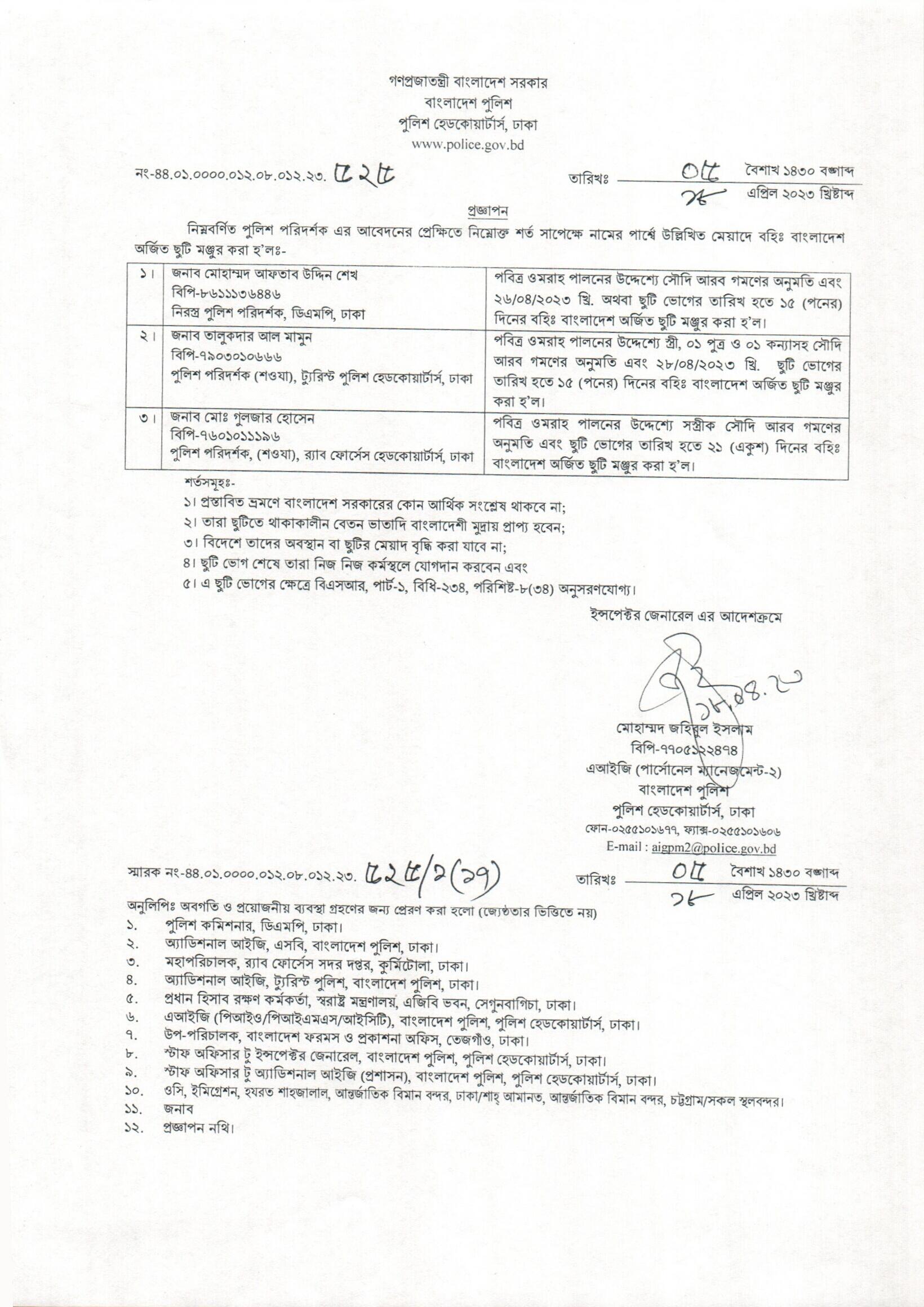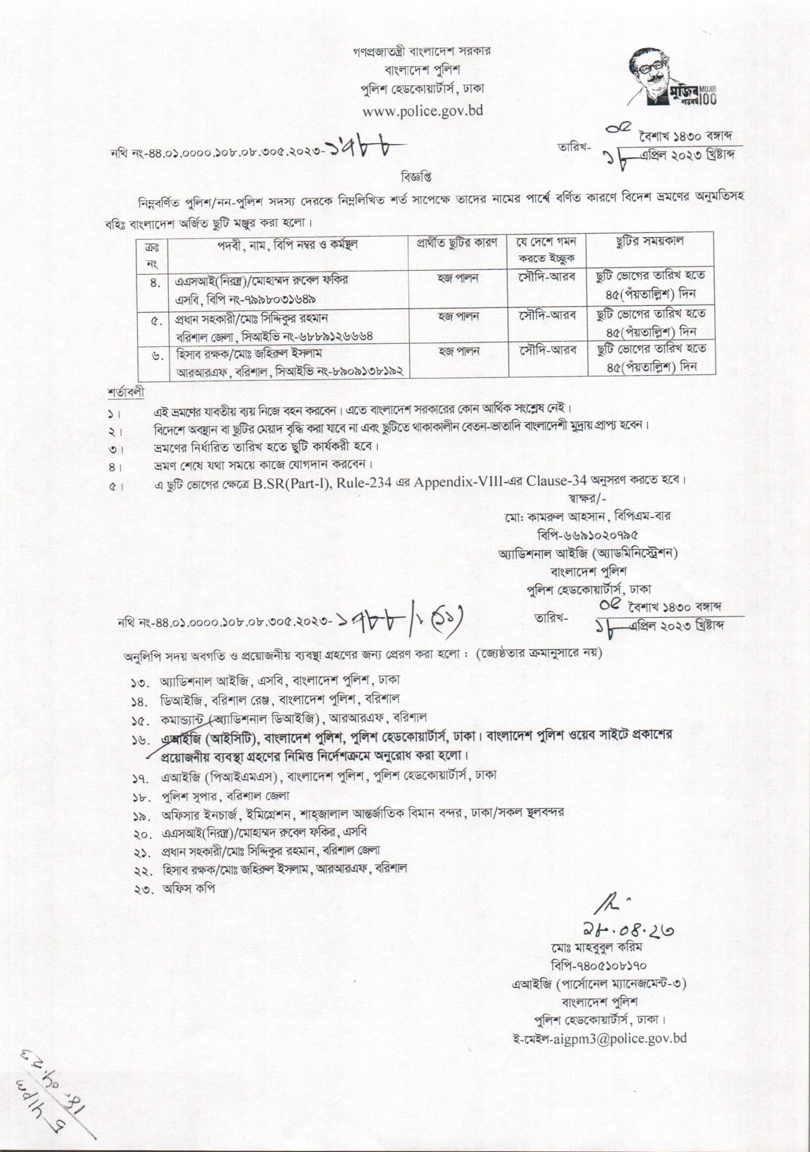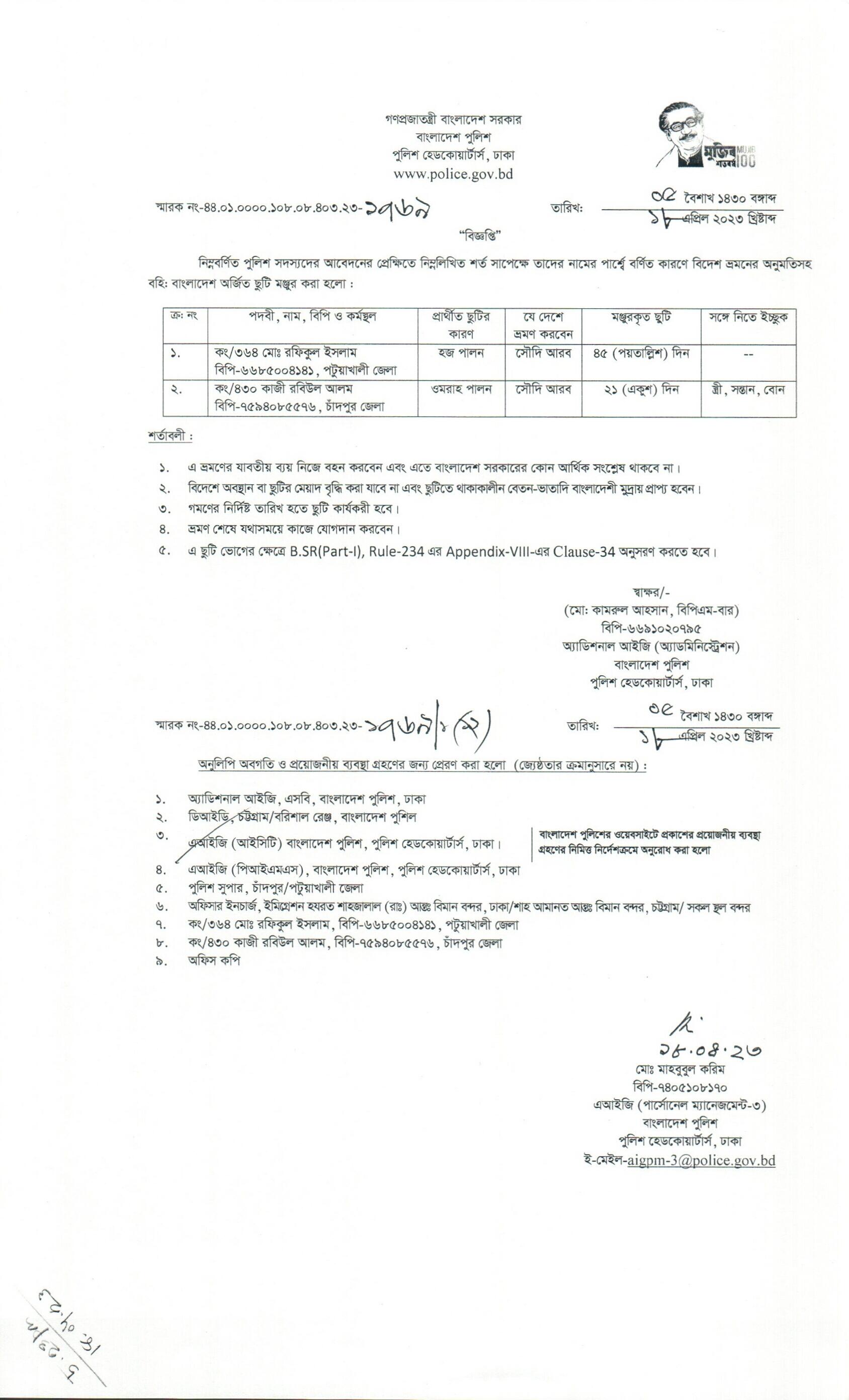 বহিঃ বাংলাদেশ ছুটি, বিজ্ঞপ্তি নং-১৭৮৫, তারিখঃ ১৮/০৪/২০২৩ খ্রিঃ।