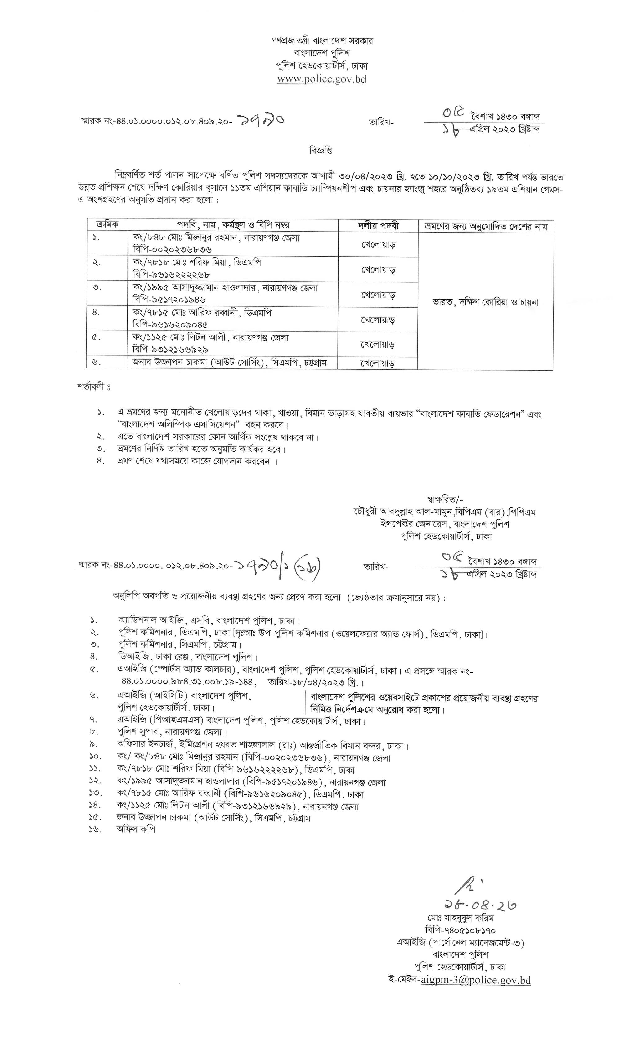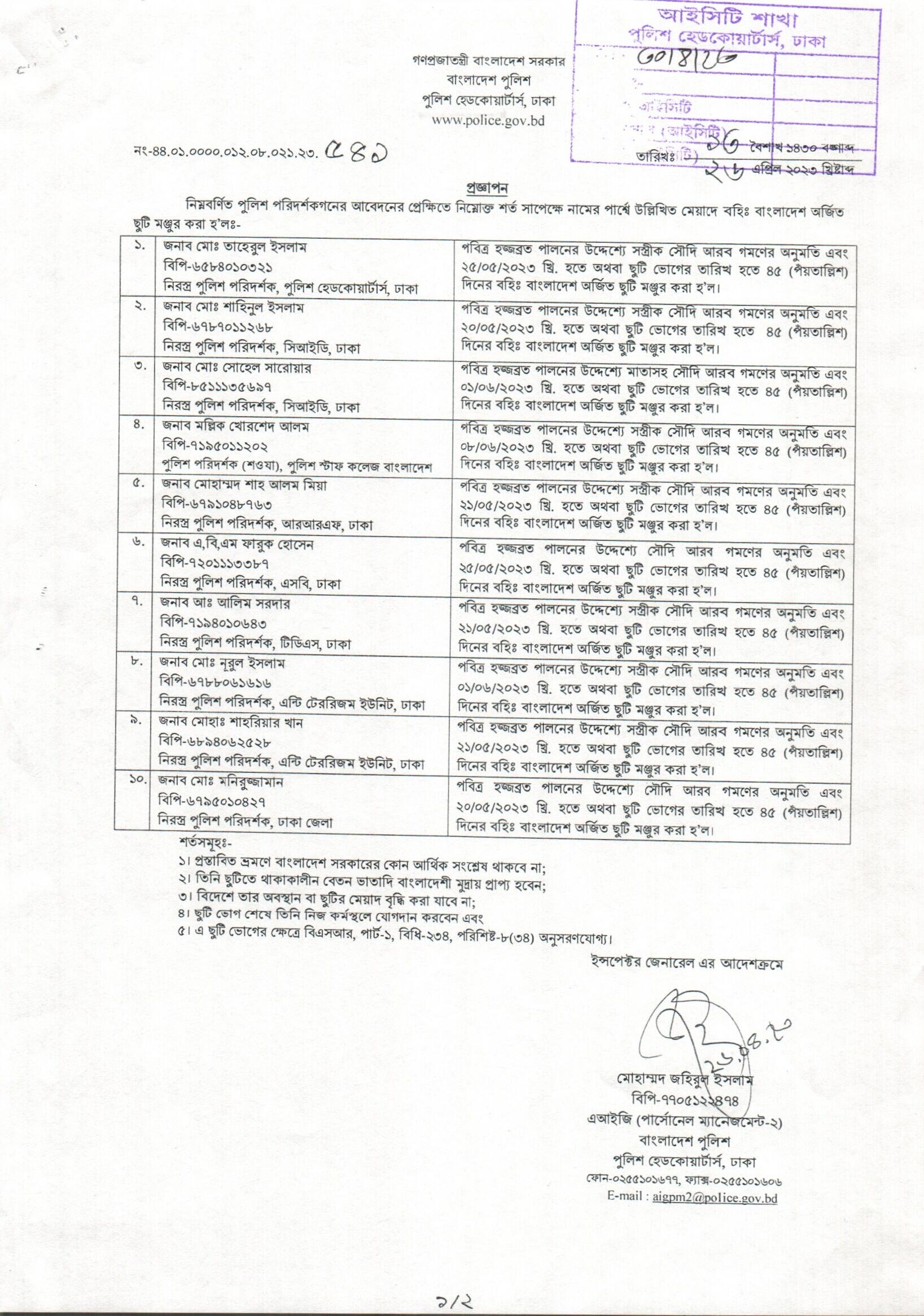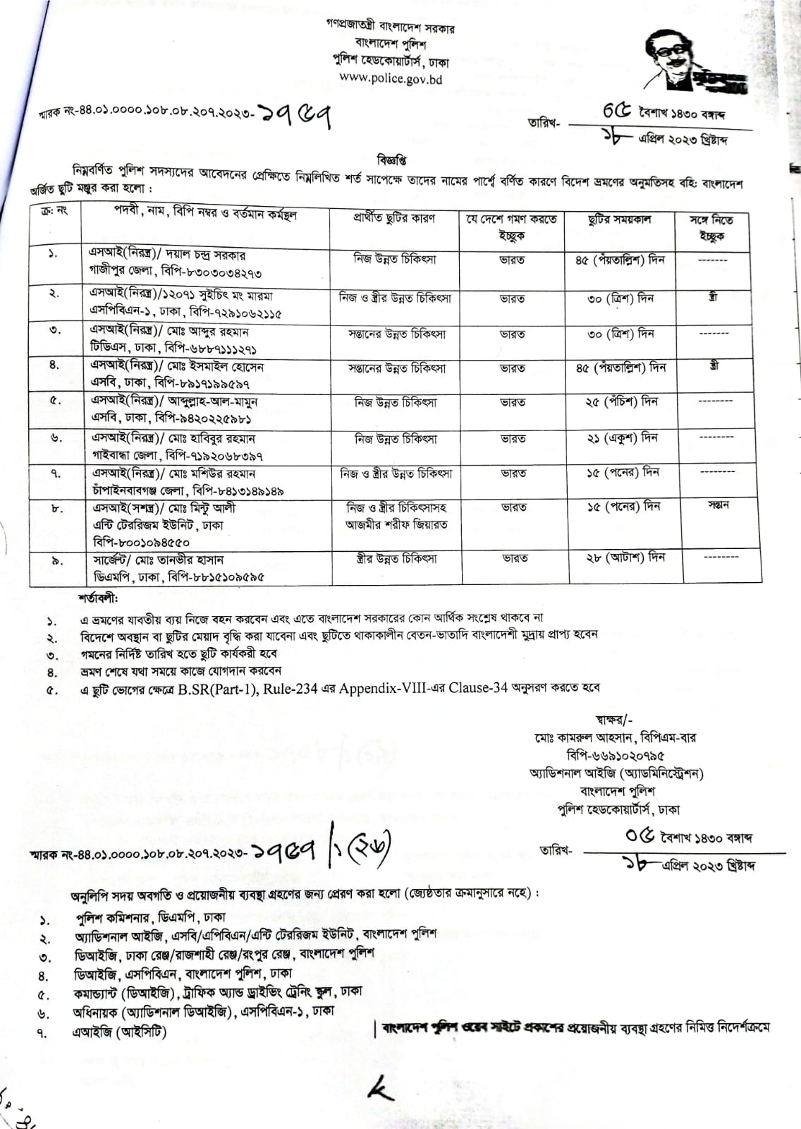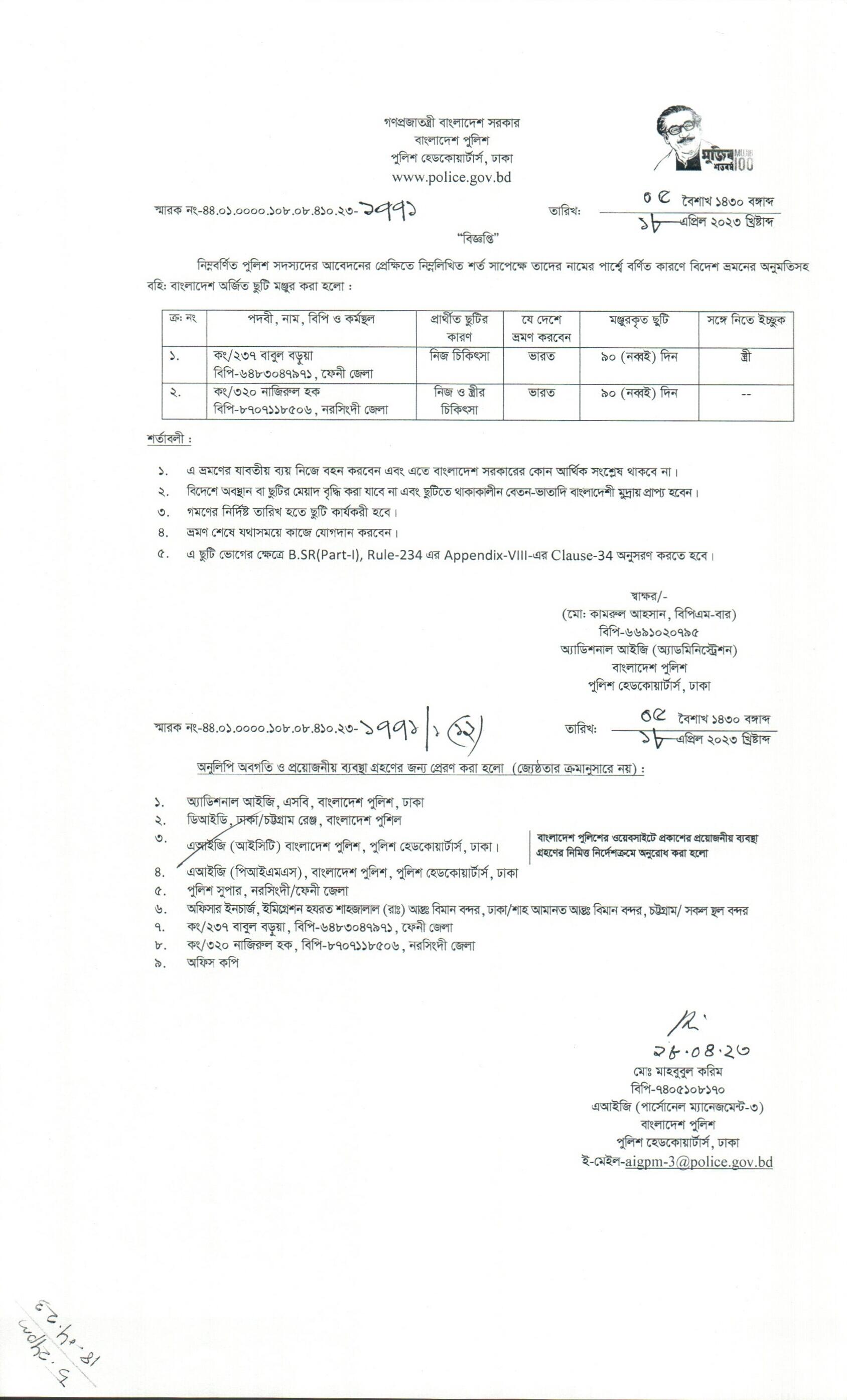 বহিঃ বাংলাদেশ ছুটি, বিজ্ঞপ্তি নং-১৭৮৫, তারিখঃ ১৮/০৪/২০২৩ খ্রিঃ।