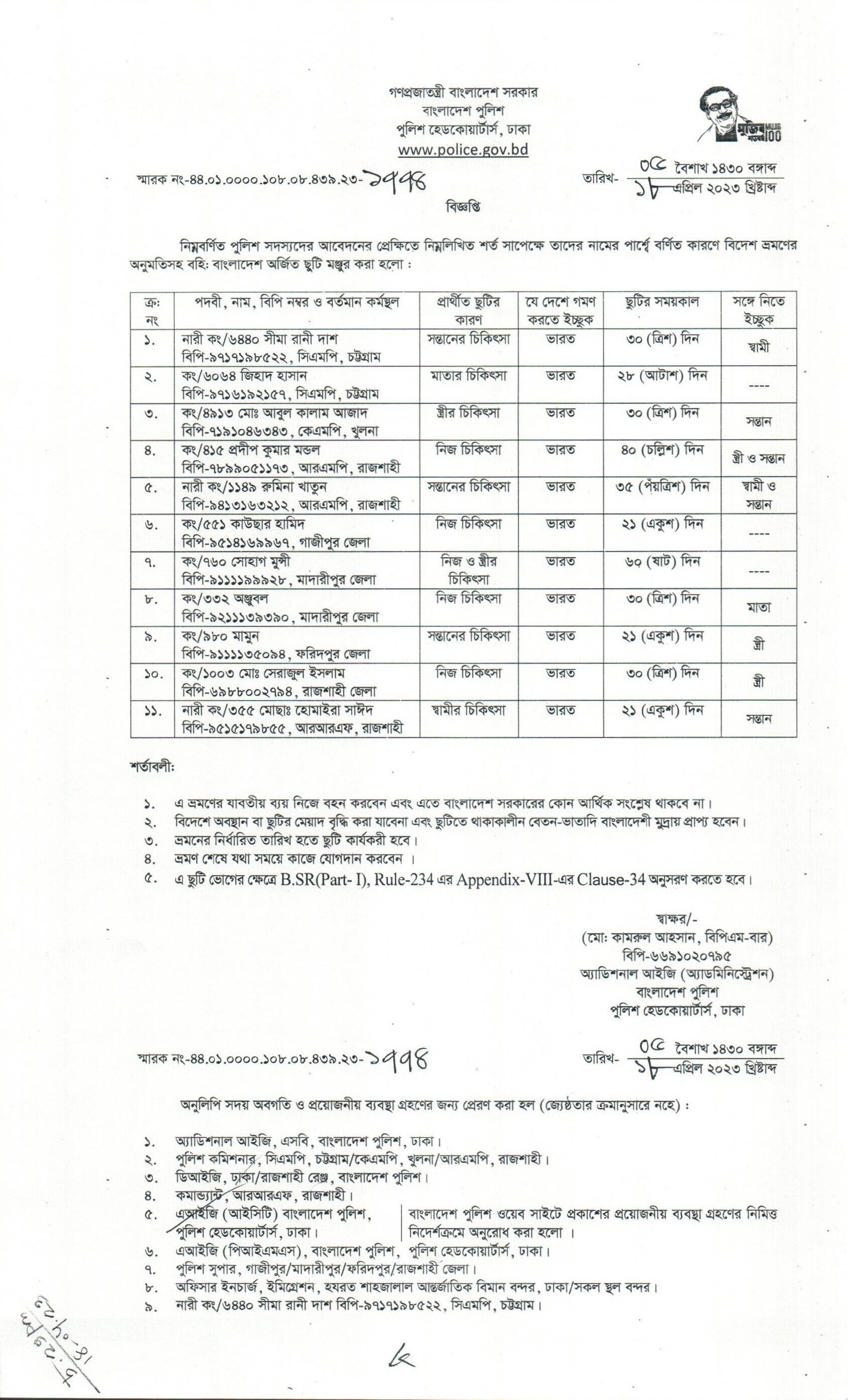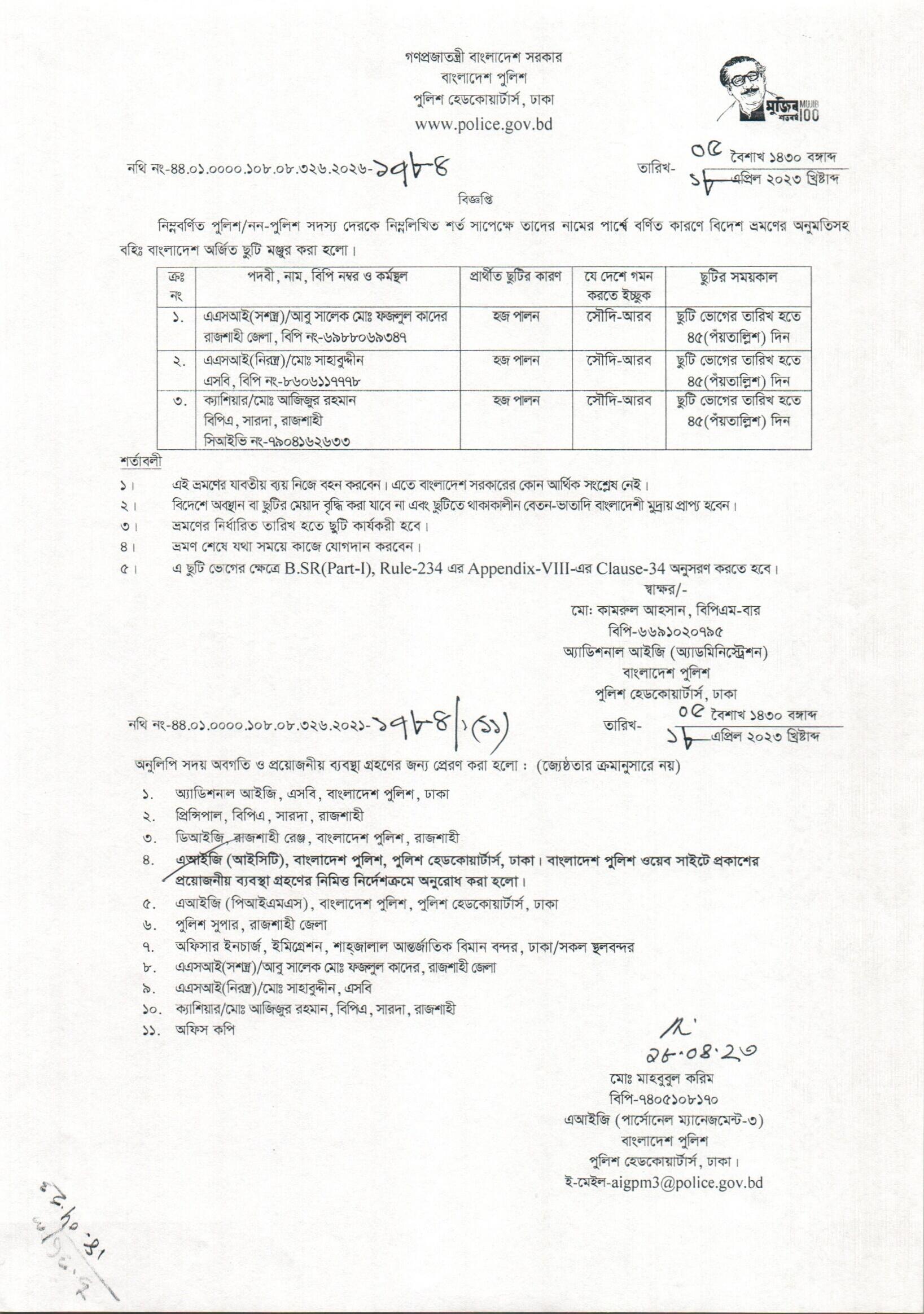 বহিঃ বাংলাদেশ ছুটি, বিজ্ঞপ্তি নং- ৫২২, তারিখঃ ১৮/০৪/২০২৩ খ্রিঃ।