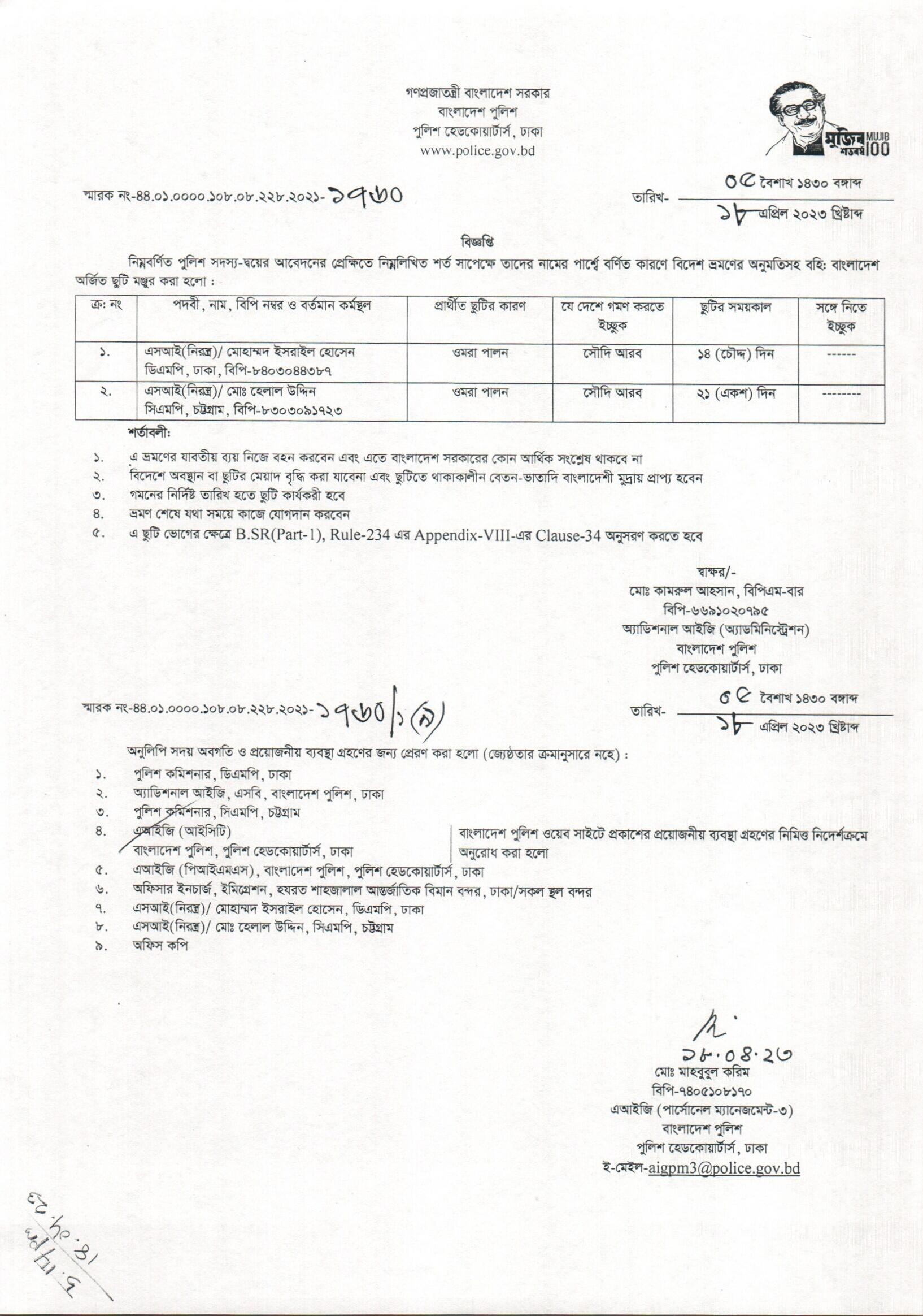 বহিঃ বাংলাদেশ ছুটি, বিজ্ঞপ্তি নং-১৭৮৬, তারিখঃ ১৮/০৪/২০২৩ খ্রিঃ।