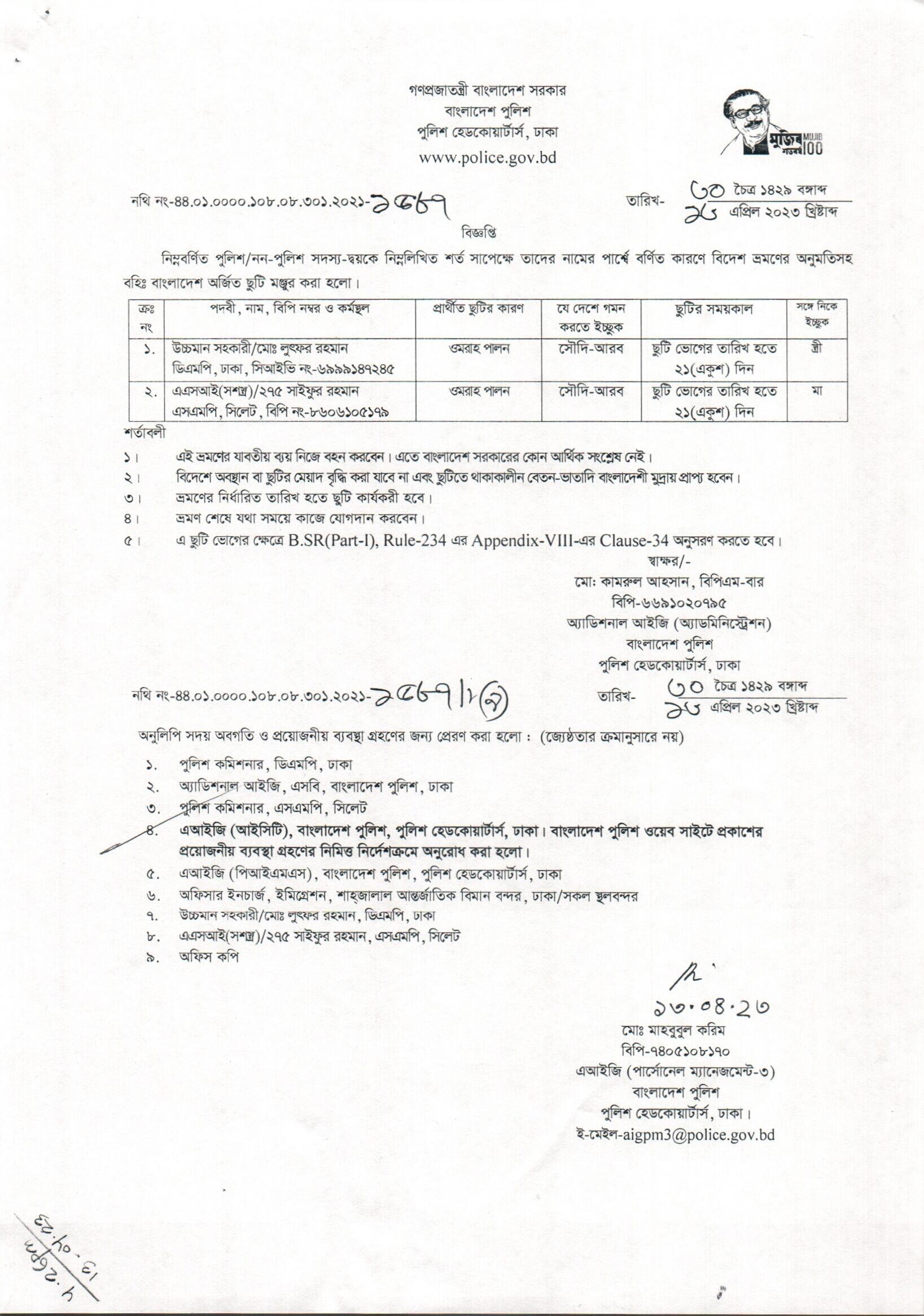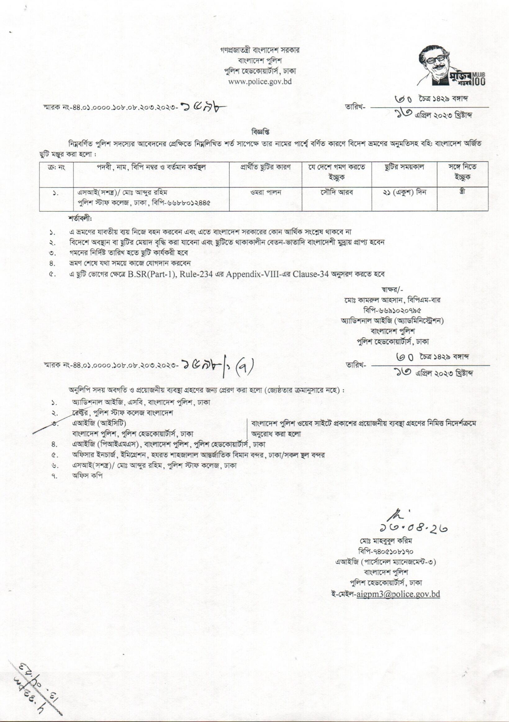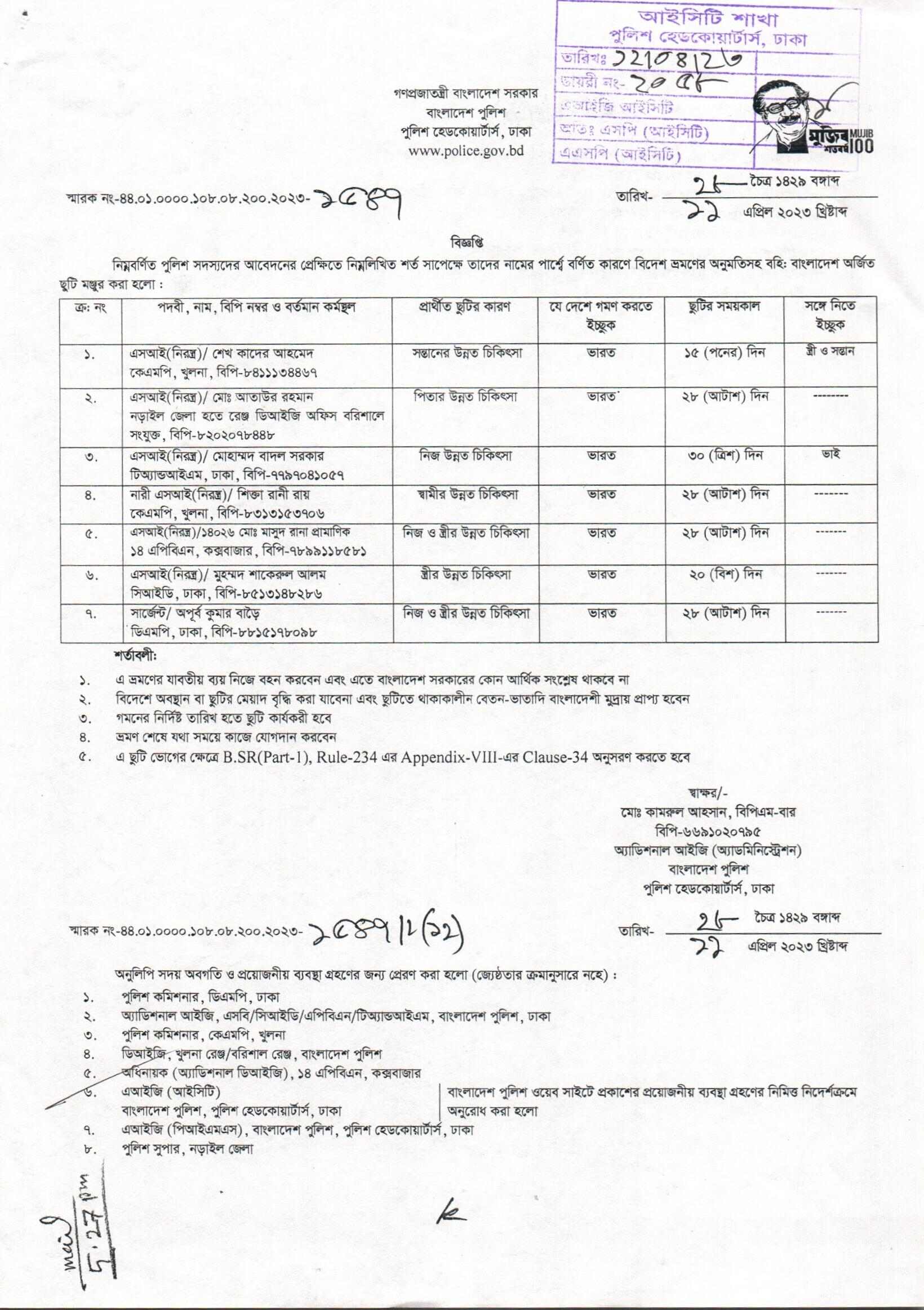 বহিঃ বাংলাদেশ ছুটি, বিজ্ঞপ্তি নং- ১৫৩৭, তারিখঃ ১১/০৪/২০২৩ খ্রিঃ।