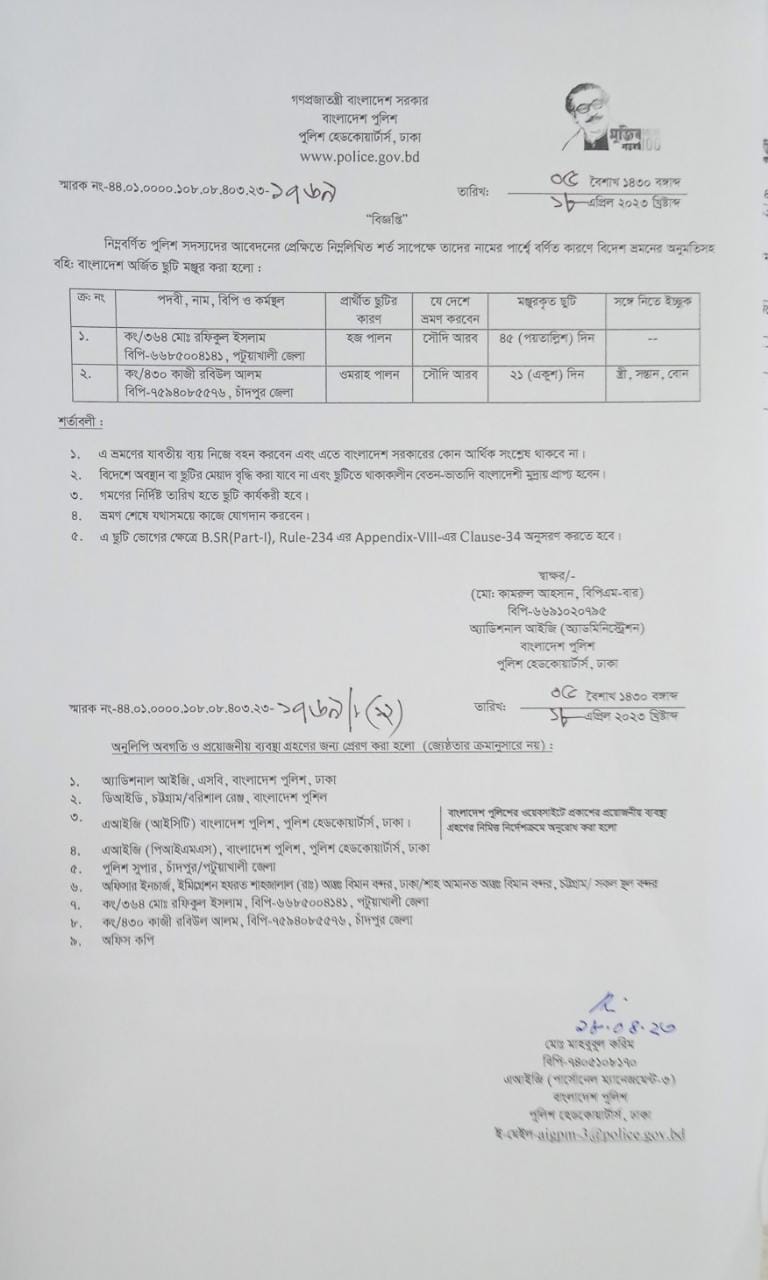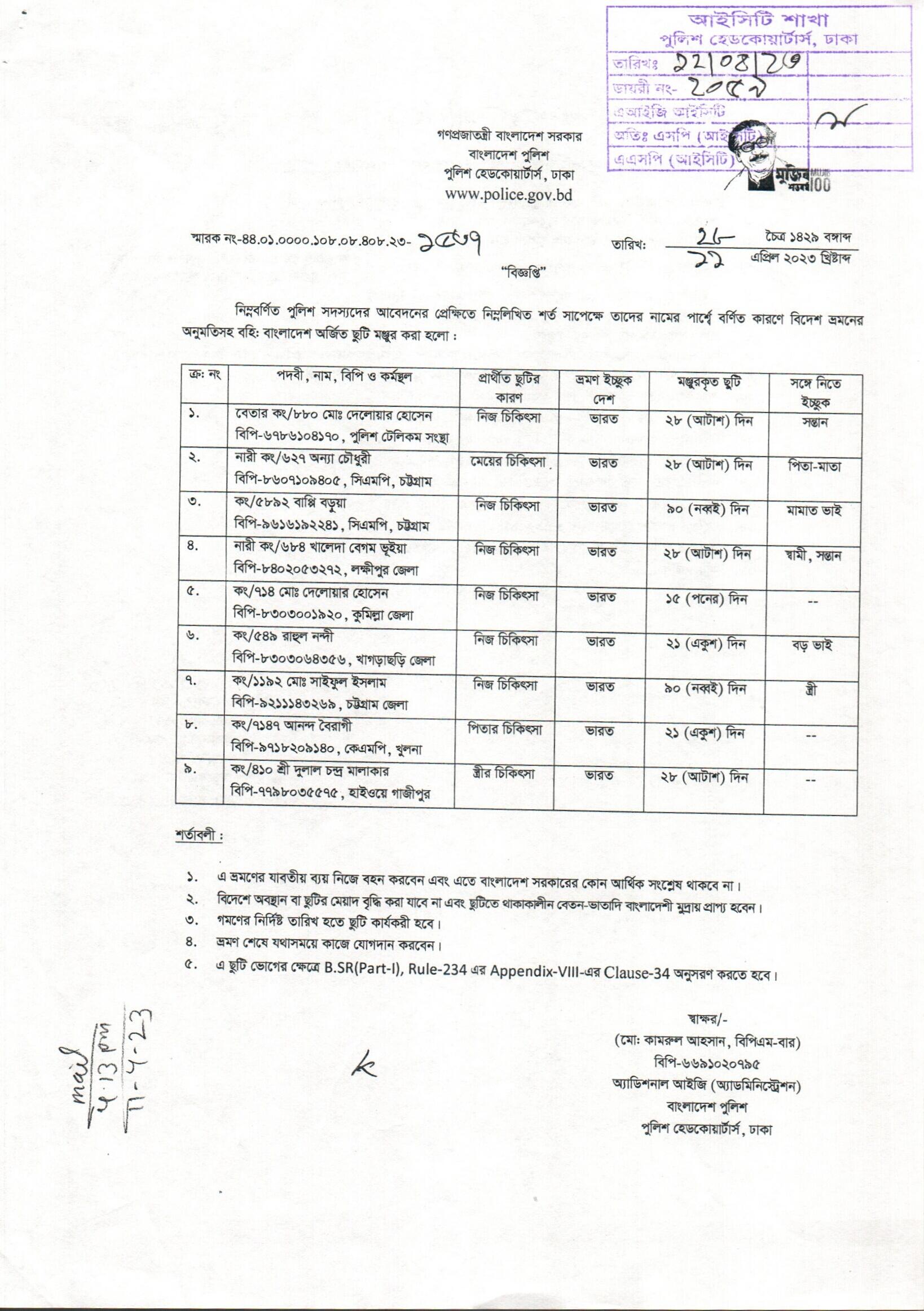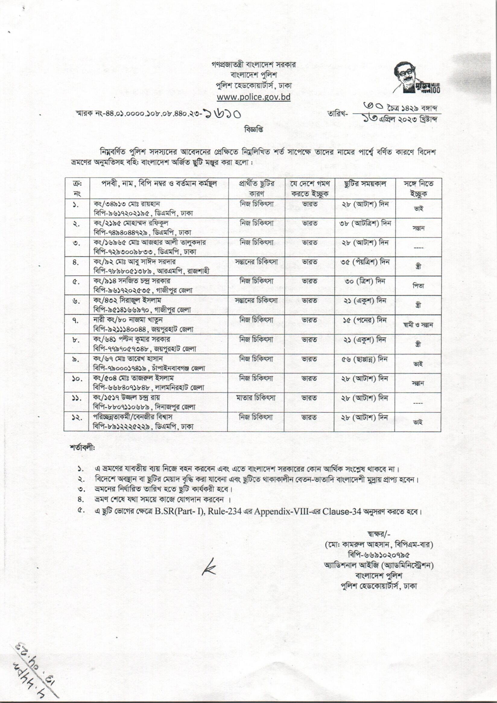 বহিঃ বাংলাদেশ ছুটি, বিজ্ঞপ্তি নং- ১৫৩৭, তারিখঃ ১১/০৪/২০২৩ খ্রিঃ।