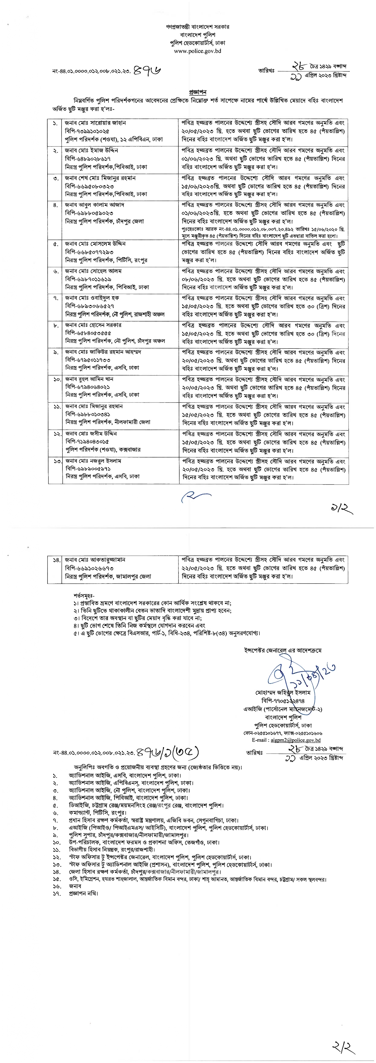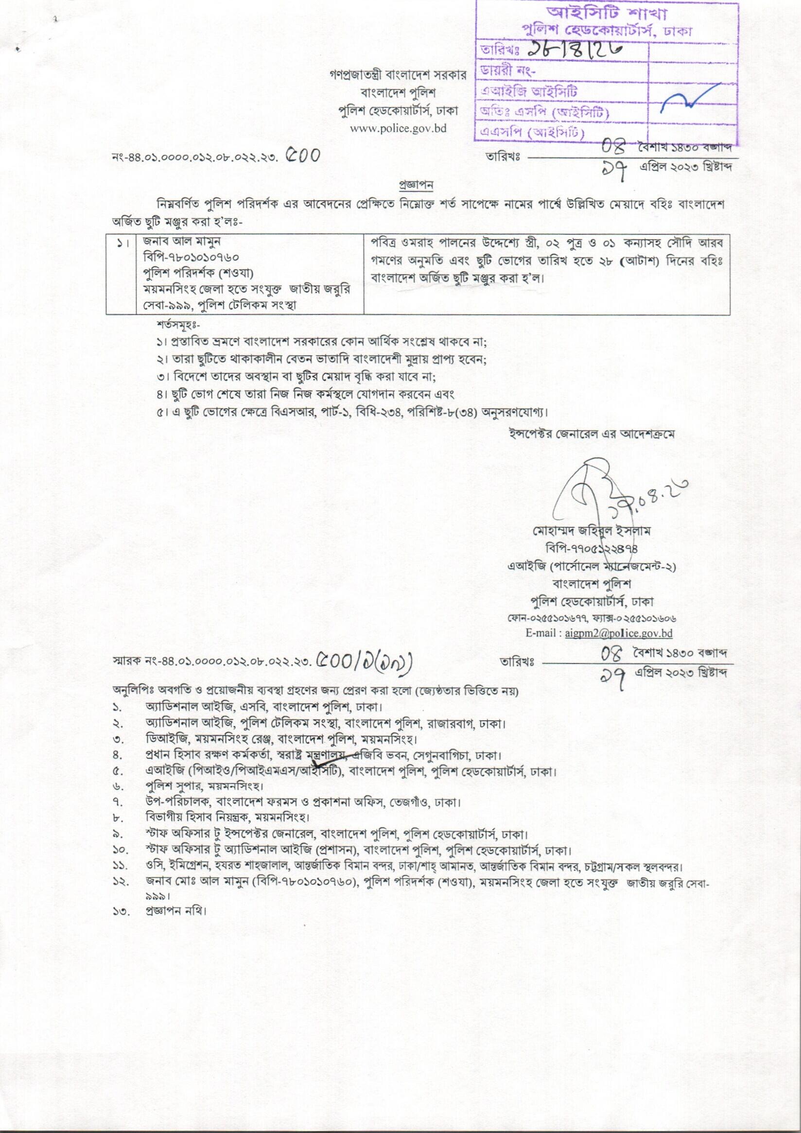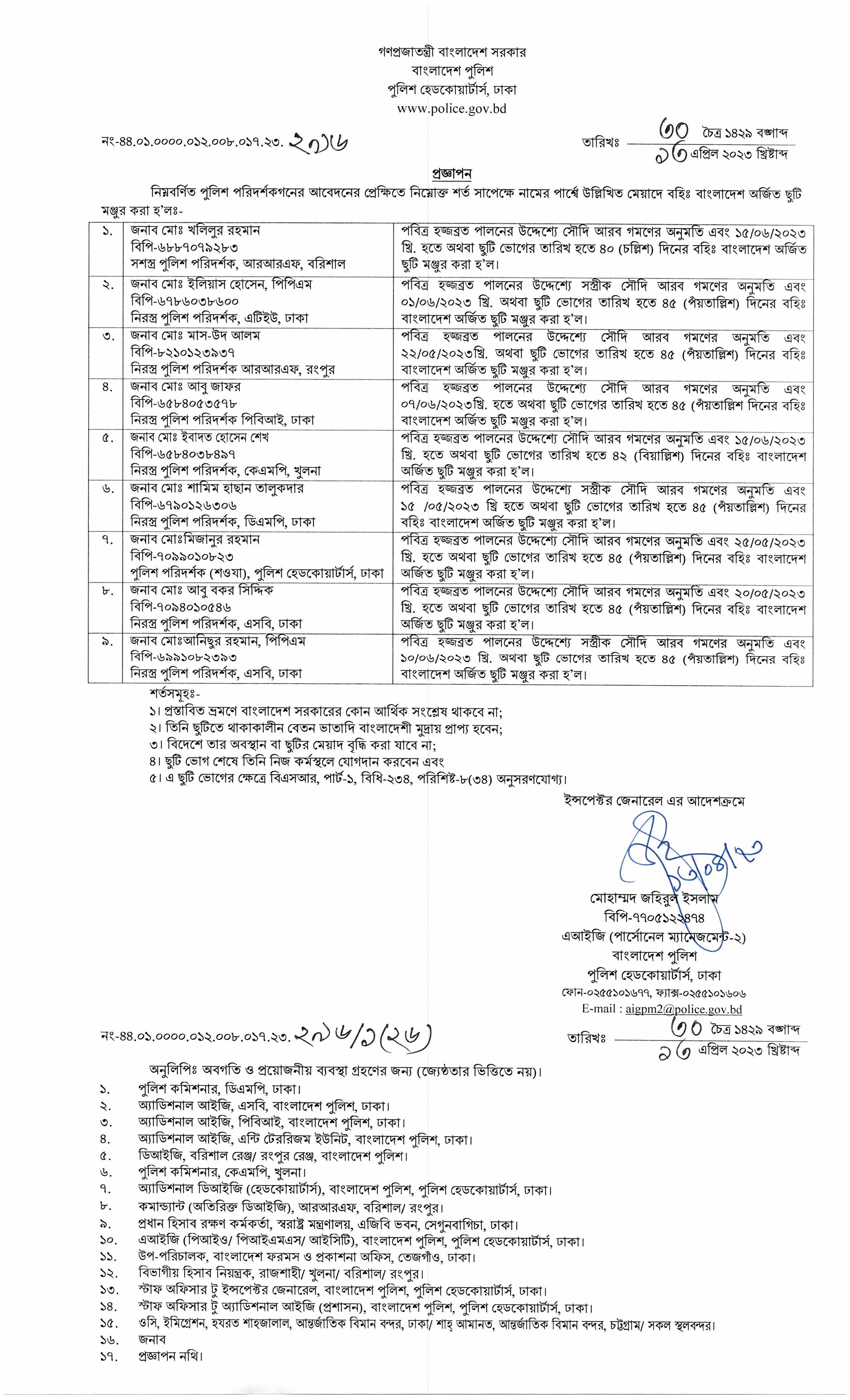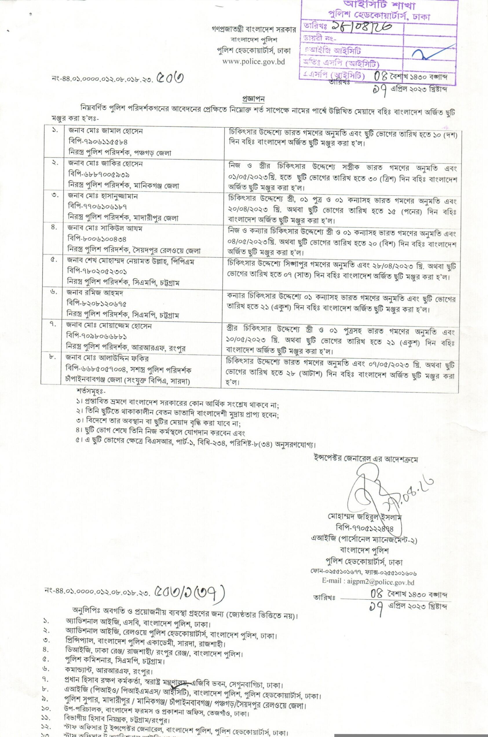 বহিঃ বাংলাদেশ ছুটি, বিজ্ঞপ্তি নং- ১৭৬৯, তারিখঃ ১৮/০৪/২০২৩ খ্রিঃ।