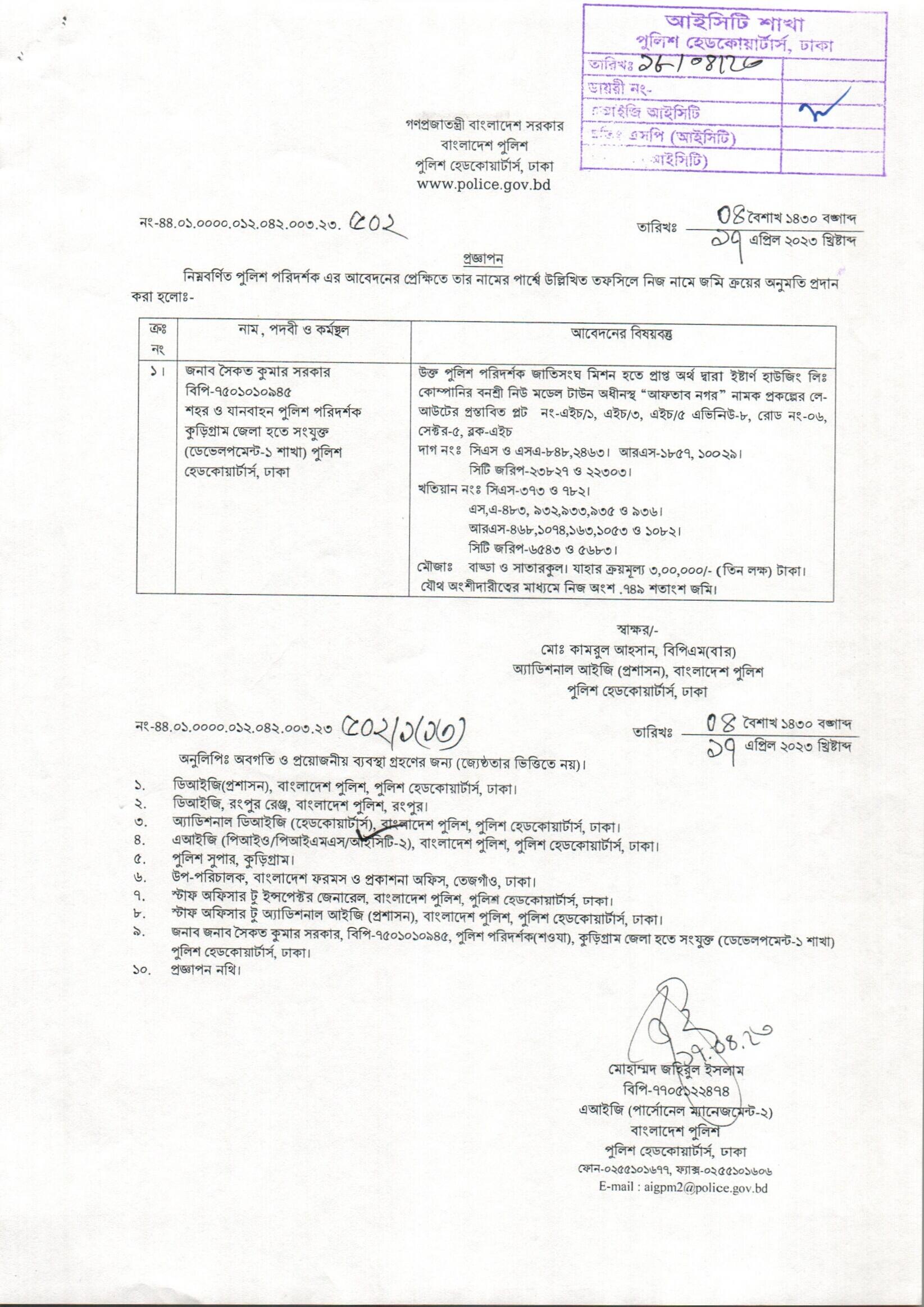 জমি ক্রয় অনুমতি প্রজ্ঞাপন নং- ৫০২, তারিখঃ ১৭/০৪/২০২৩খ্রিঃ।