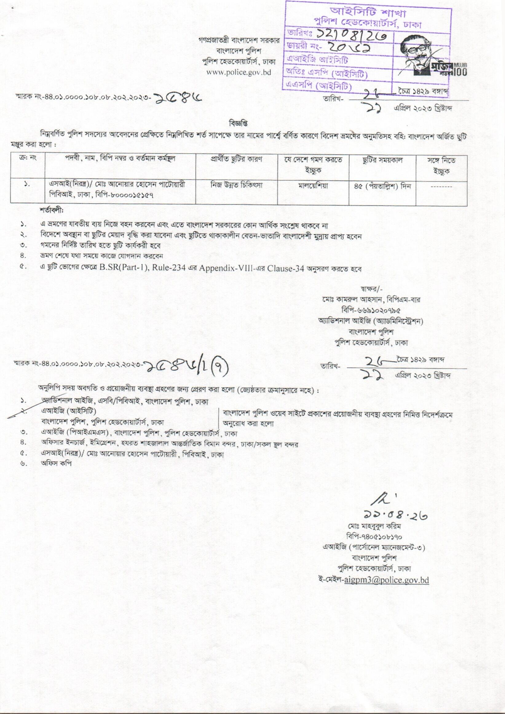 বহিঃ বাংলাদেশ ছুটি, বিজ্ঞপ্তি নং- ১৫৩৫, তারিখঃ ১১/০৪/২০২৩ খ্রিঃ।