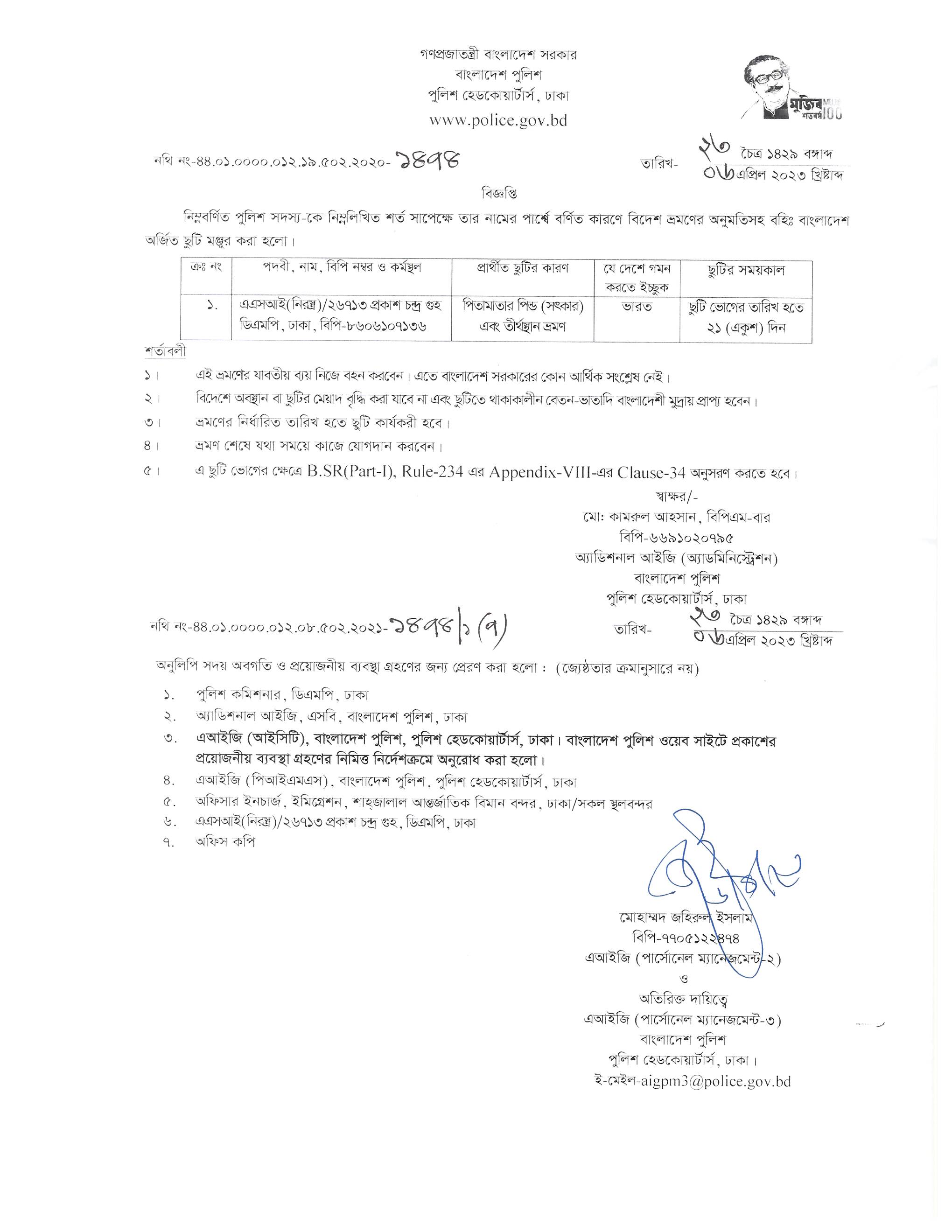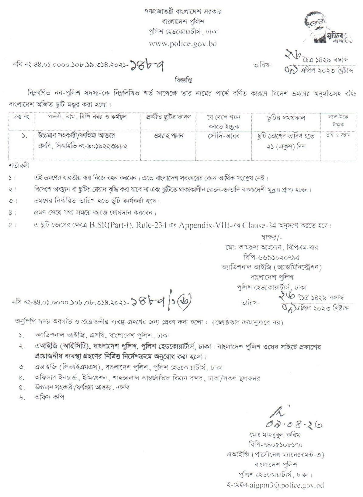 বহিঃ বাংলাদেশ ছুটি, বিজ্ঞপ্তি নং-১৪৭৪, তারিখঃ ০৬/০৪/২০২৩