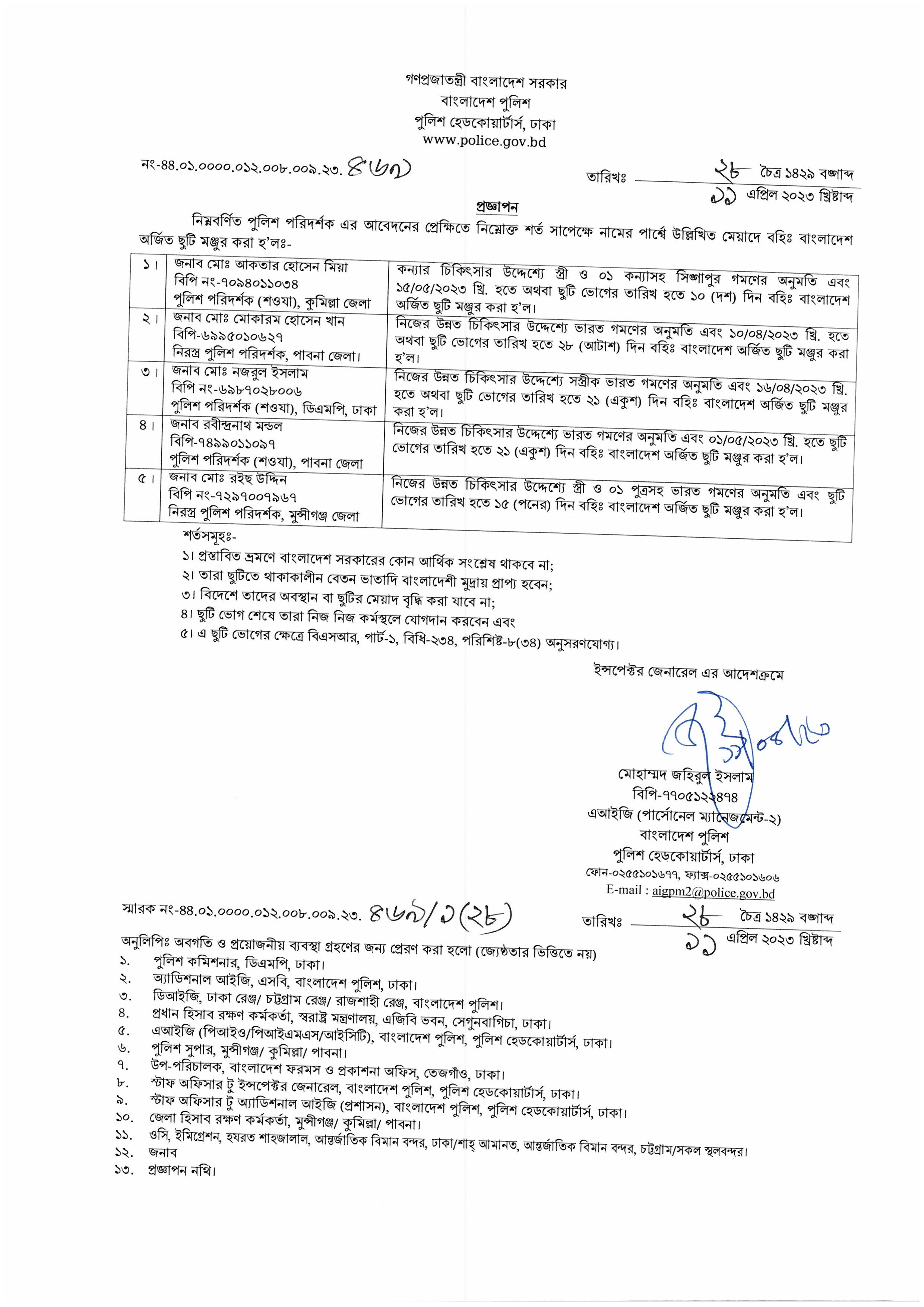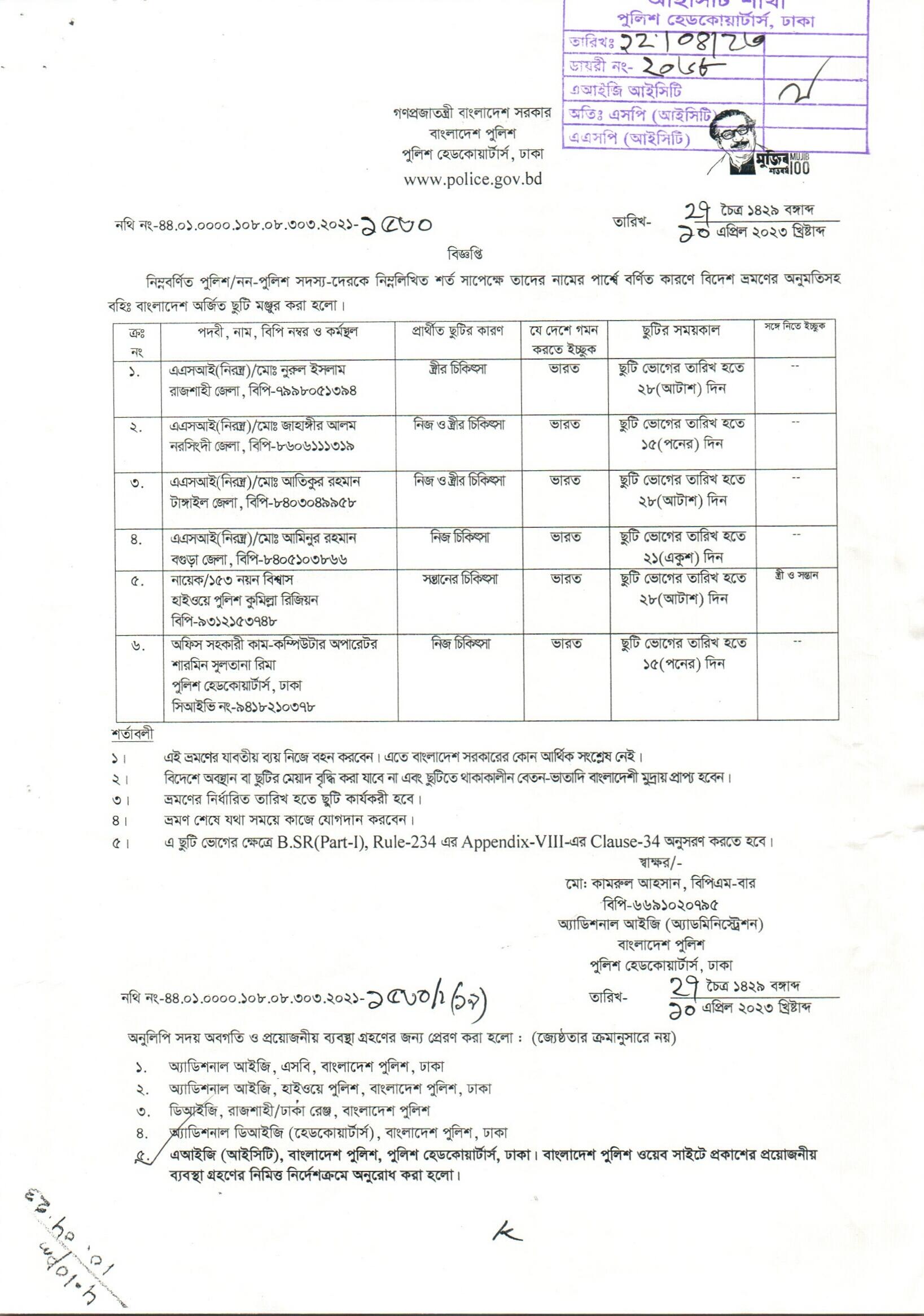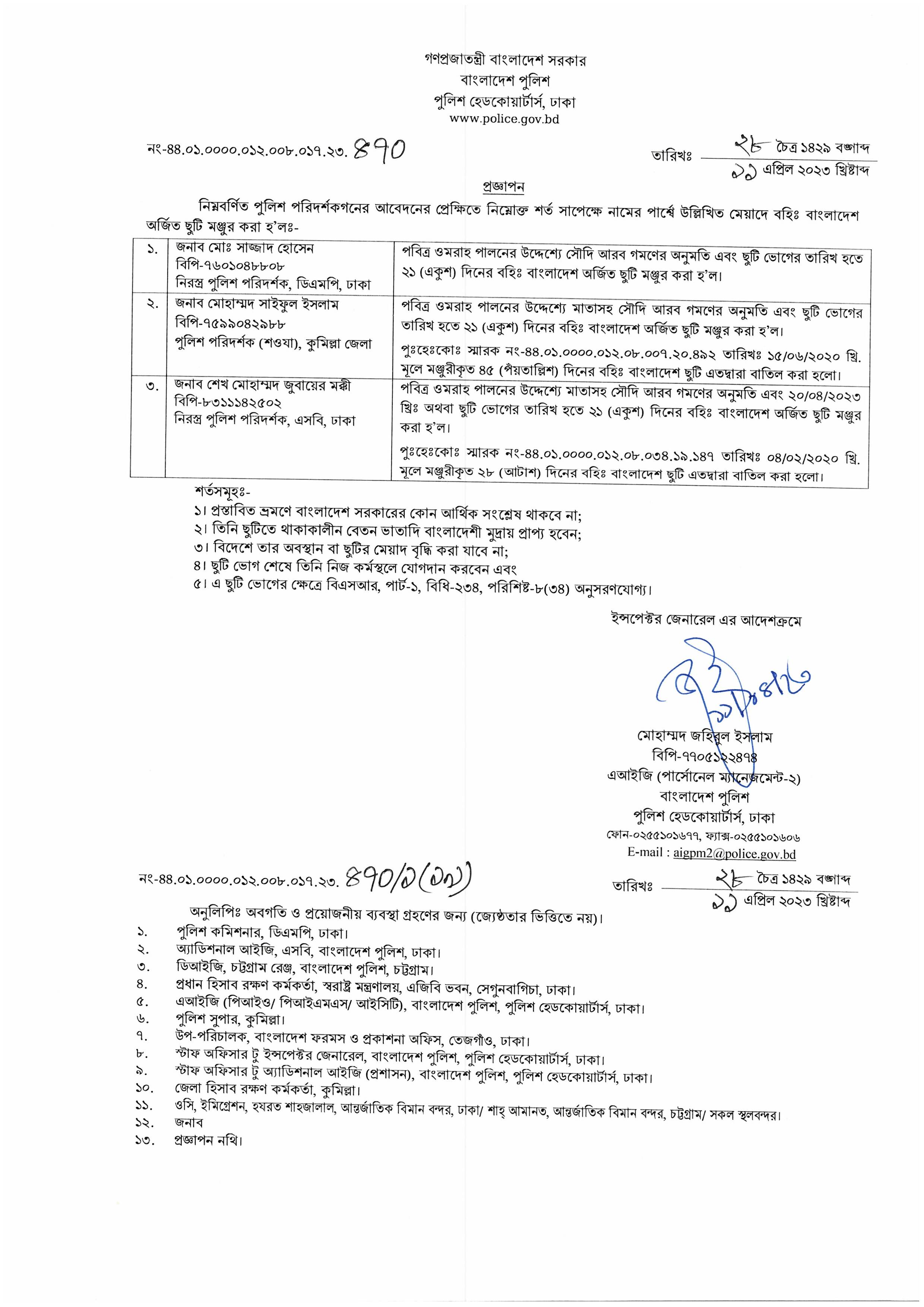 বহিঃ বাংলাদেশ ছুটি, বিজ্ঞপ্তি নং- ১৫৩৯, তারিখঃ ১১/০৪/২০২৩ খ্রিঃ।