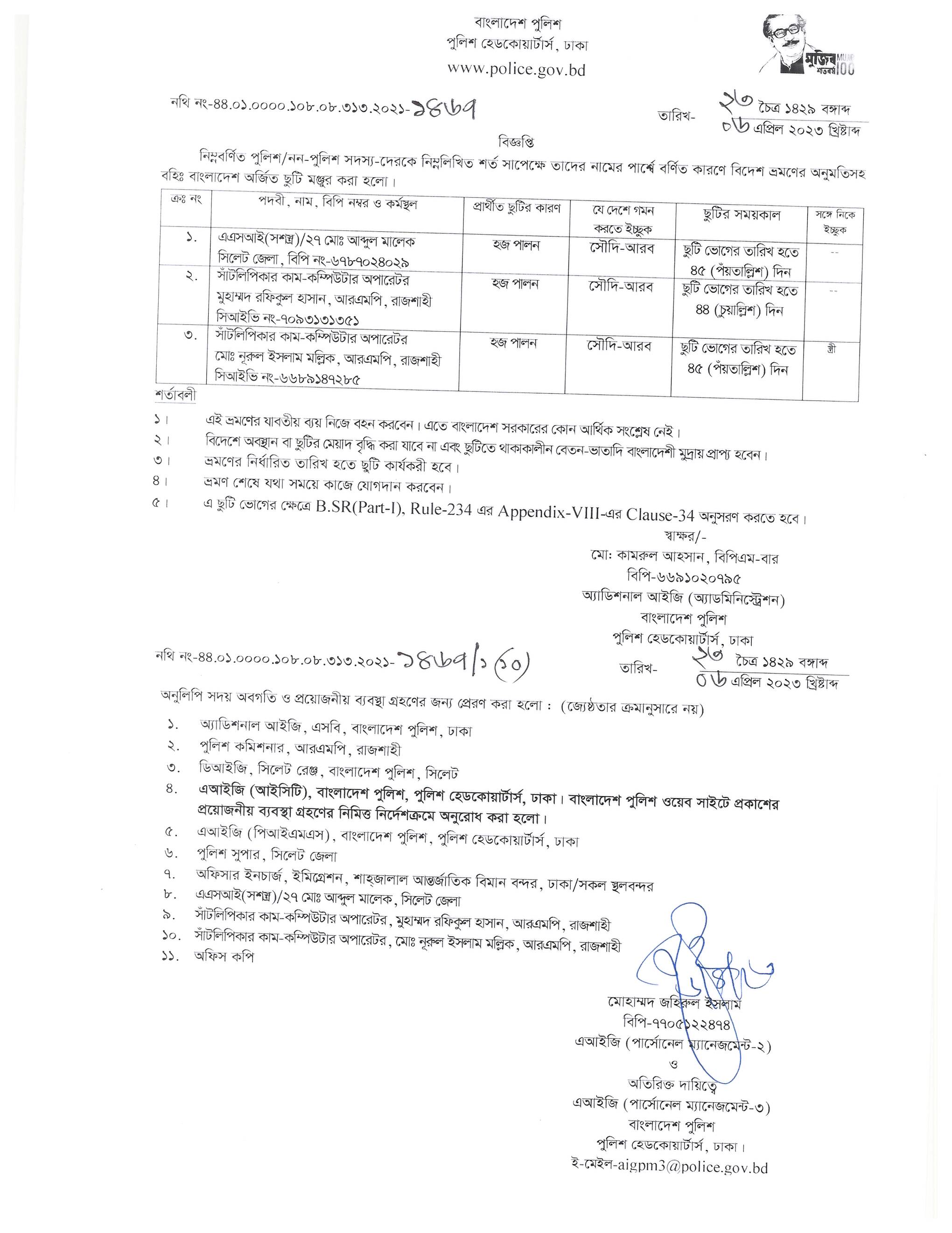 বহিঃ বাংলাদেশ ছুটি, বিজ্ঞপ্তি নং- ১৫৩০, তারিখঃ ১০/০৪/২০২৩ খ্রিঃ।