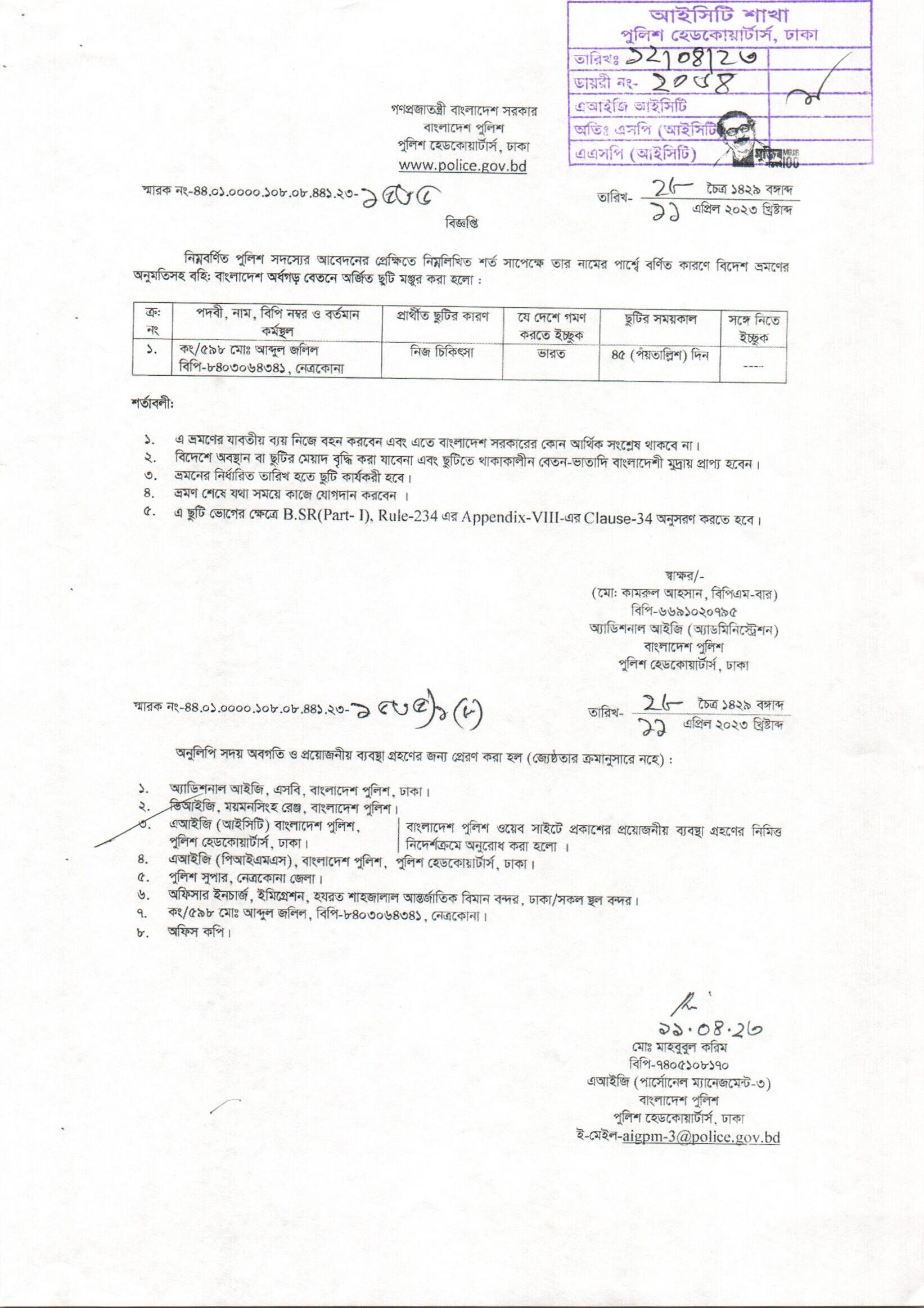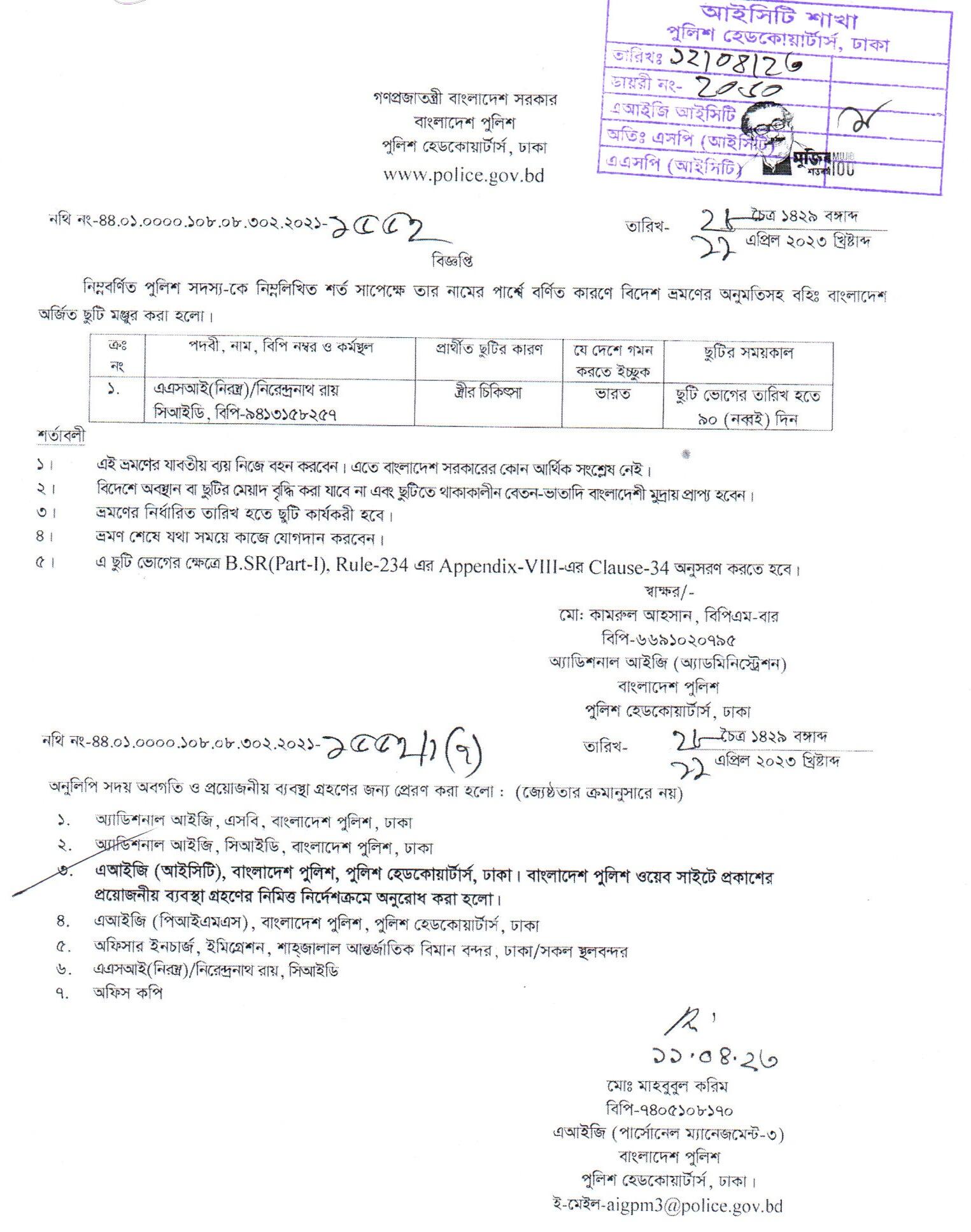 বহিঃ বাংলাদেশ ছুটি, বিজ্ঞপ্তি নং- ১৫৩৩, তারিখঃ ১১/০৪/২০২৩ খ্রিঃ।