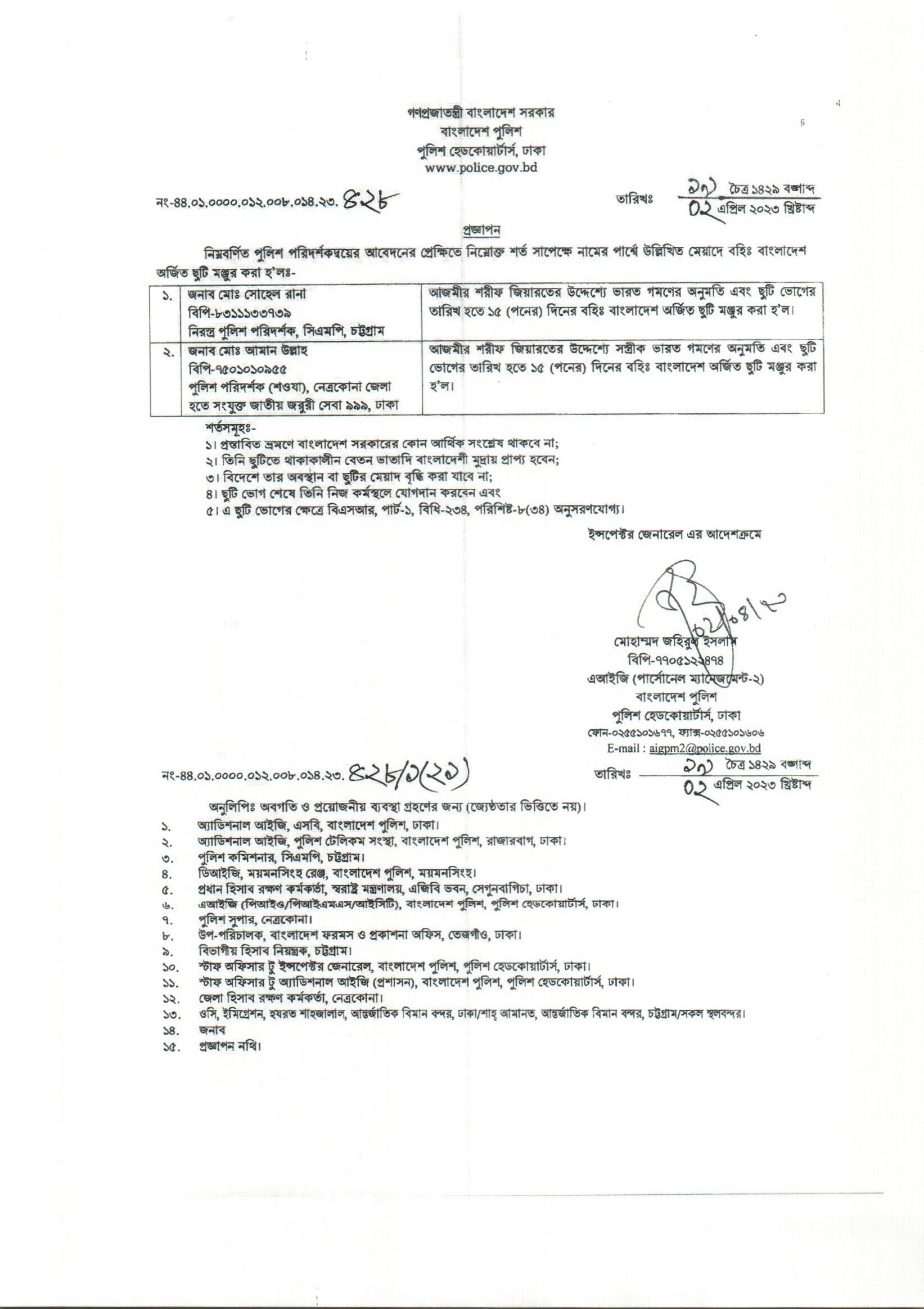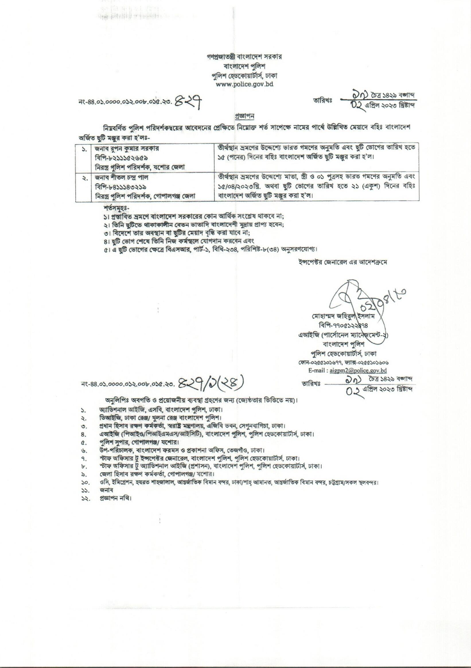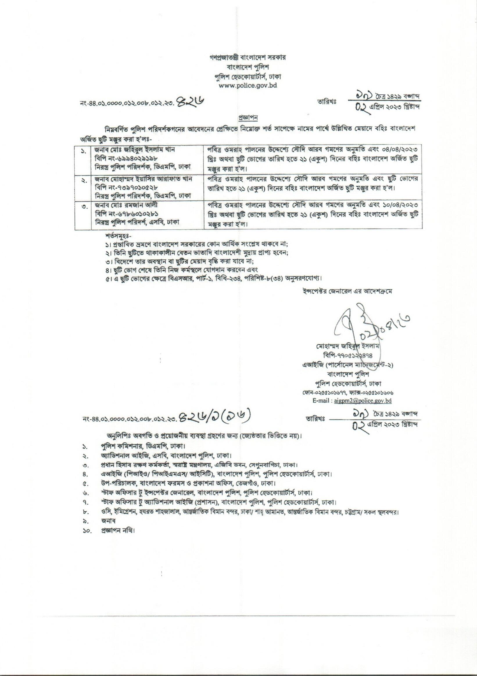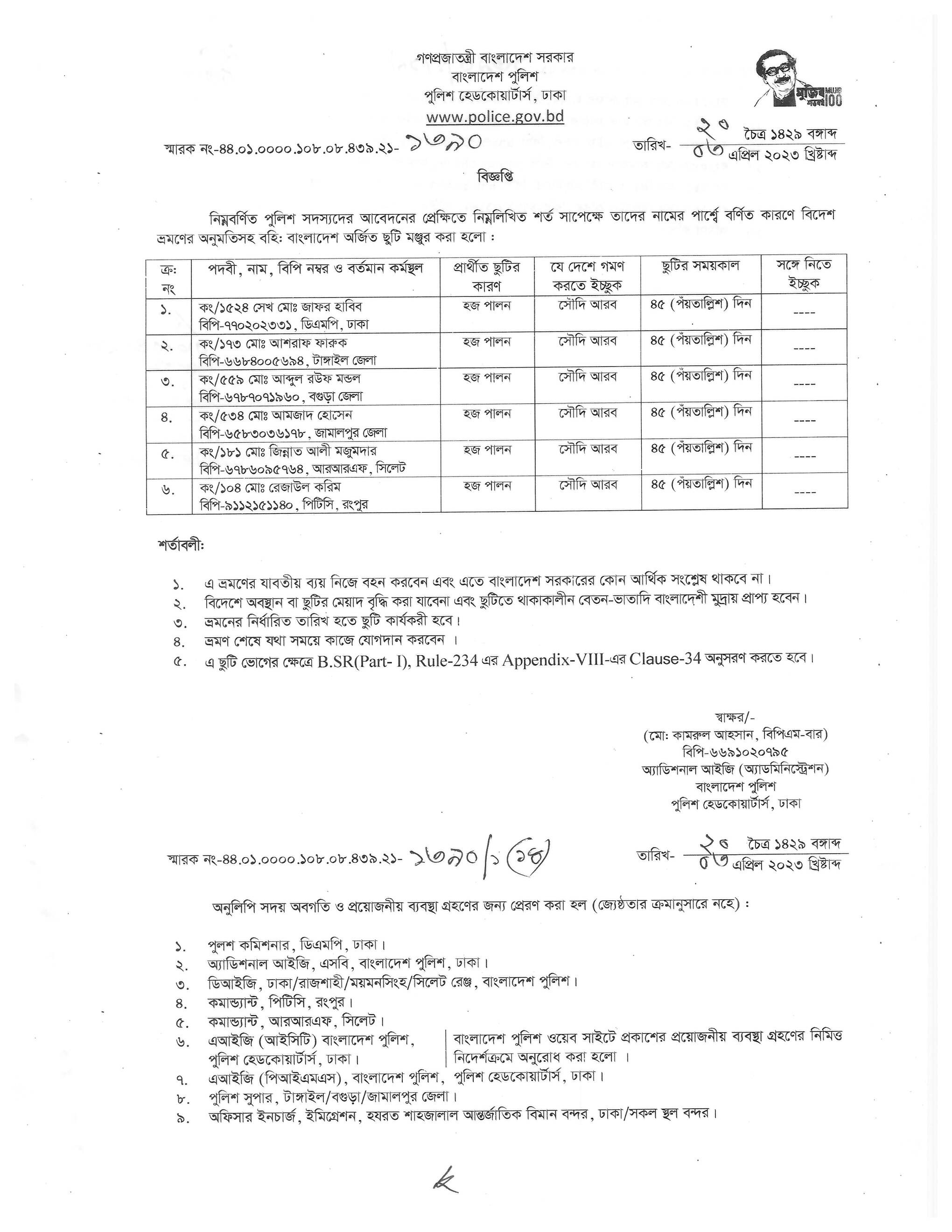বহিঃ বাংলাদেশ ছুটি, বিজ্ঞপ্তি নং-১৩৯২, তারিখঃ ০৩/০৪/২০২৩