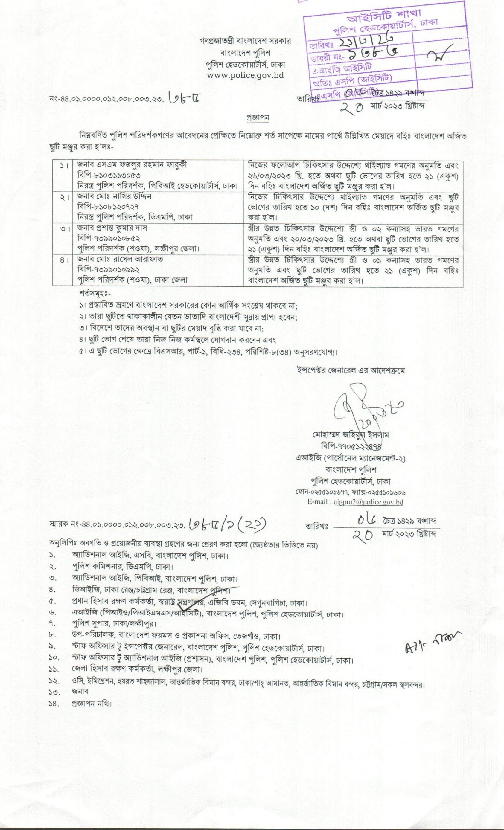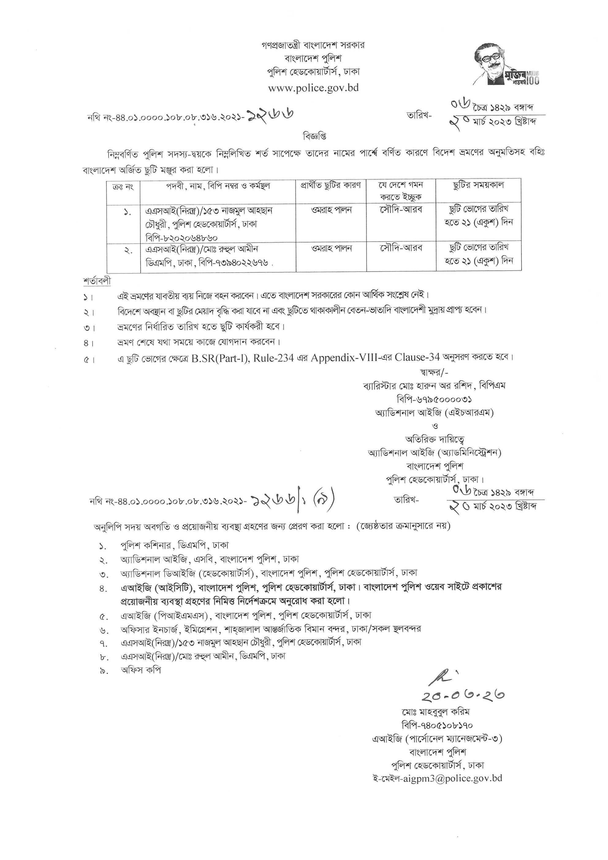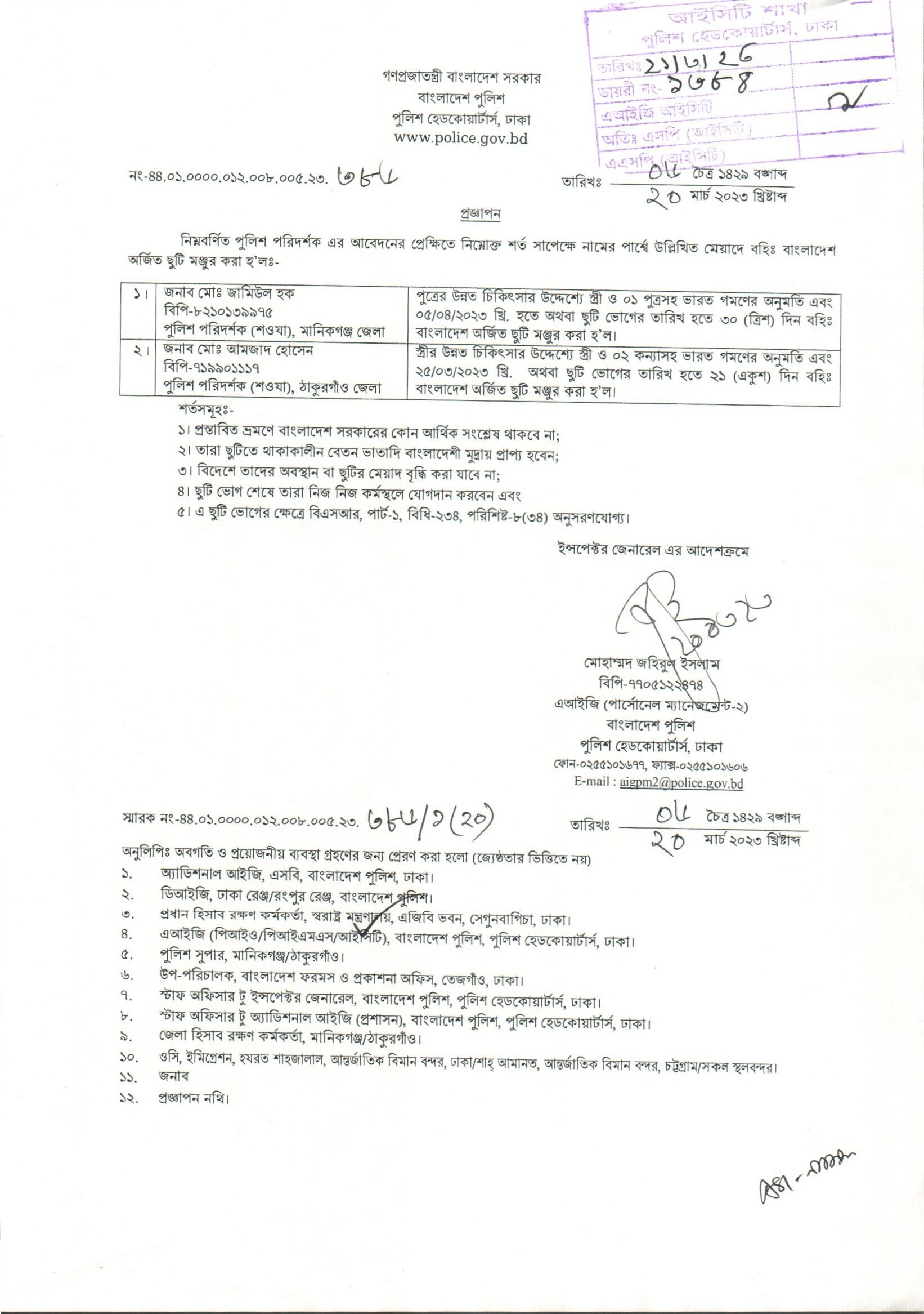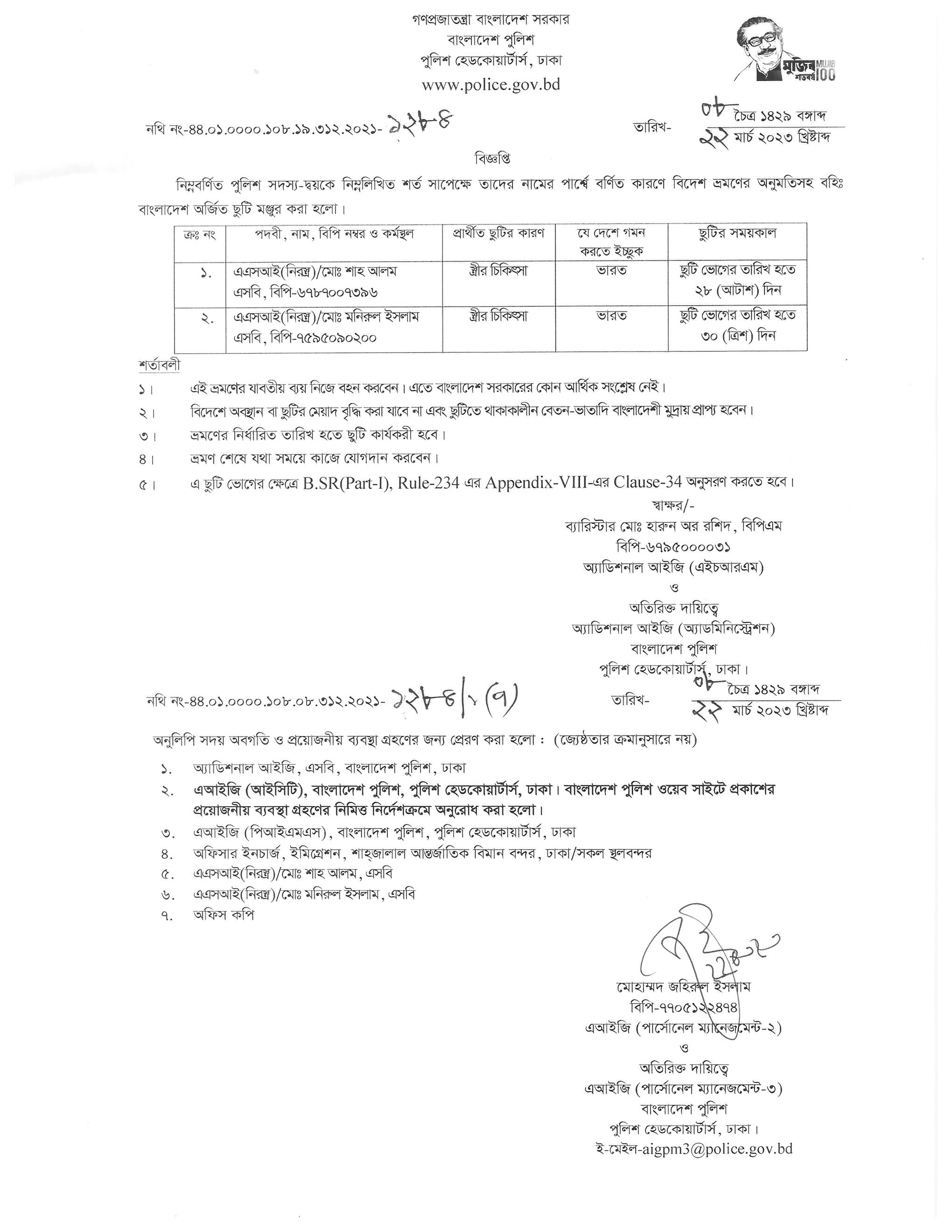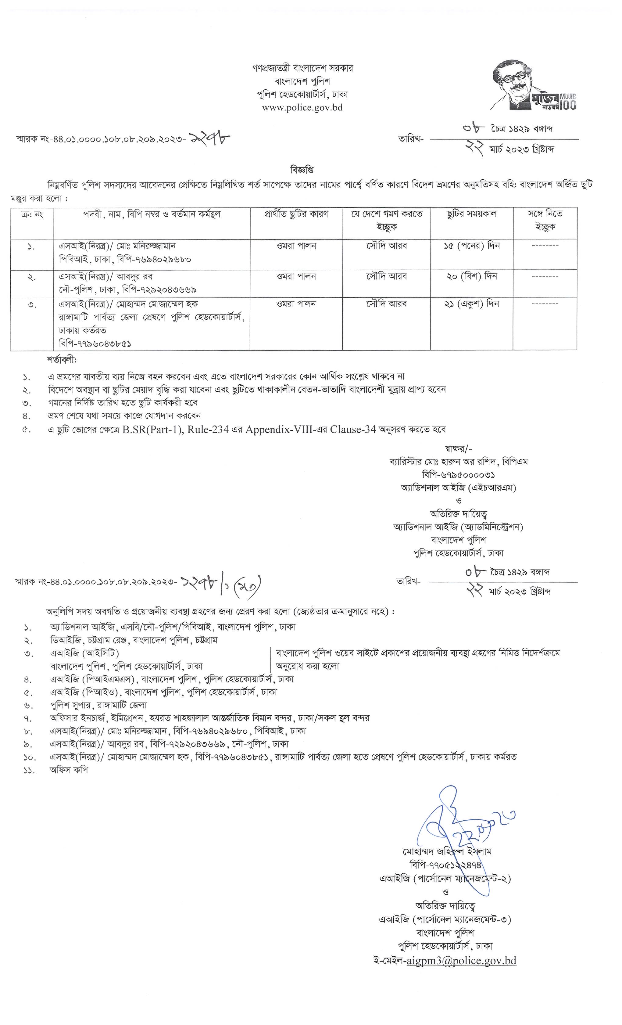 বহিঃ বাংলাদেশ ছুটি, বিজ্ঞপ্তি নং-১২৭৫, তারিখঃ ২১/০৩/২০২৩