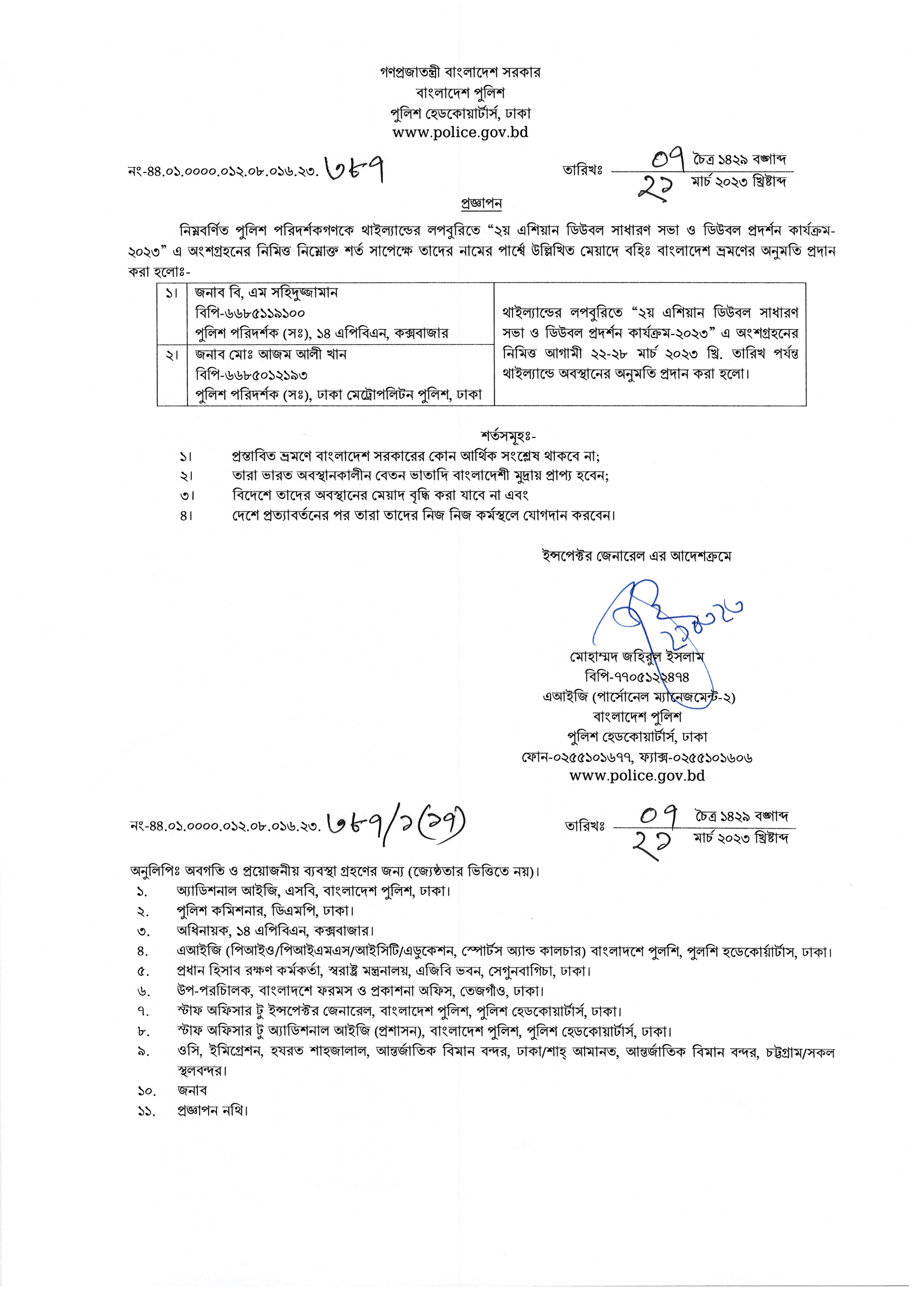 বহিঃ বাংলাদেশ ভ্রমন অনুমতি, প্রজ্ঞাপন নং-৩৮৭, তারিখঃ ২১/০৩/২০২৩