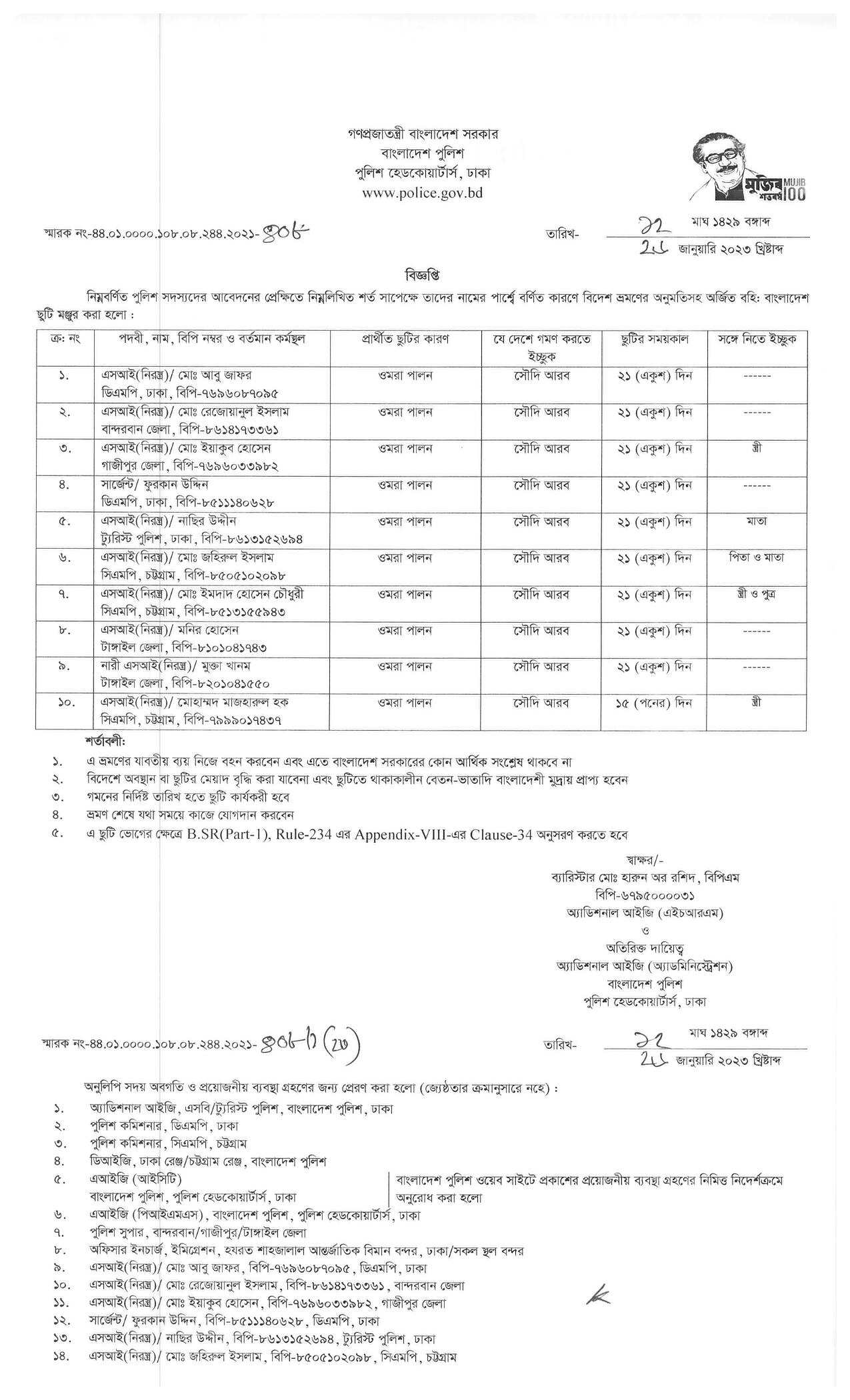 বহিঃ বাংলাদেশ ছুটি, বিজ্ঞপ্তি নং-৪০৮, তারিখঃ ২৬/০১/২০২৩