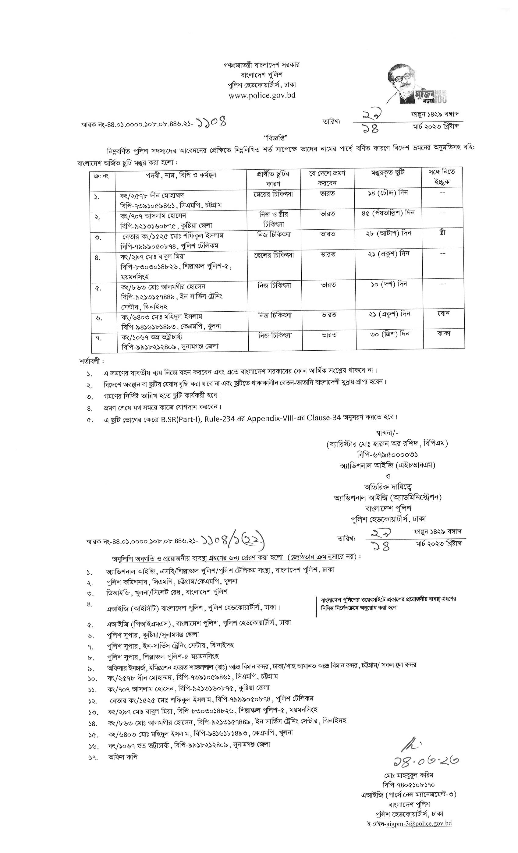 বহিঃ বাংলাদেশ ছুটি, বিজ্ঞপ্তি নং-১১০৮, তারিখঃ ১৪/০৩/২০২৩