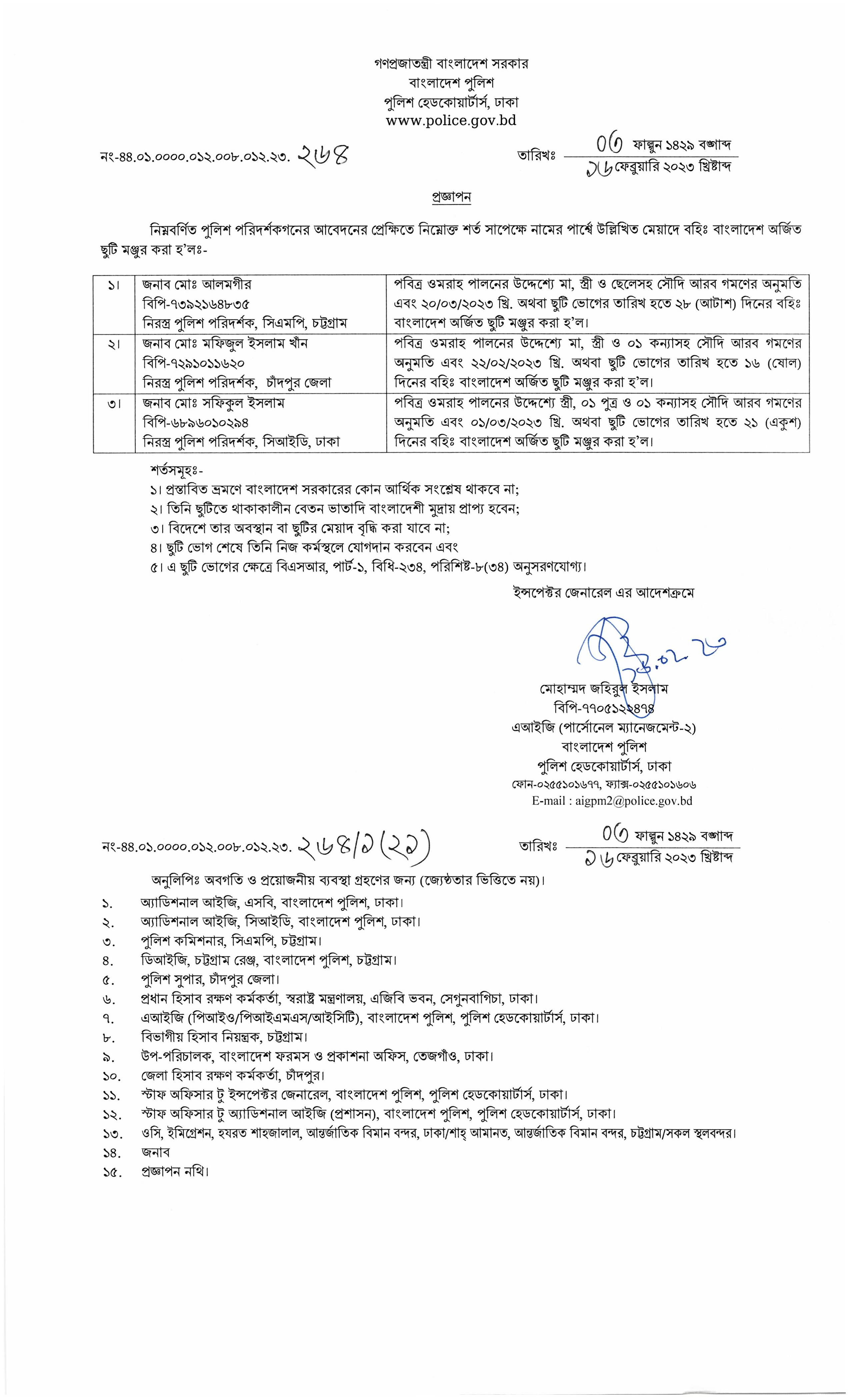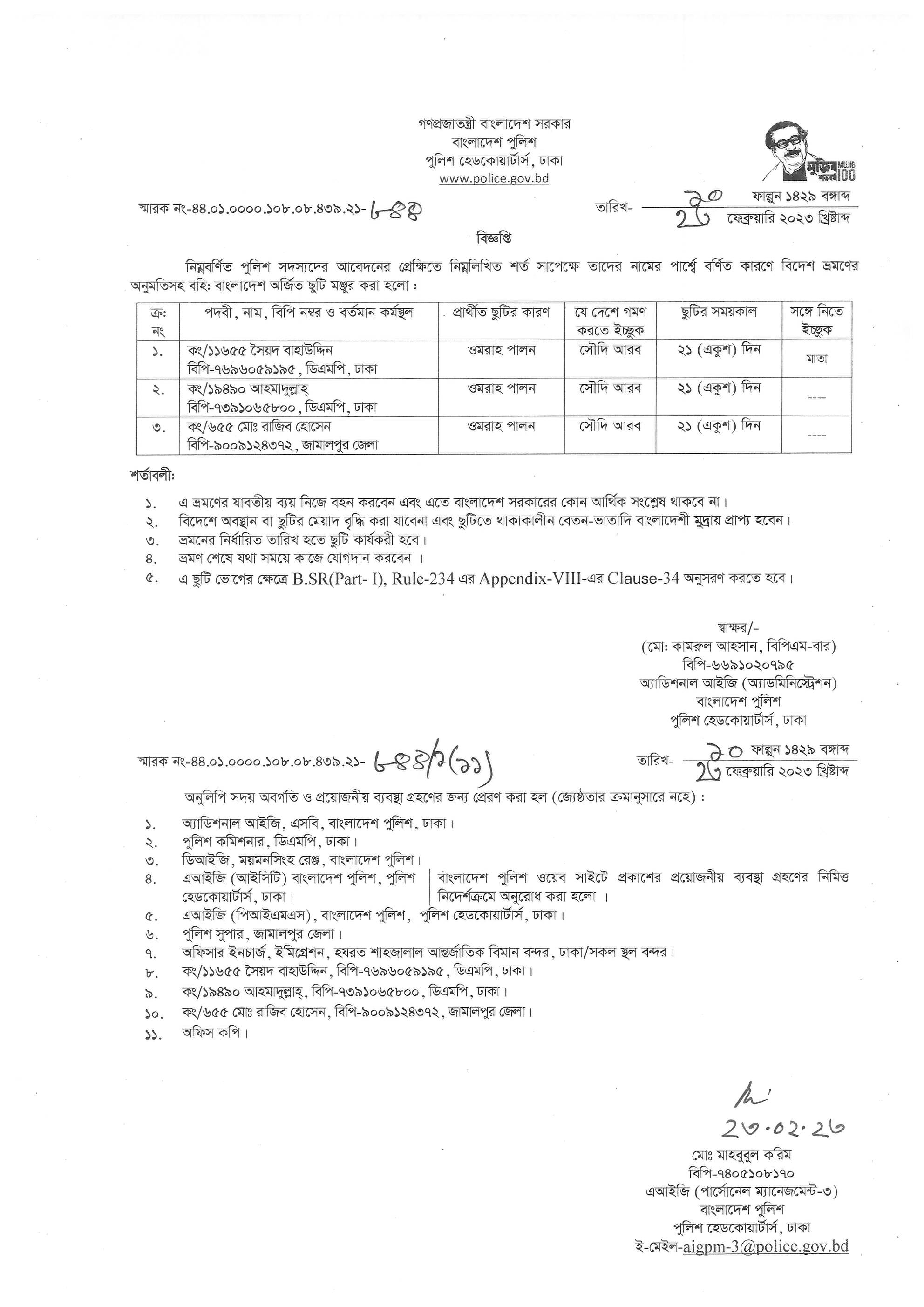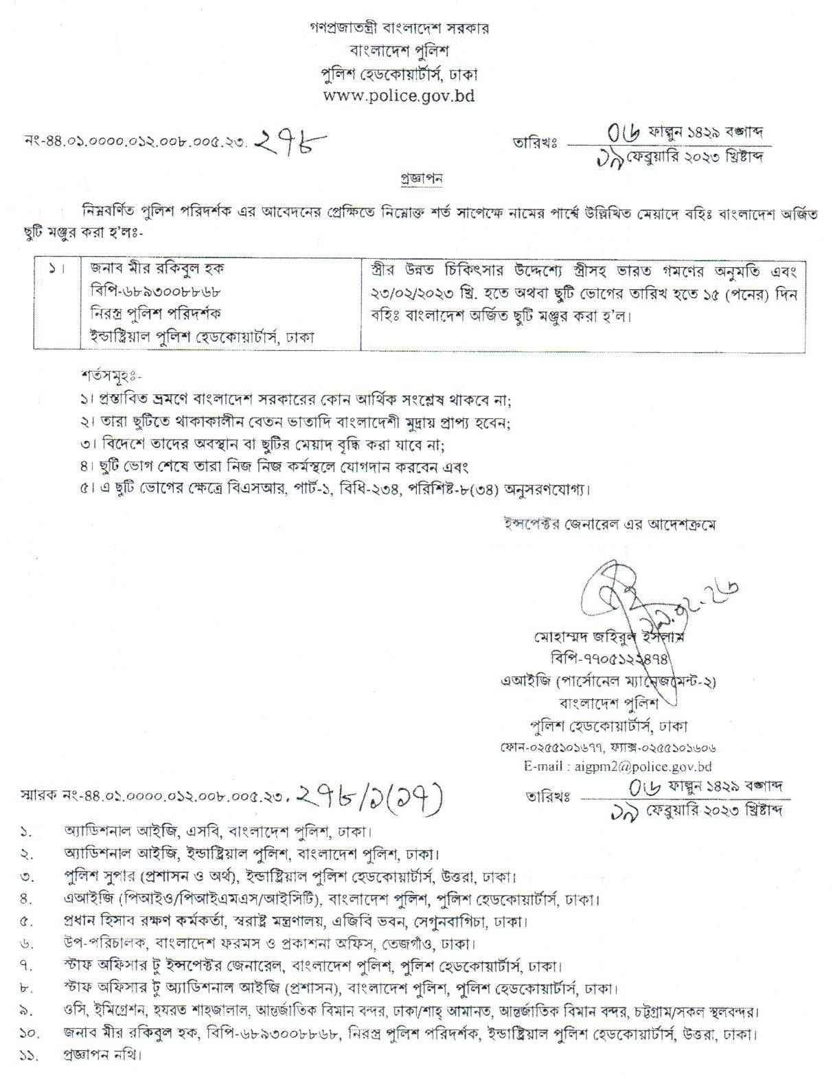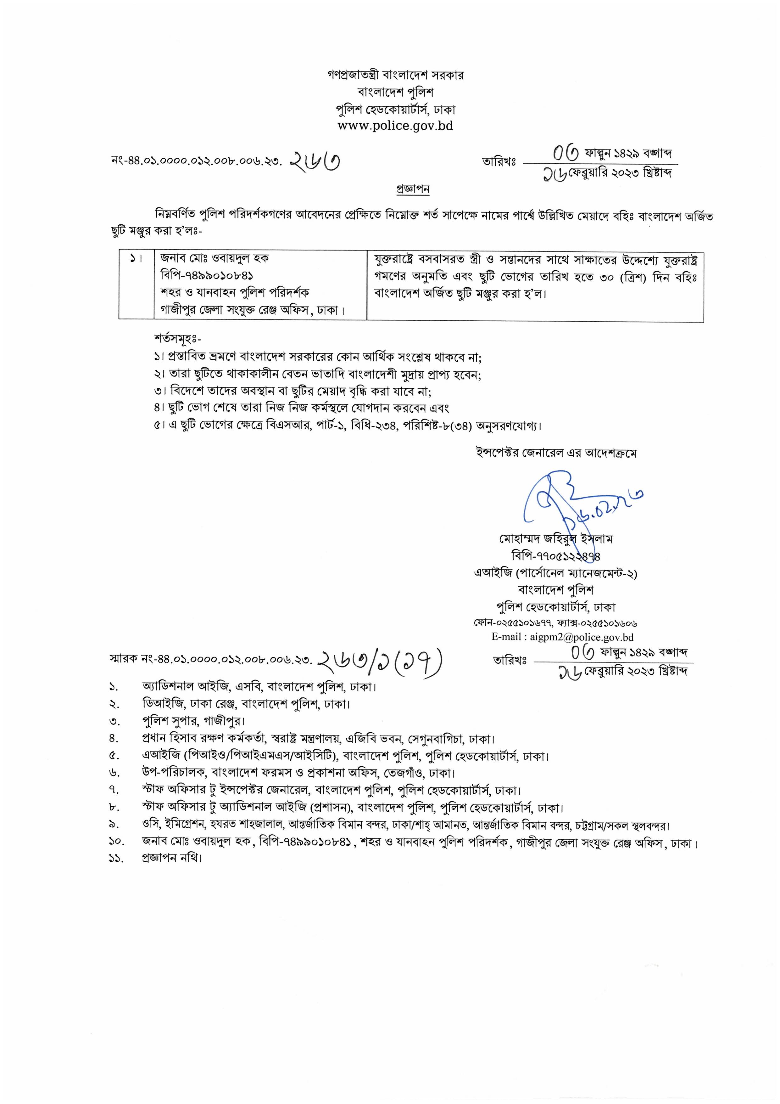 বহিঃ বাংলাদেশ ছুটি, বিজ্ঞপ্তি নং-৭৮৯, তারিখঃ ১৯/০২/২০২৩