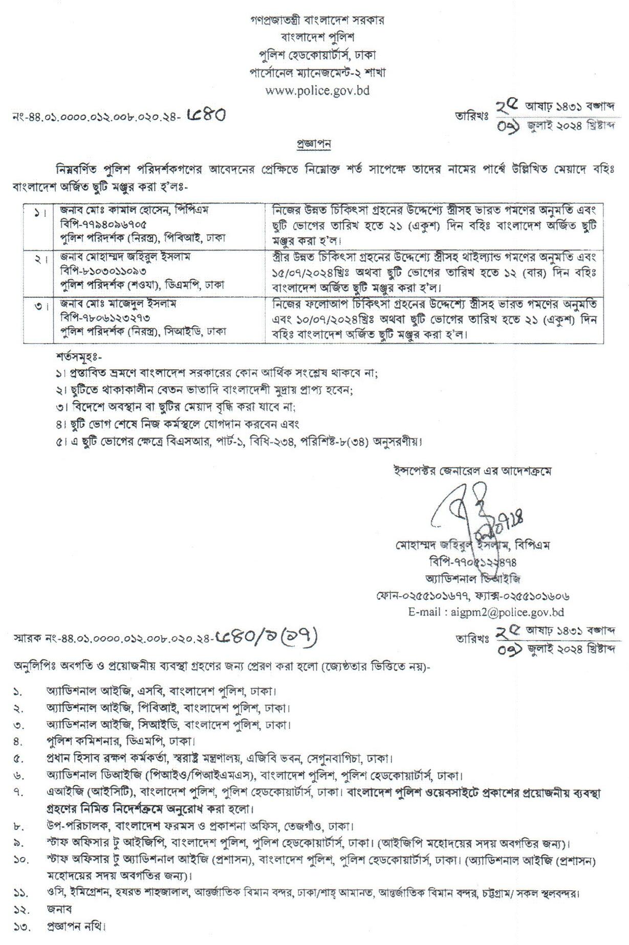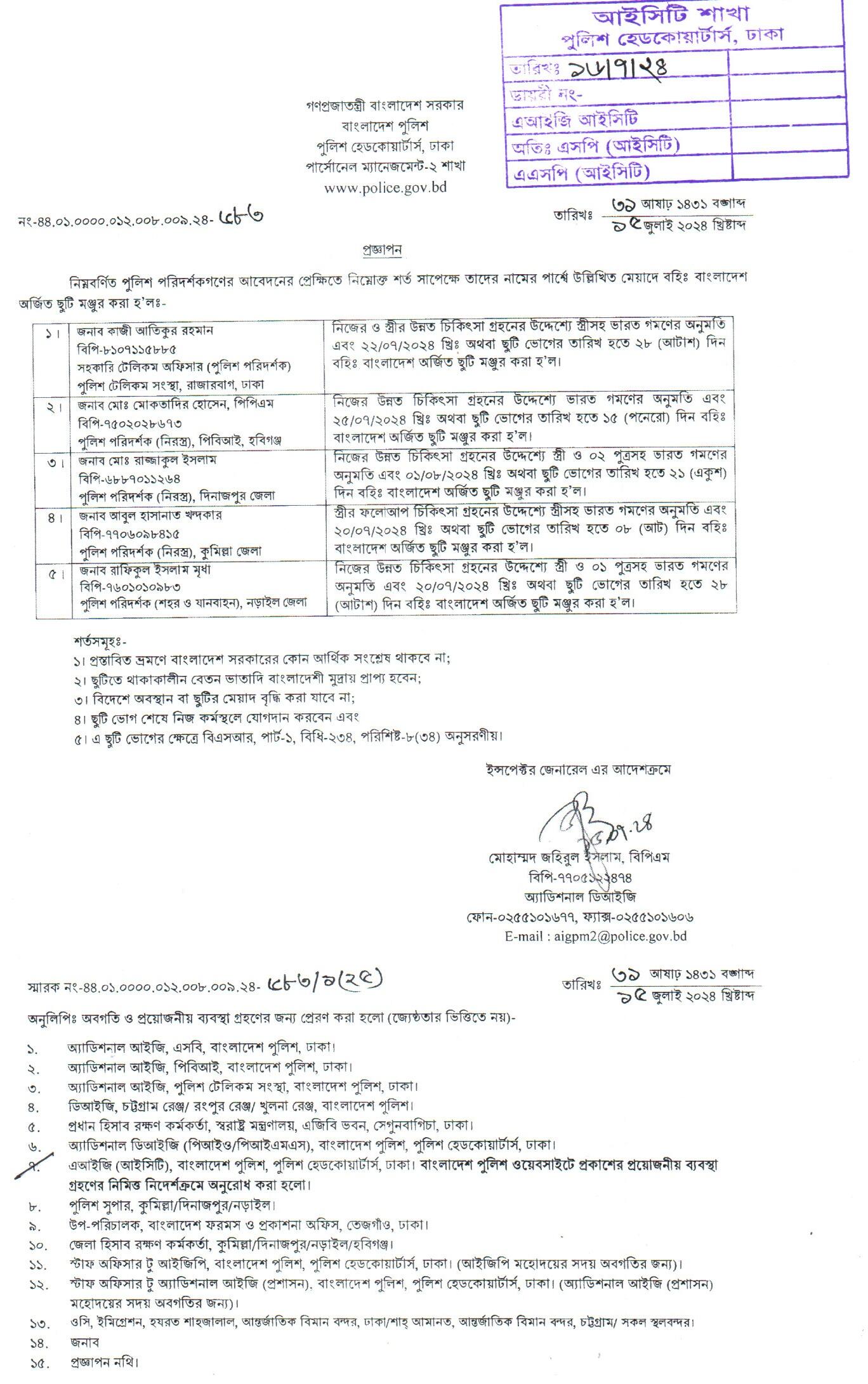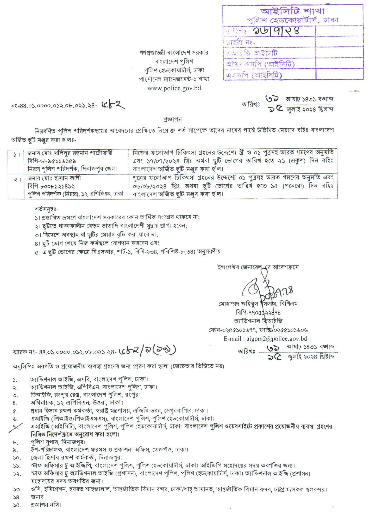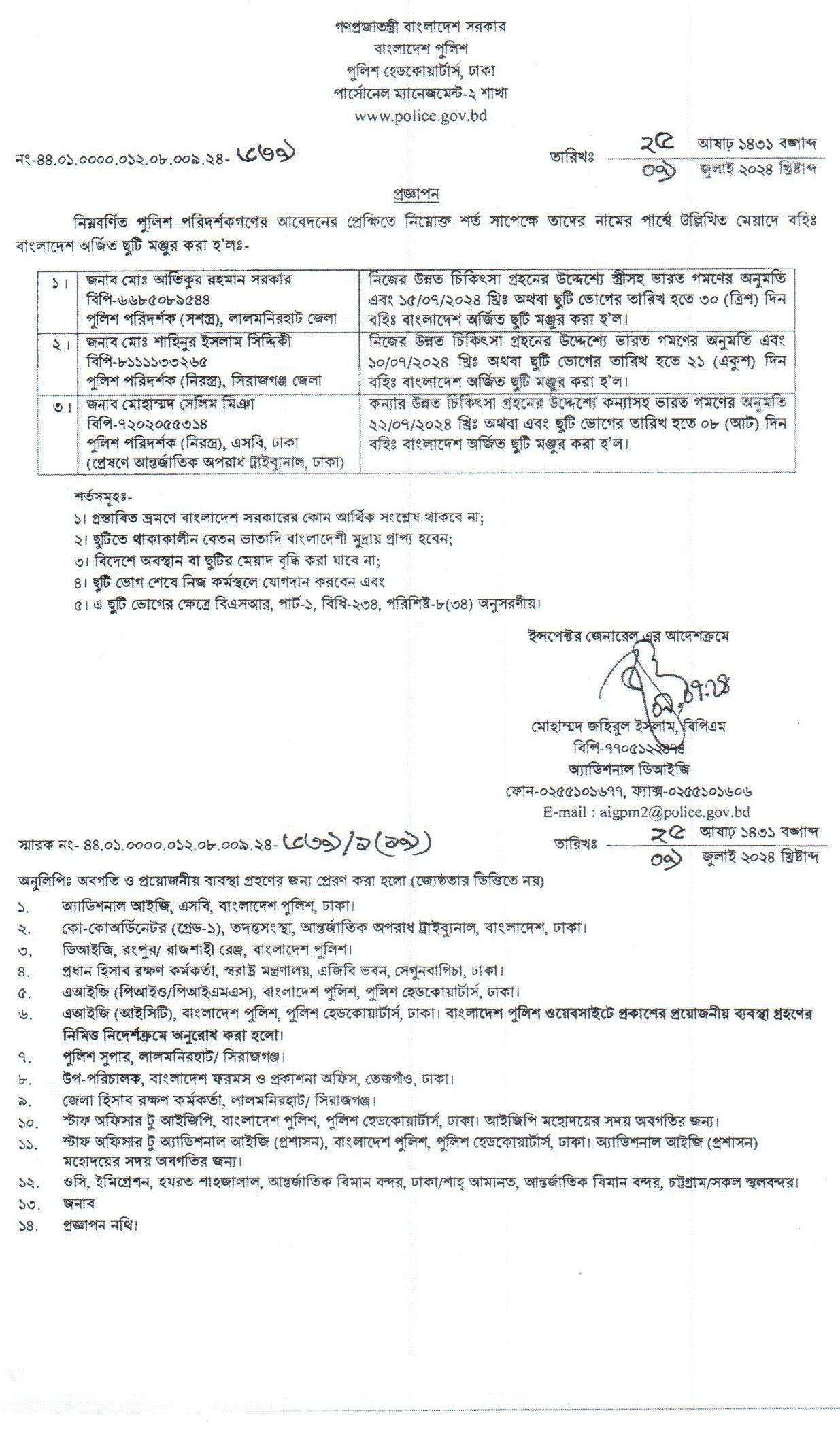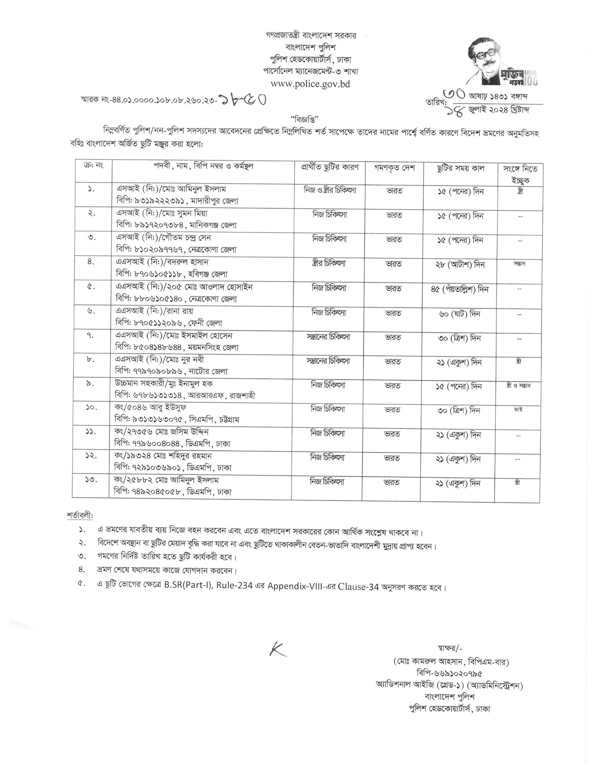 বহিঃ বাংলাদেশ গমন, বিজ্ঞপ্তি নং- ১৭৭৭(পৃ-২) , তারিখঃ ০৯/০৭/২০২৪ খ্রিঃ।