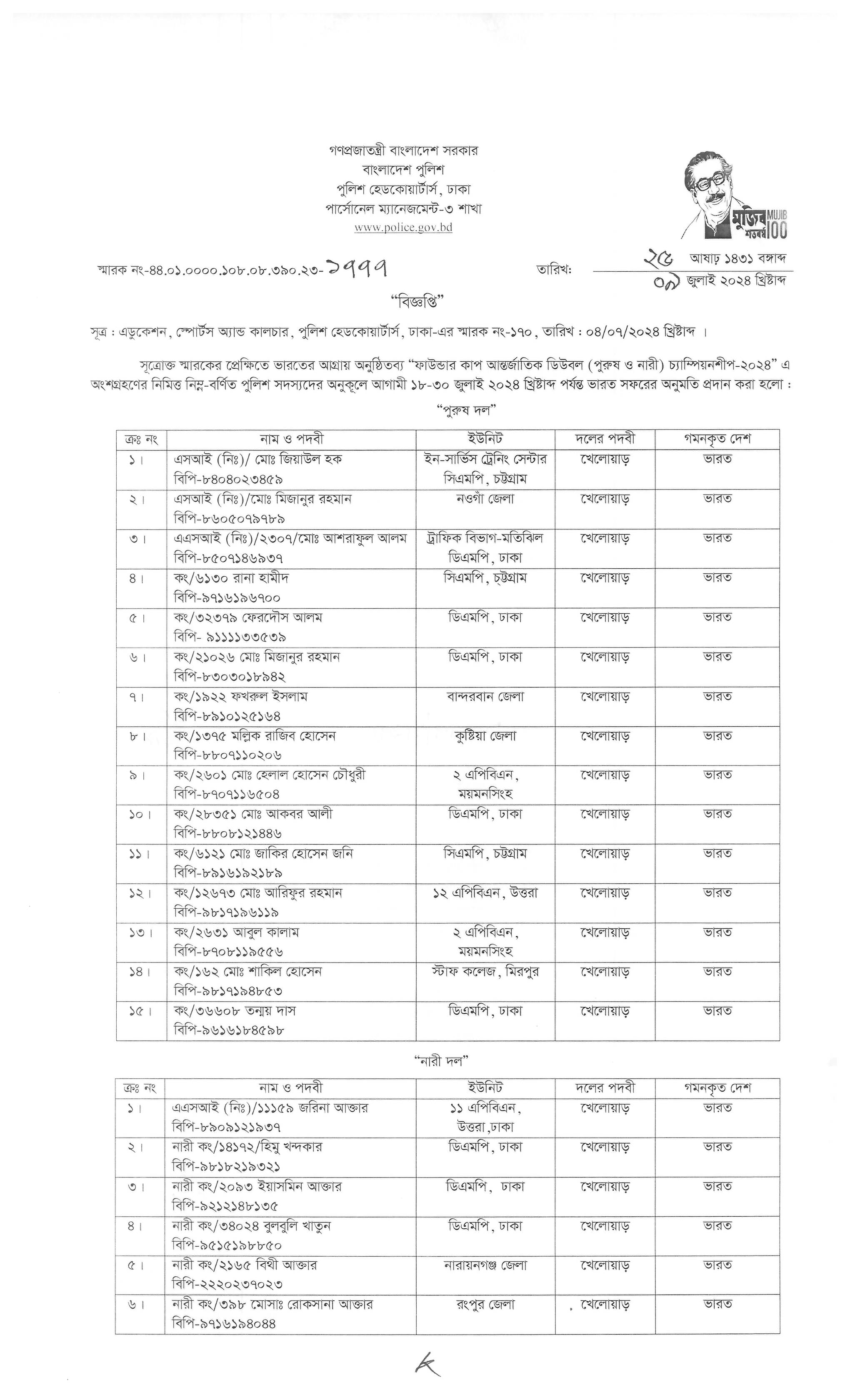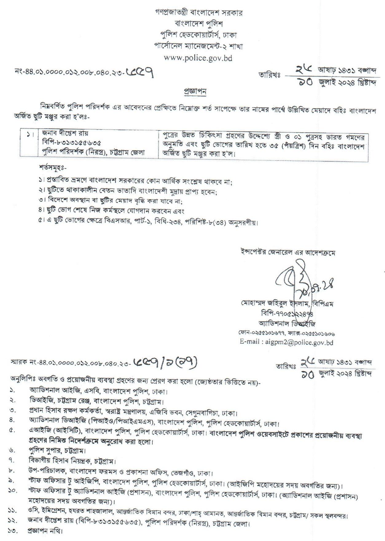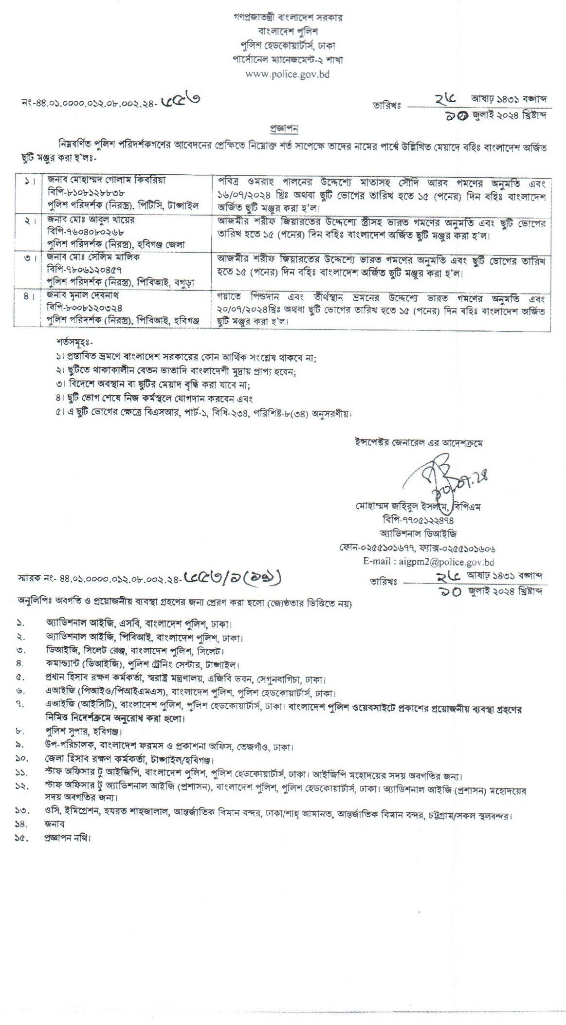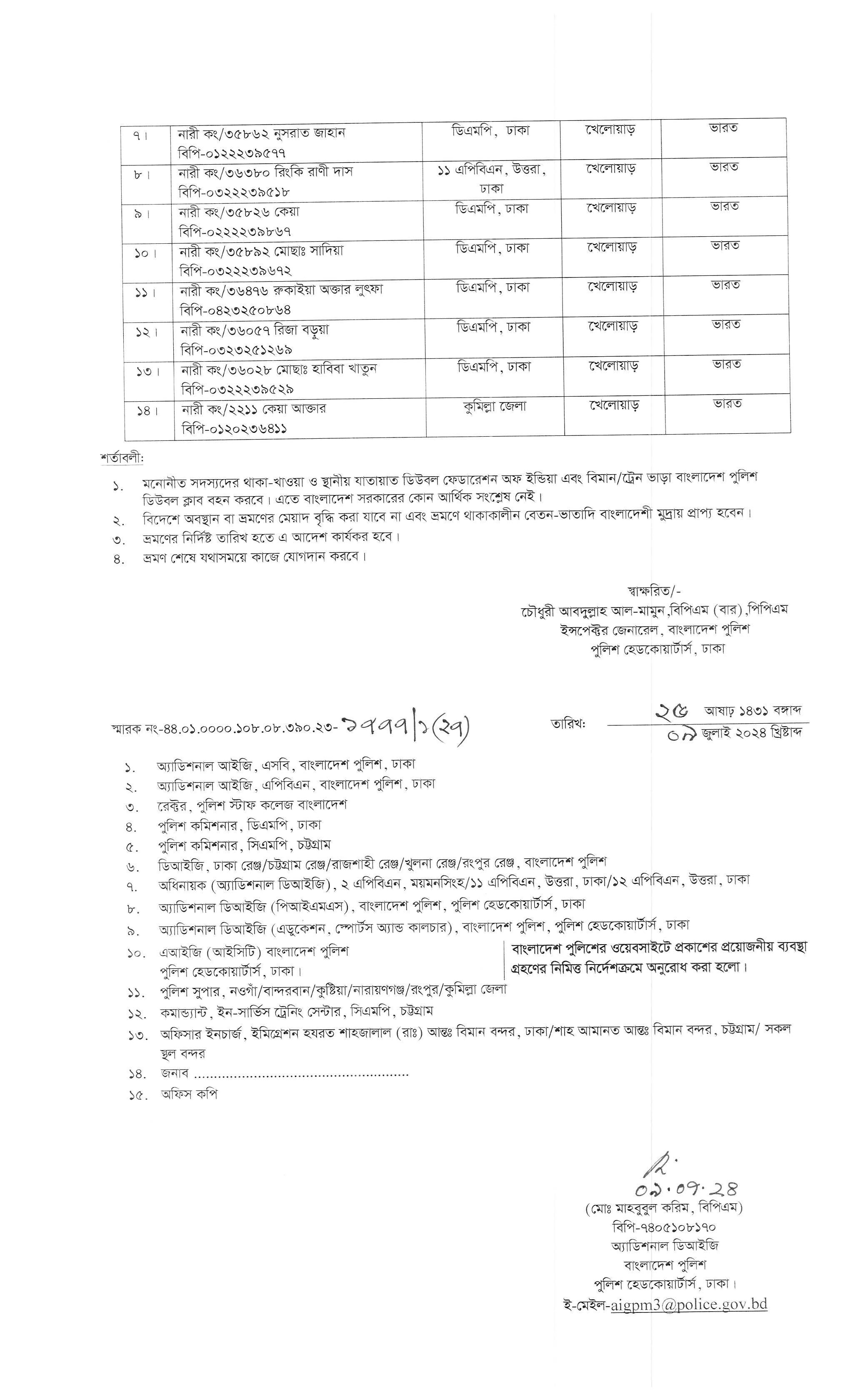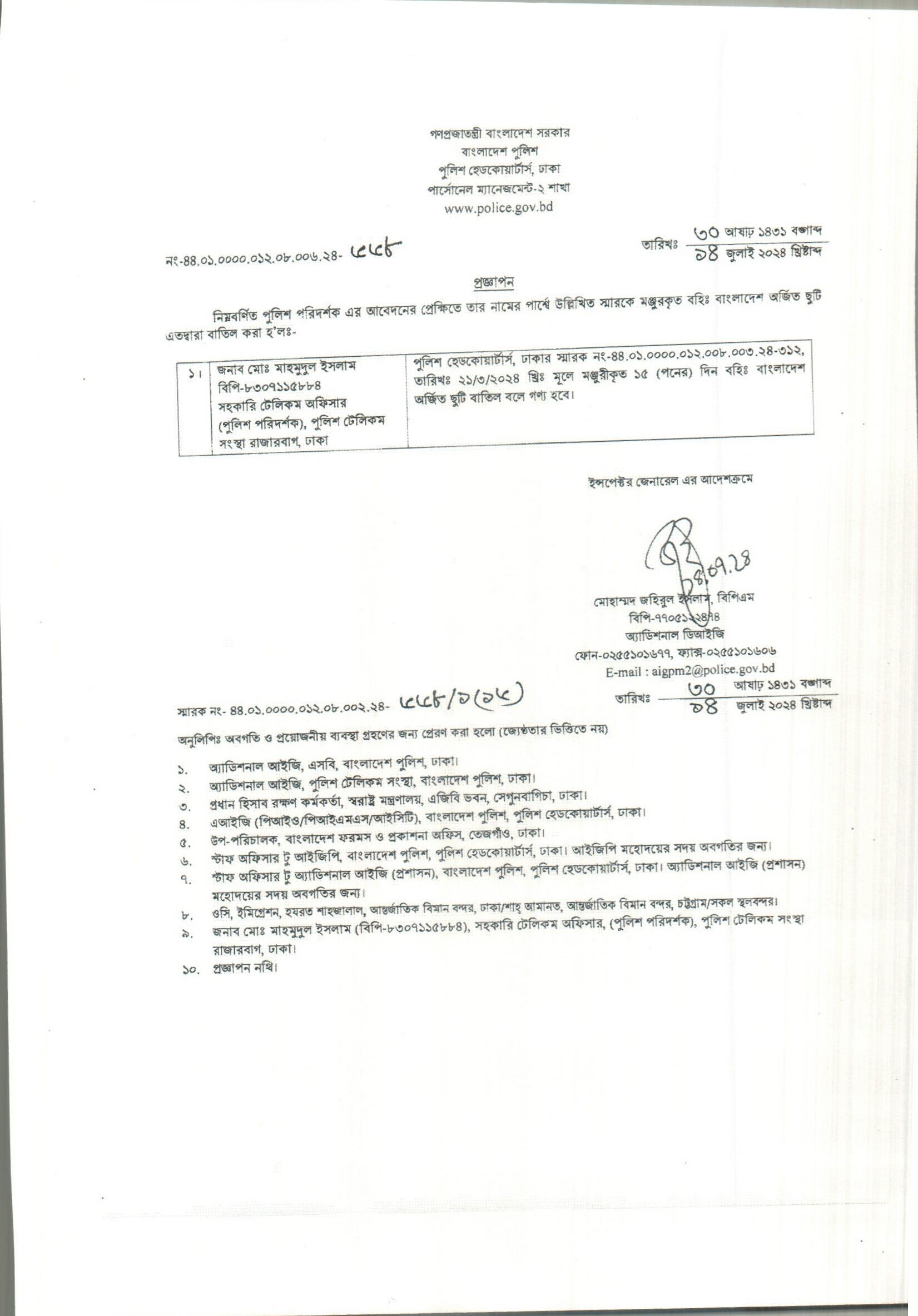 বহিঃ বাংলাদেশ গমন, বিজ্ঞপ্তি নং- ১৭৭৭(পৃ-২) , তারিখঃ ০৯/০৭/২০২৪ খ্রিঃ।