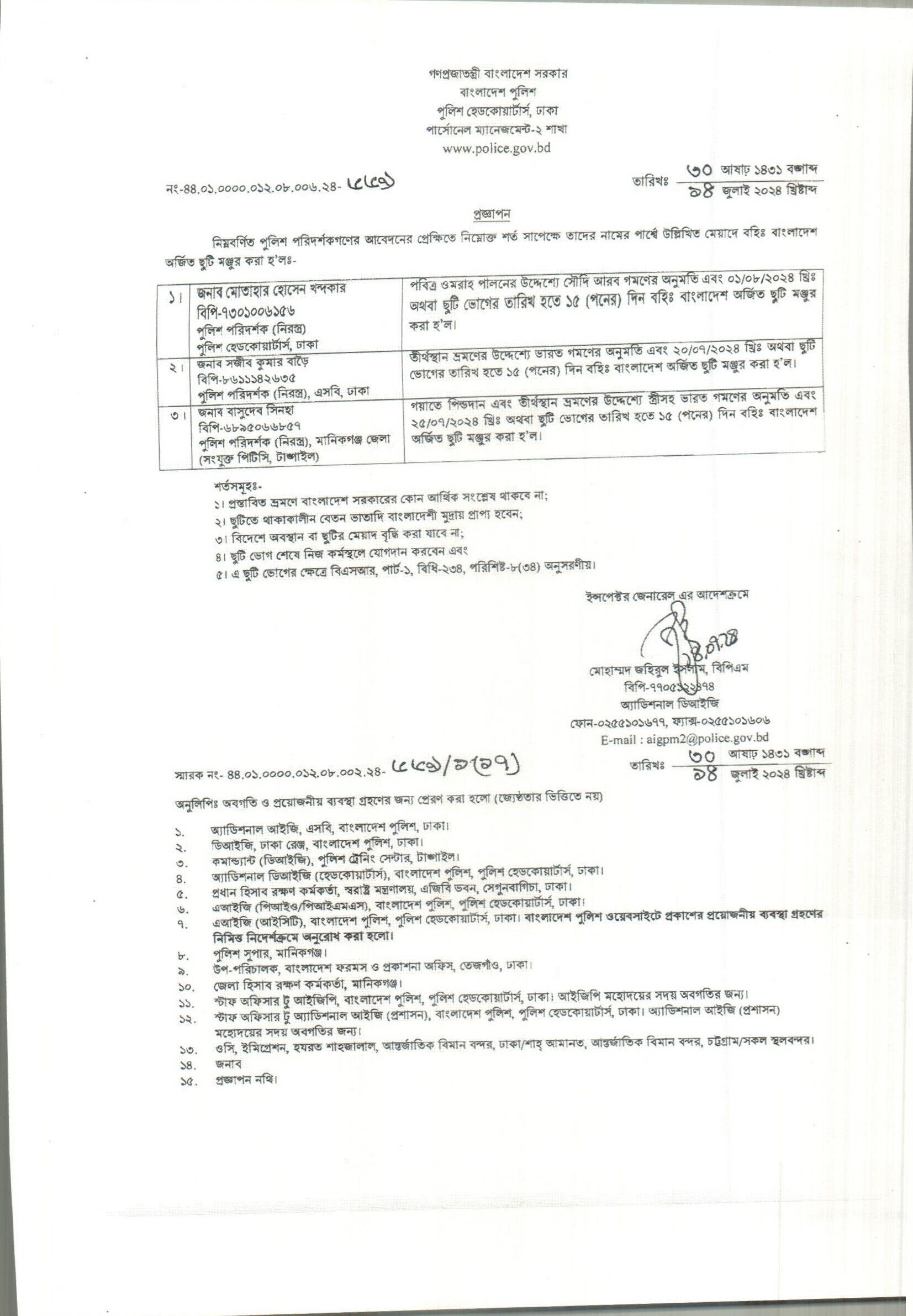 বহিঃ বাংলাদেশ ছুটি, প্রজ্ঞাপন নং- ৬৬৯, তারিখঃ ১৪/০৭/২০২৪ খ্রিঃ।