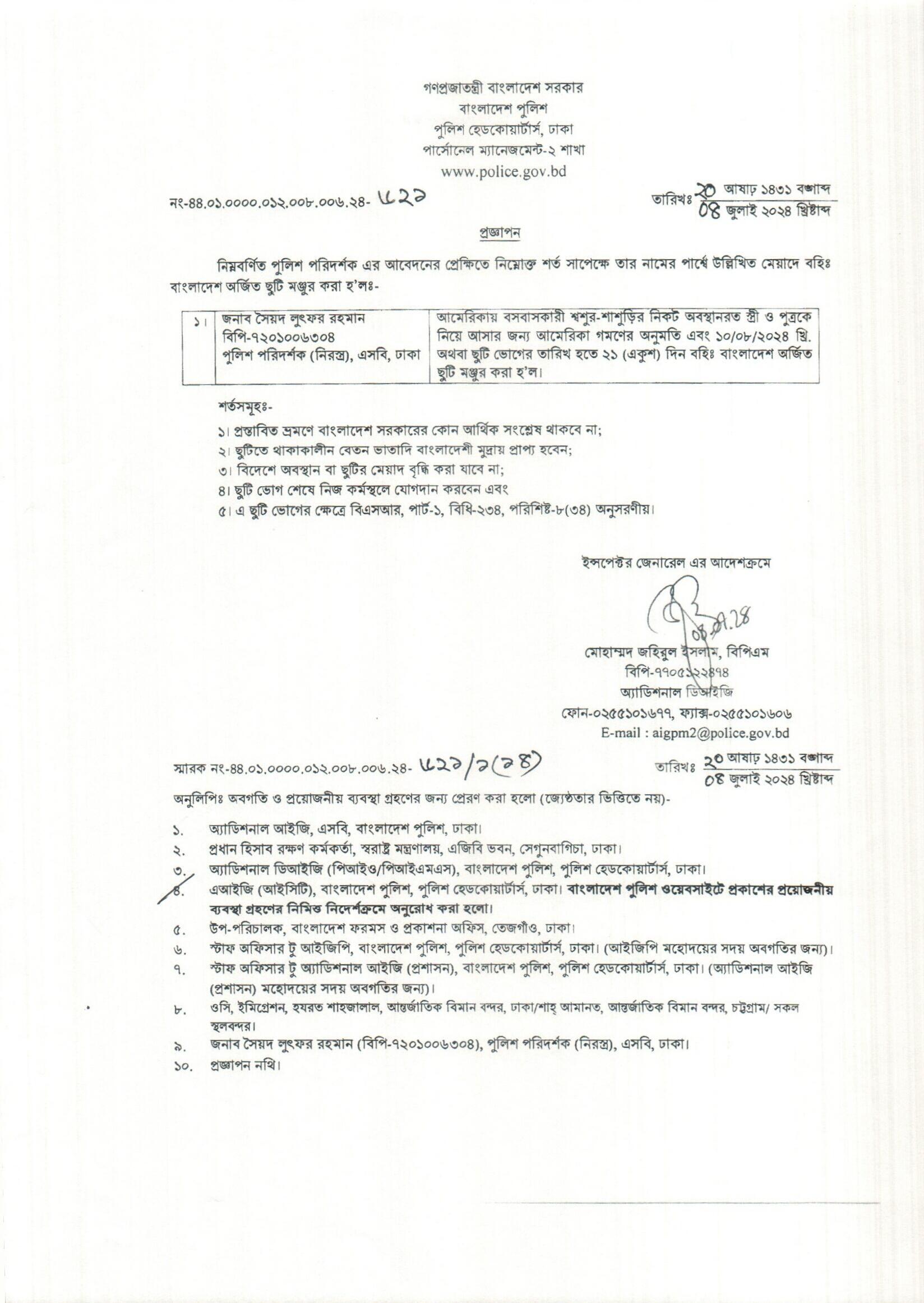 বহিঃ বাংলাদেশ ছুটি, প্রজ্ঞাপন নং- ৬৩৩, তারিখঃ ০৭/০৭/২০২৪ খ্রিঃ।