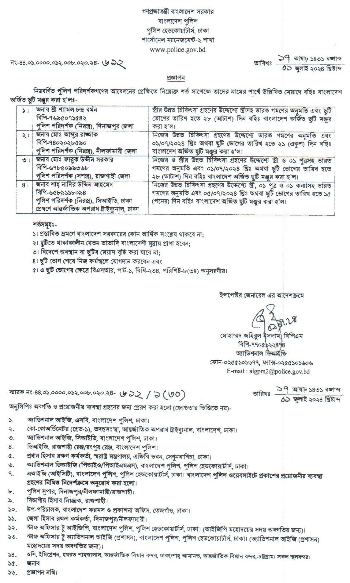 বহিঃ বাংলাদেশ ছুটি, বিজ্ঞপ্তি নং- ১৬৩৯ , তারিখঃ ০২/০৭/২০২৪ খ্রিঃ।