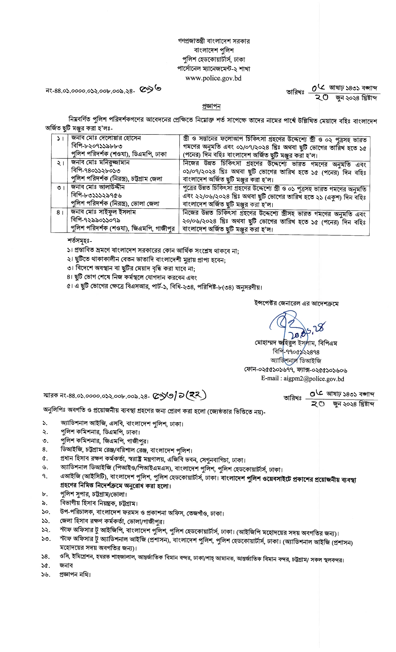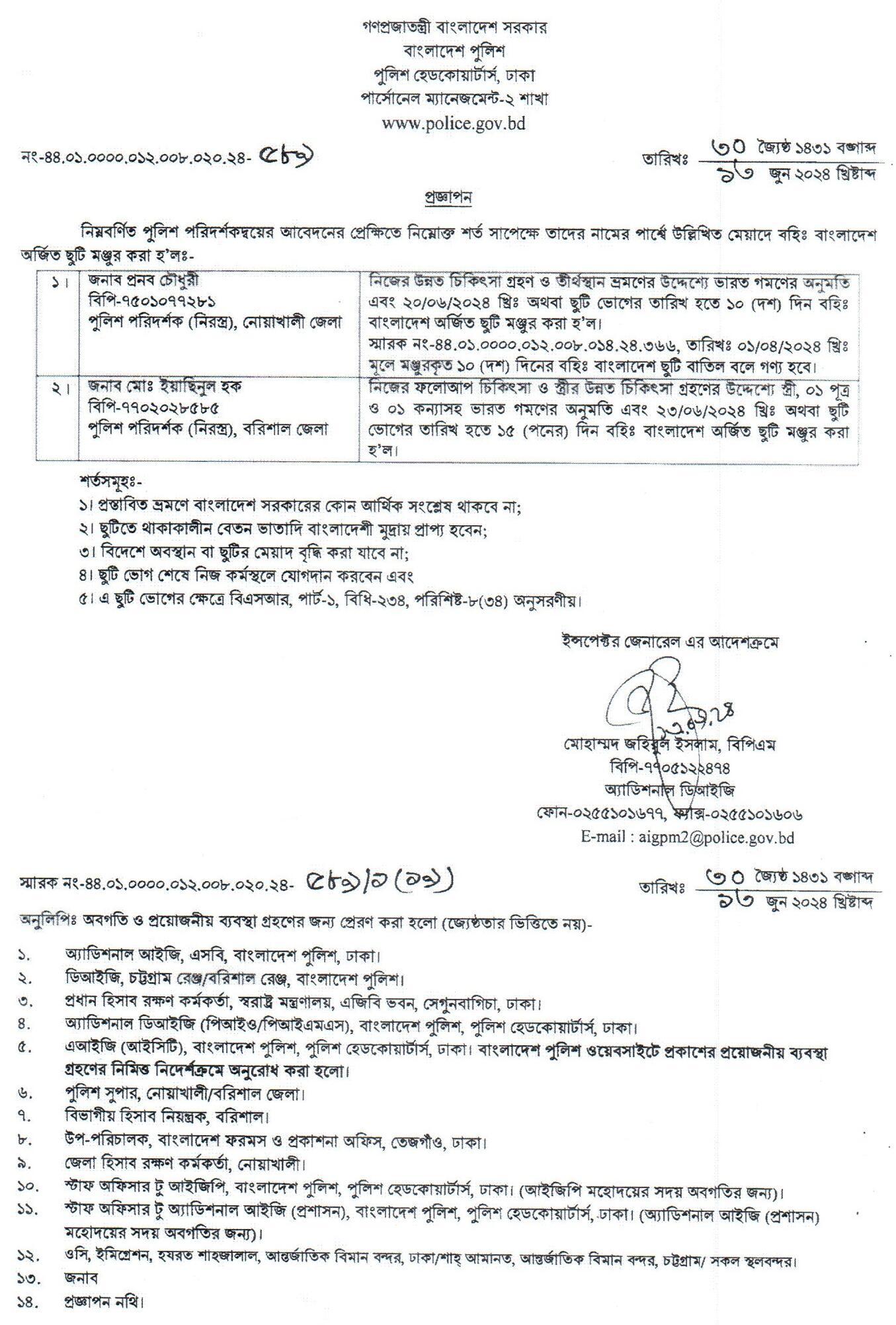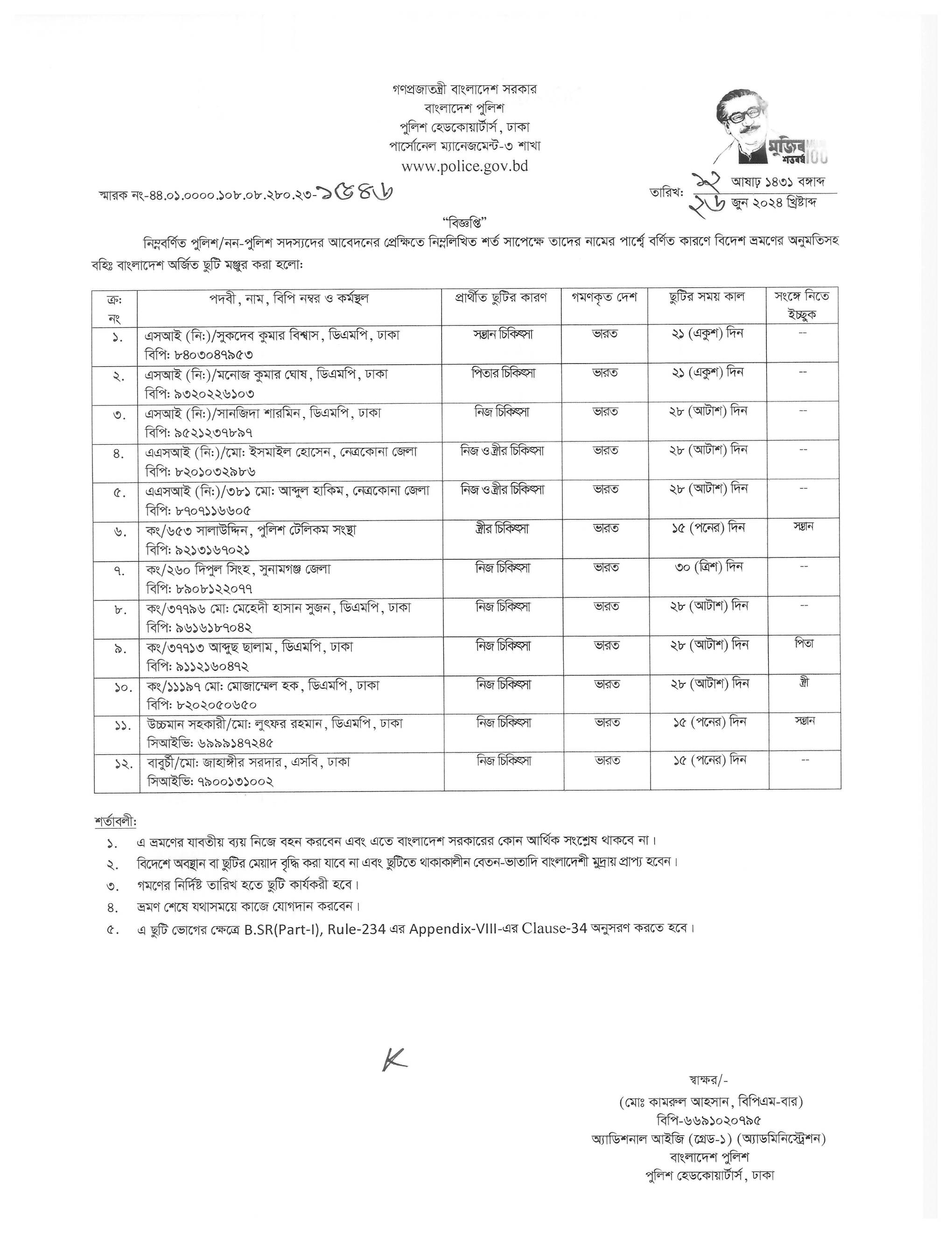 বহিঃ বাংলাদেশ ছুটি, বিজ্ঞপ্তি নং- ১৫৩৫ , তারিখঃ ২৩/০৬/২০২৪ খ্রিঃ।