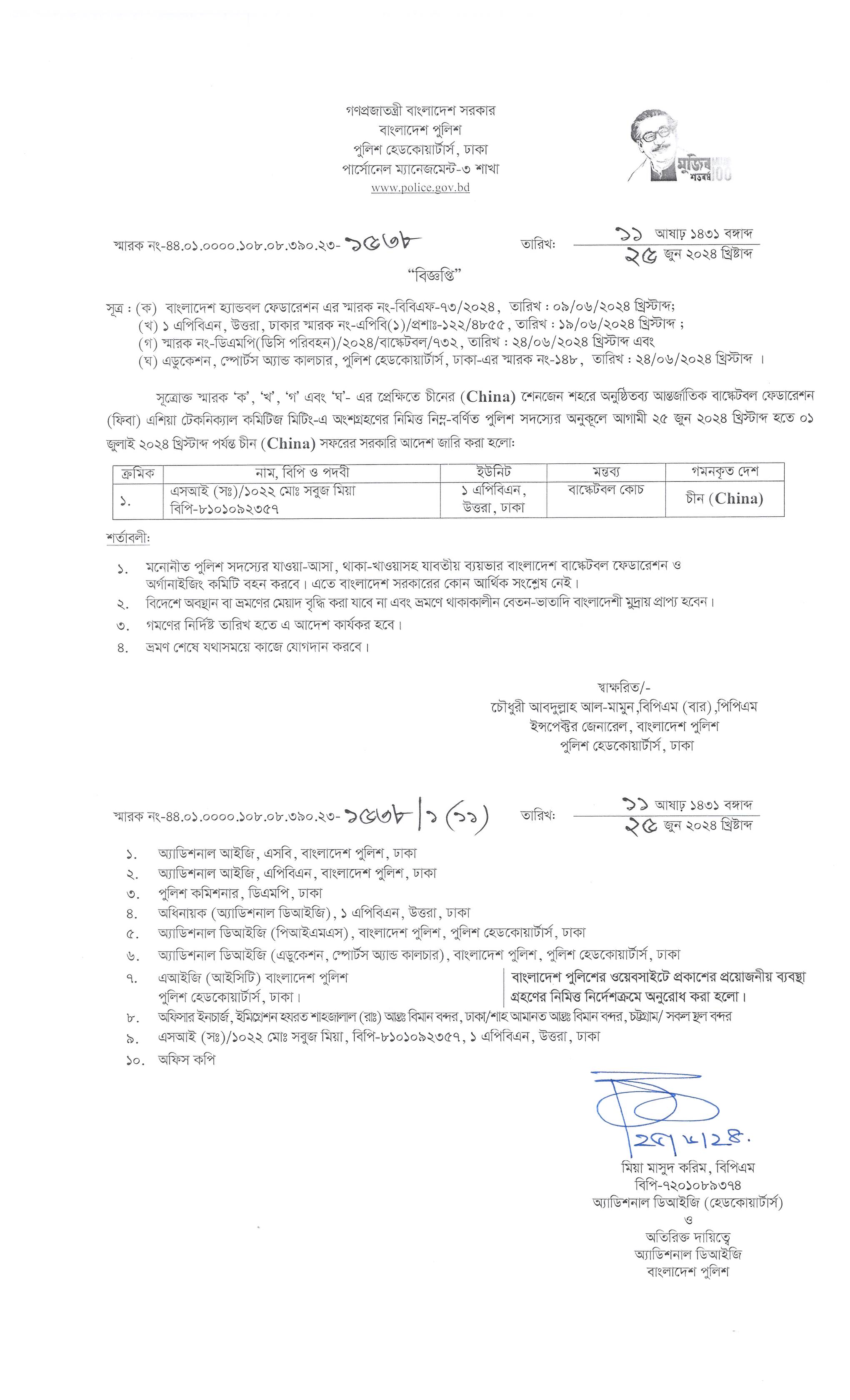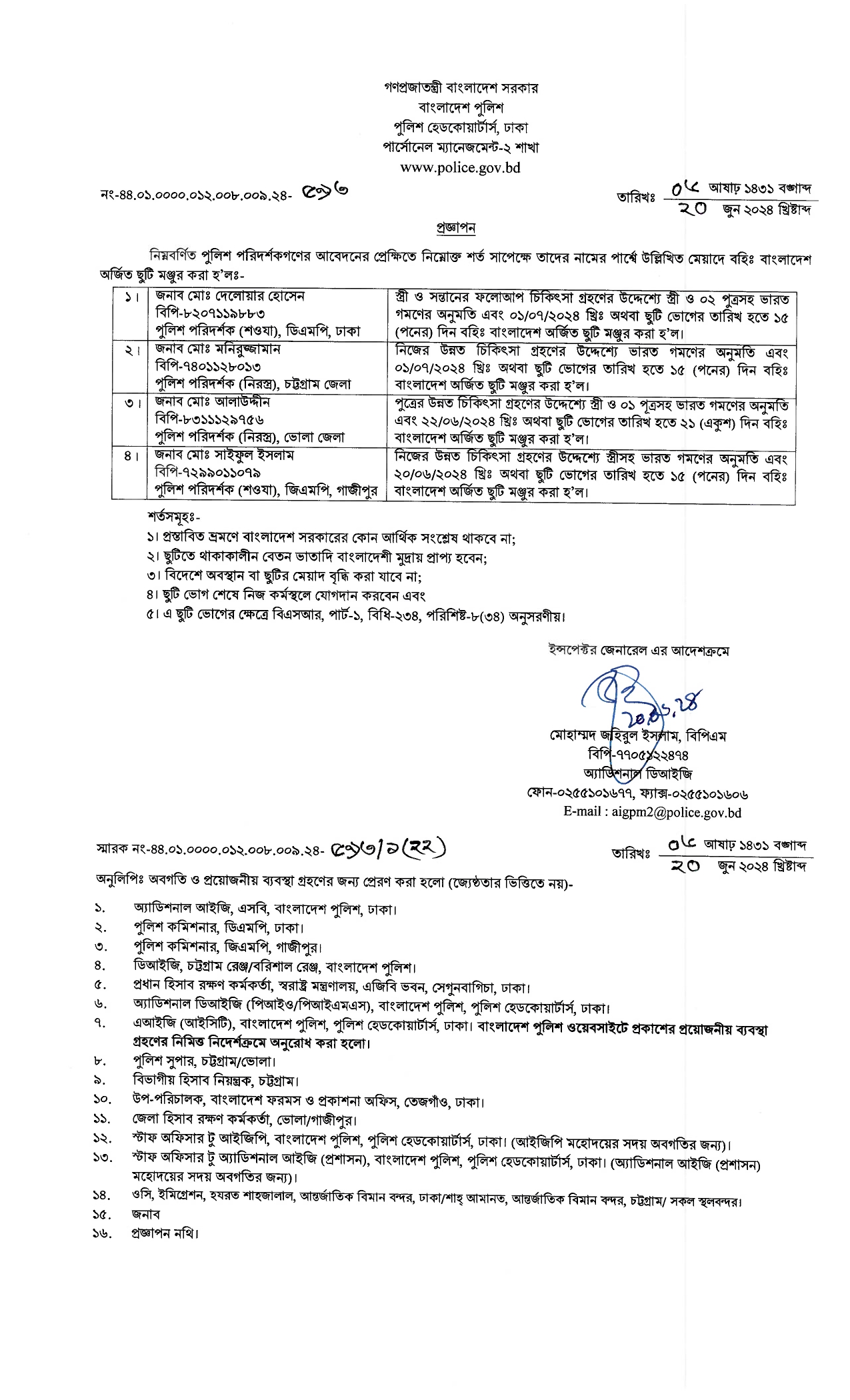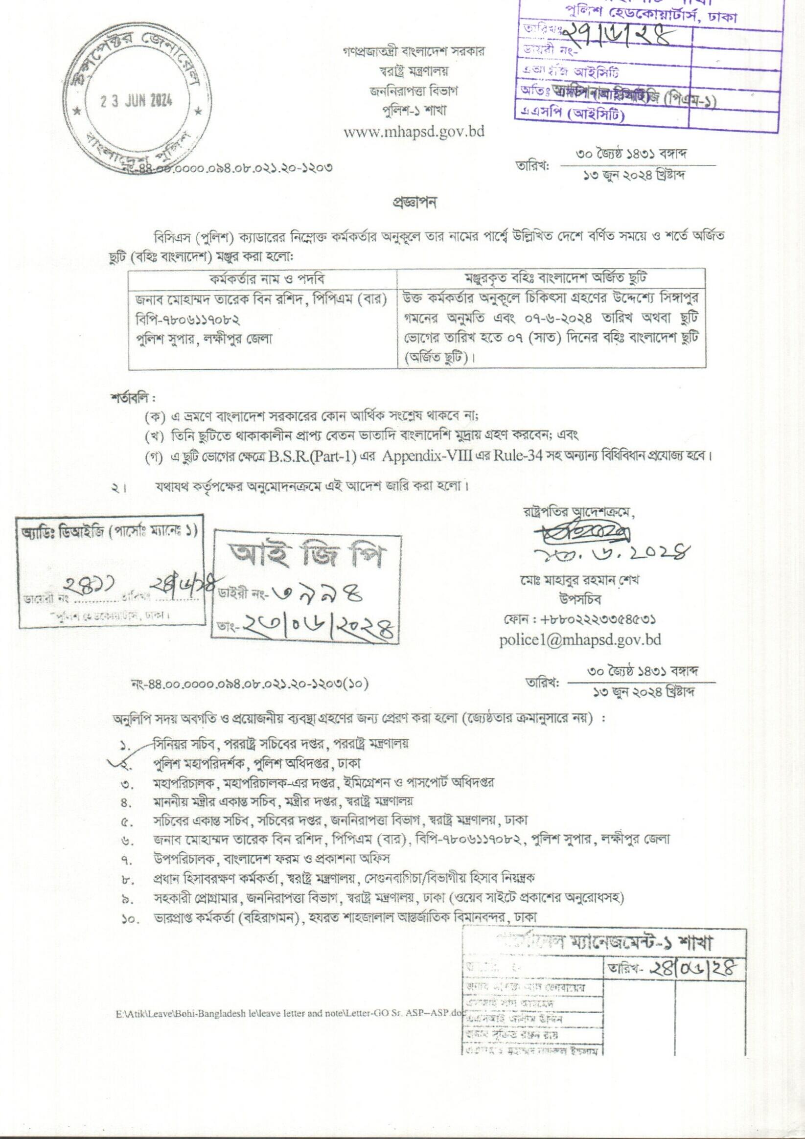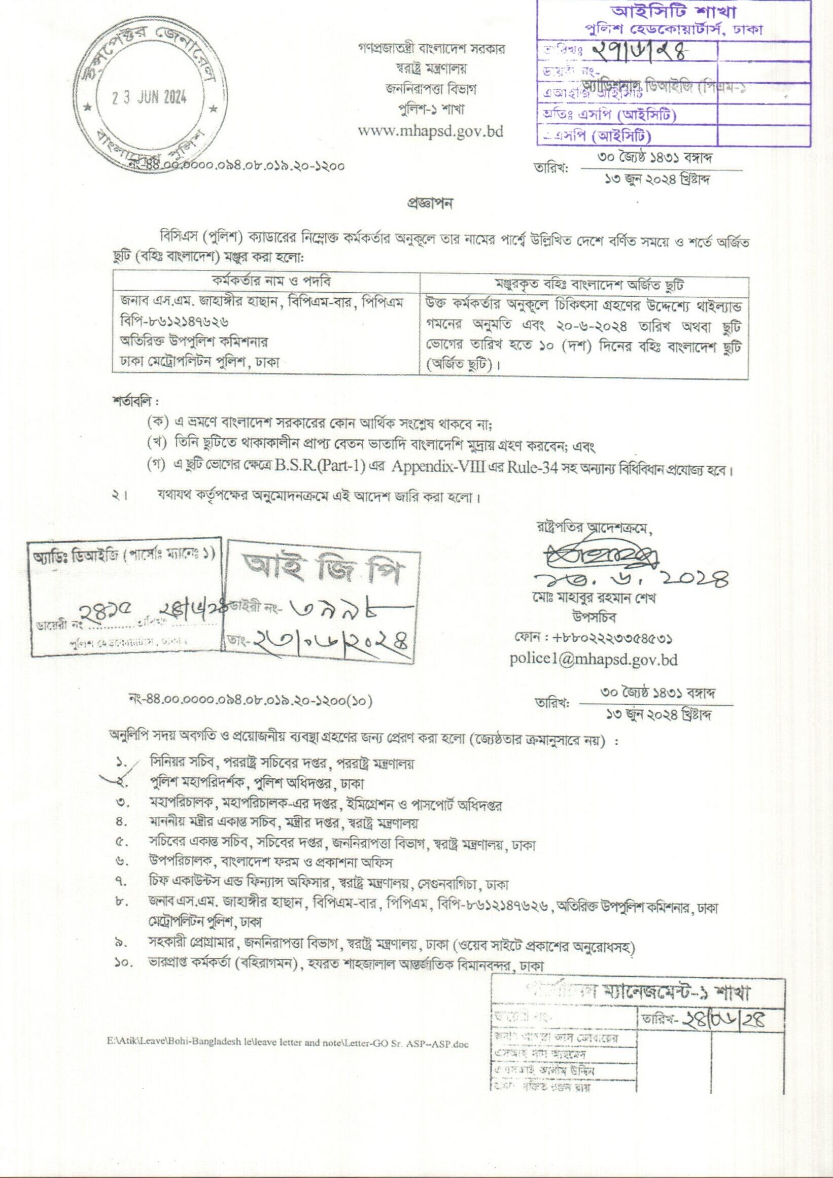 বহিঃ বাংলাদেশ ছুটি, বিজ্ঞপ্তি নং- ১৫৩৭ , তারিখঃ ২৩/০৬/২০২৪ খ্রিঃ।