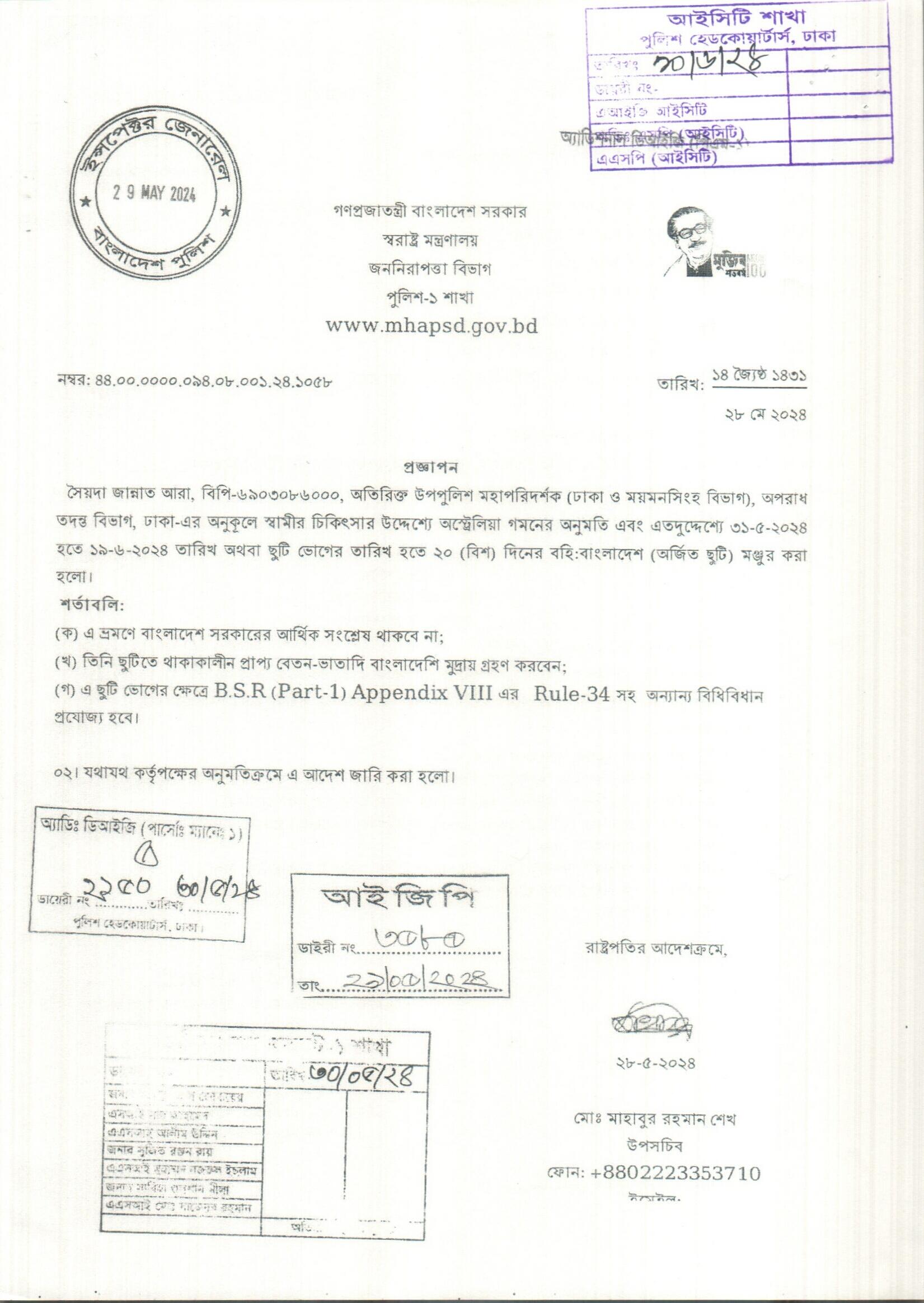 বহিঃ বাংলাদেশ ছুটি, প্রজ্ঞাপন নং- ১০৫৮, তারিখঃ ২৮/০৫/২০২৪ খ্রিঃ।