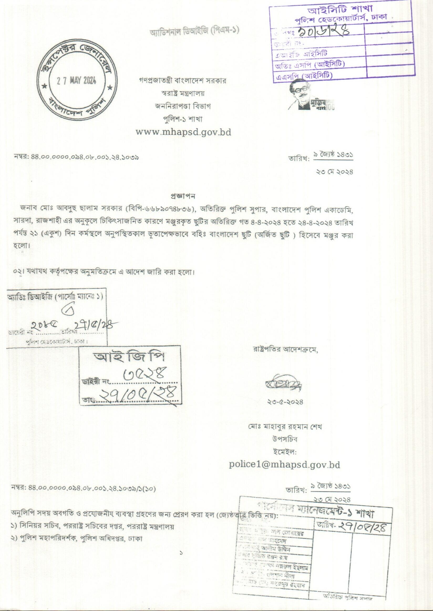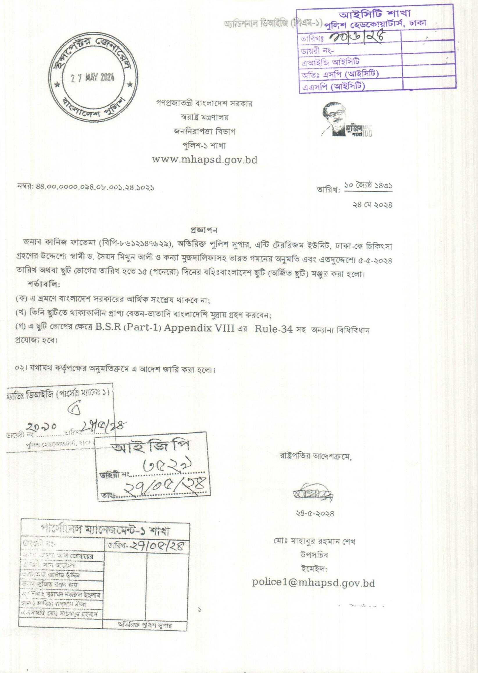 বহিঃ বাংলাদেশ ছুটি, প্রজ্ঞাপন নং- ১০২১, তারিখঃ ২৪/০৫/২০২৪ খ্রিঃ।