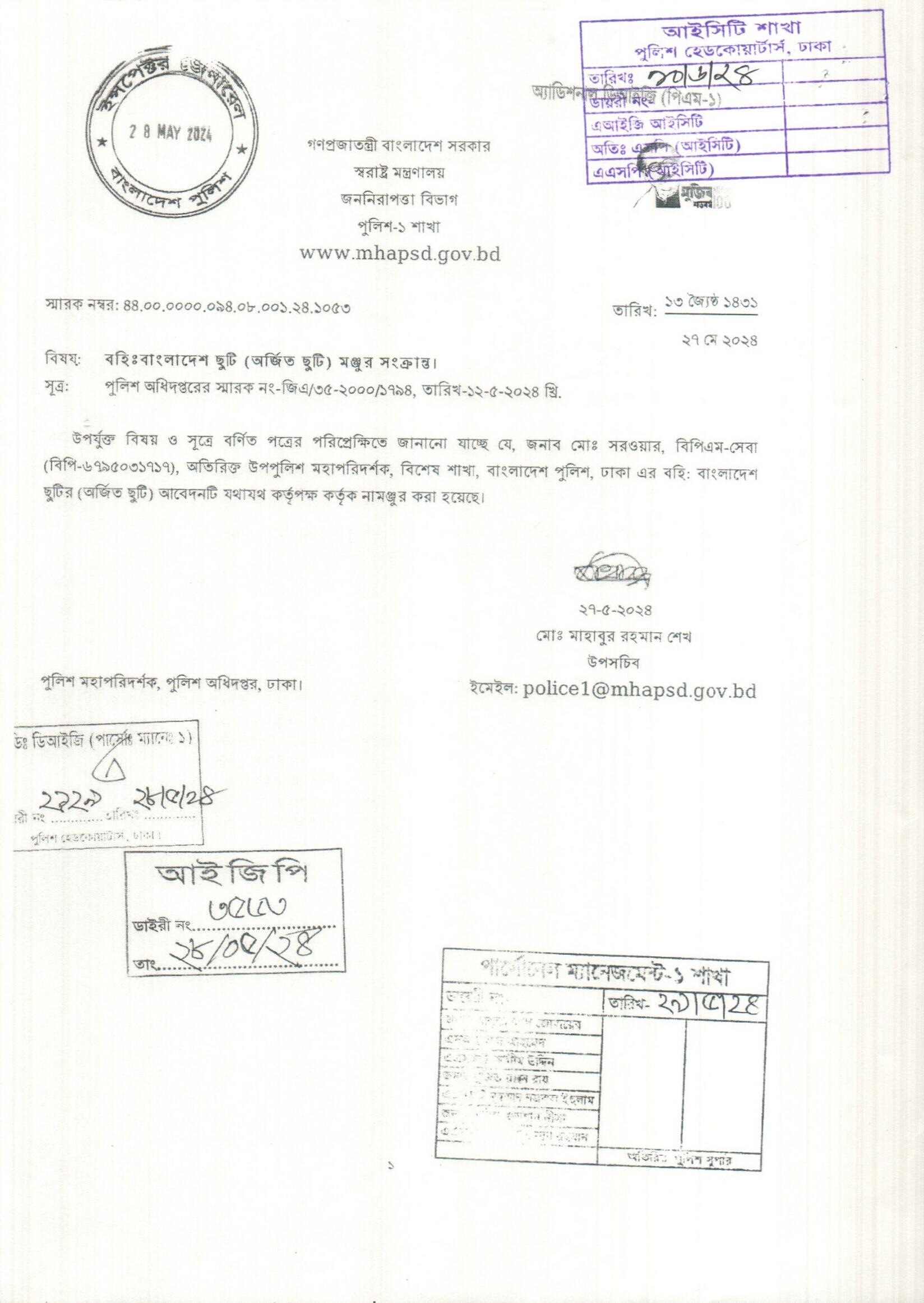 বহিঃ বাংলাদেশ ছুটি, প্রজ্ঞাপন নং- ১০৫৭, তারিখঃ ২৮/০৫/২০২৪ খ্রিঃ।
