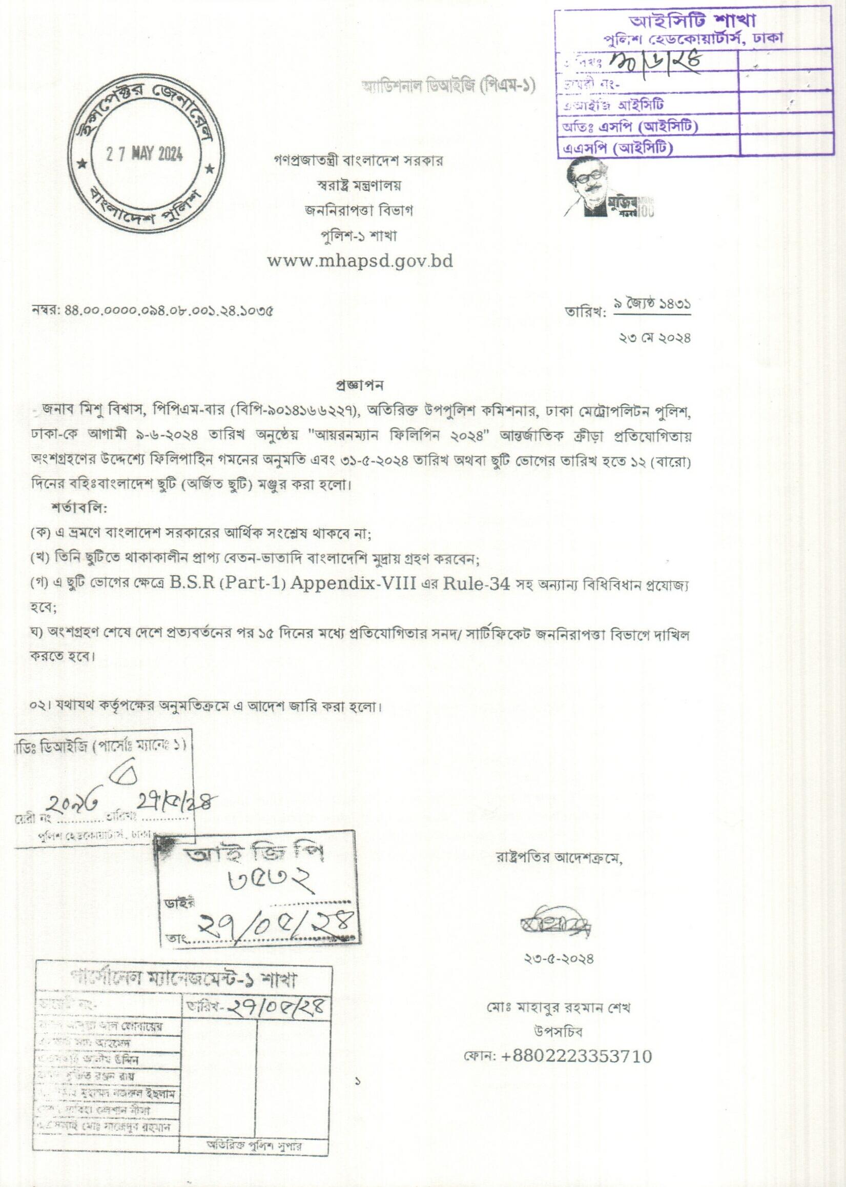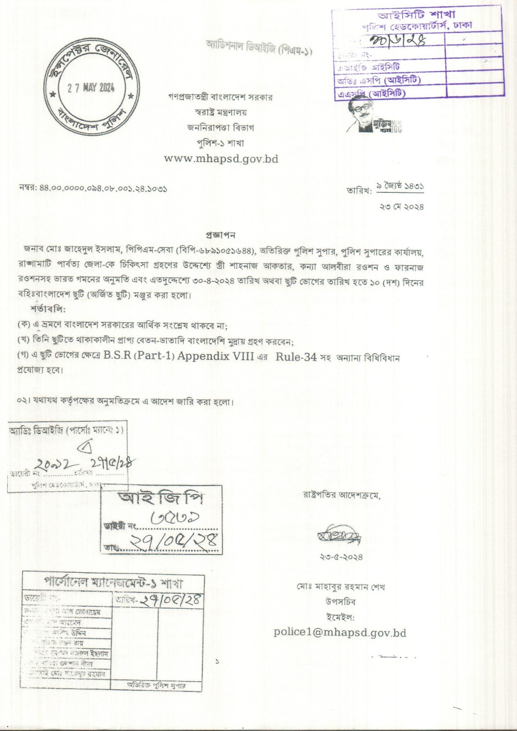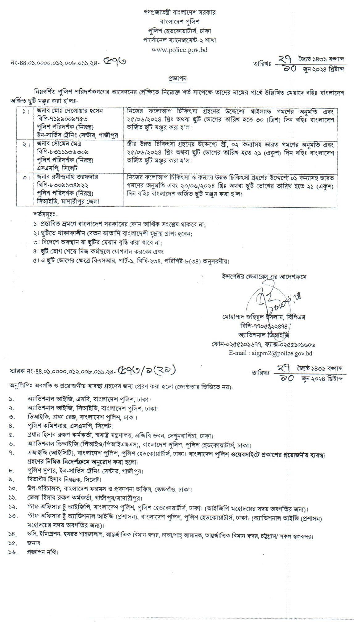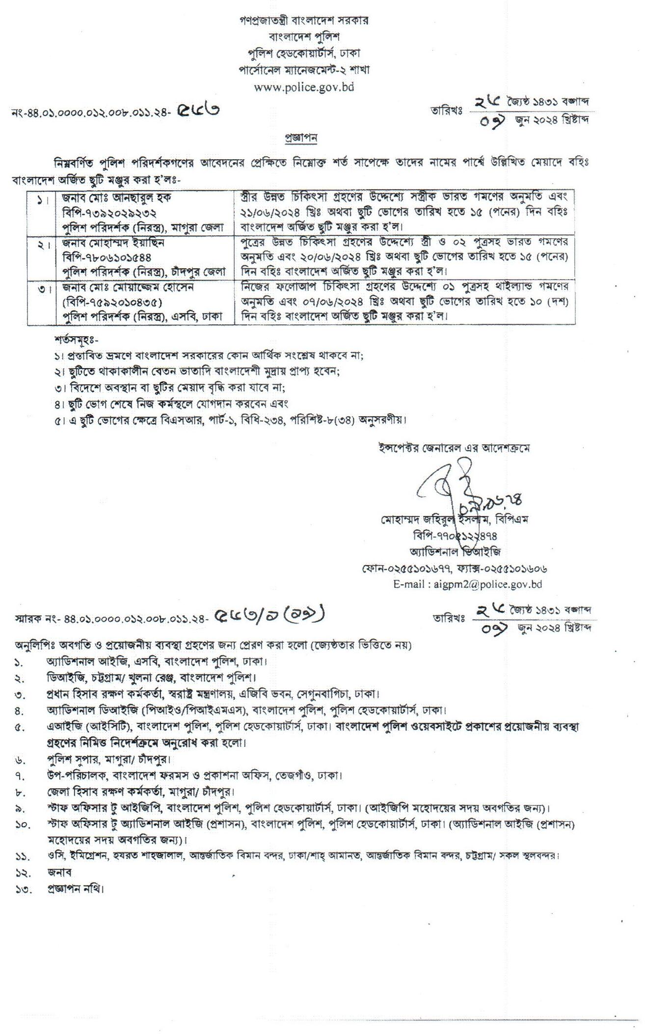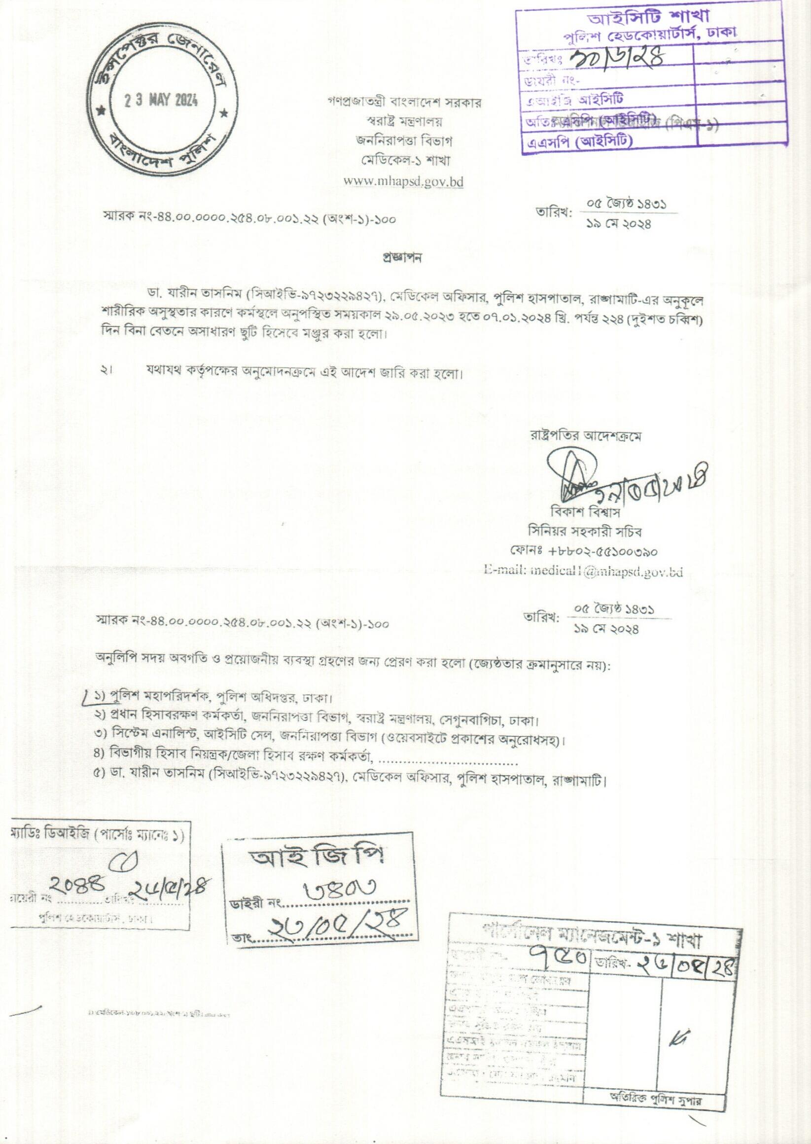 বহিঃ বাংলাদেশ ছুটি, প্রজ্ঞাপন নং- ১০৩৭, তারিখঃ ২৩/০৫/২০২৪ খ্রিঃ।