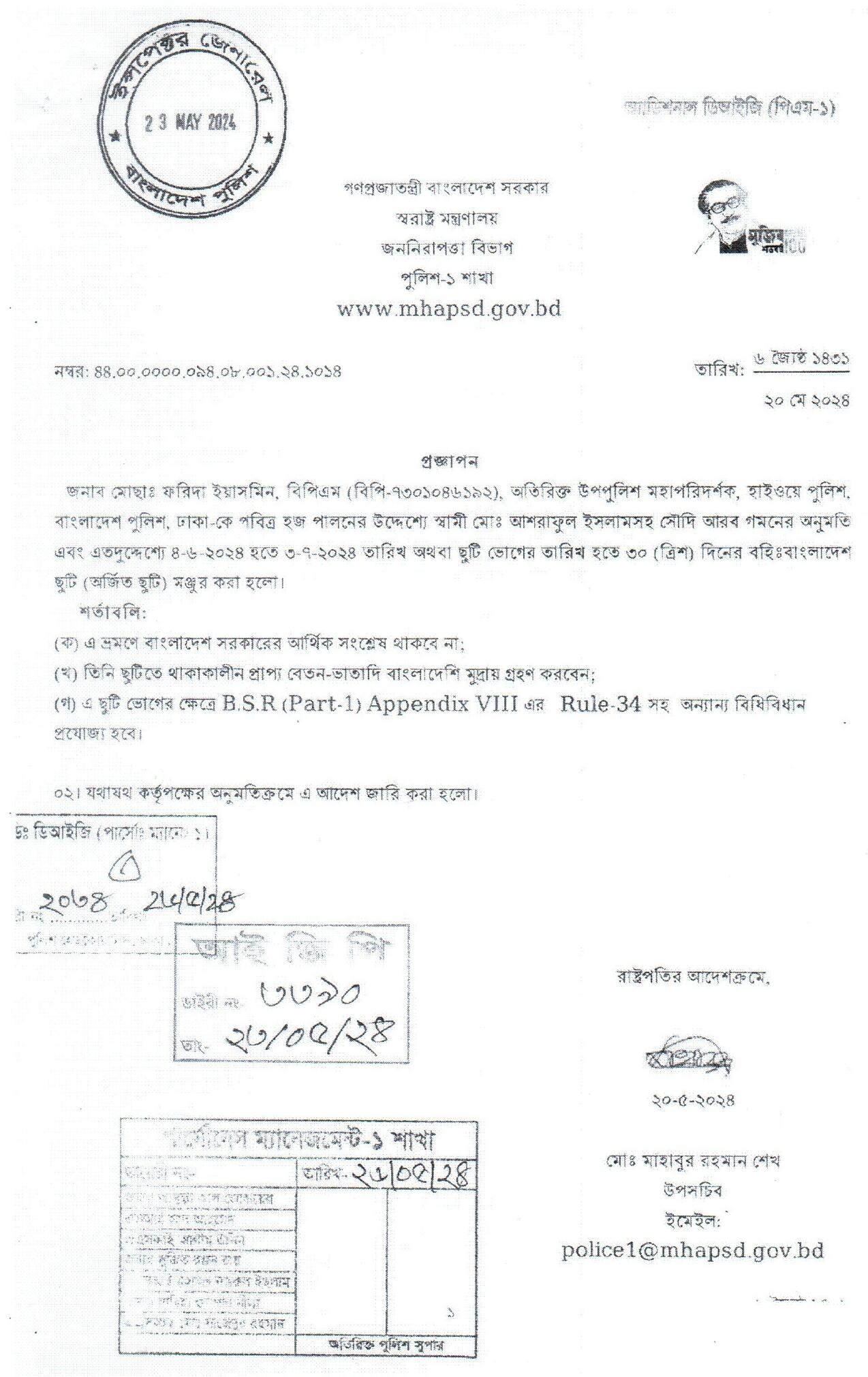 বহিঃ বাংলাদেশ ছুটি, প্রজ্ঞাপন নং- ১০৩০, তারিখঃ ২৩/০৫/২০২৪ খ্রিঃ।