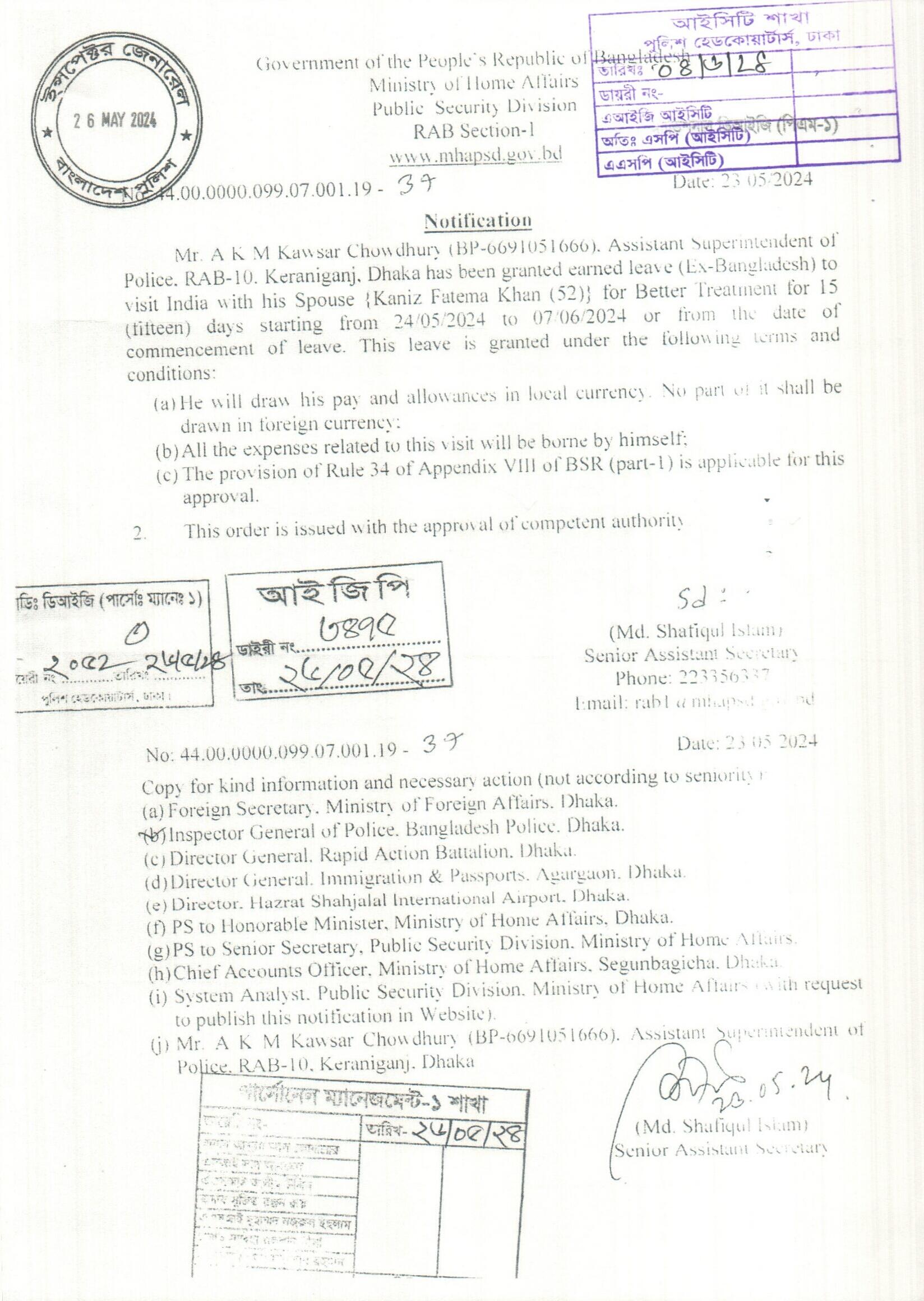 বহিঃ বাংলাদেশ ছুটি, প্রজ্ঞাপন নং- ৩৯, তারিখঃ ২৩/০৫/২০২৪ খ্রিঃ।