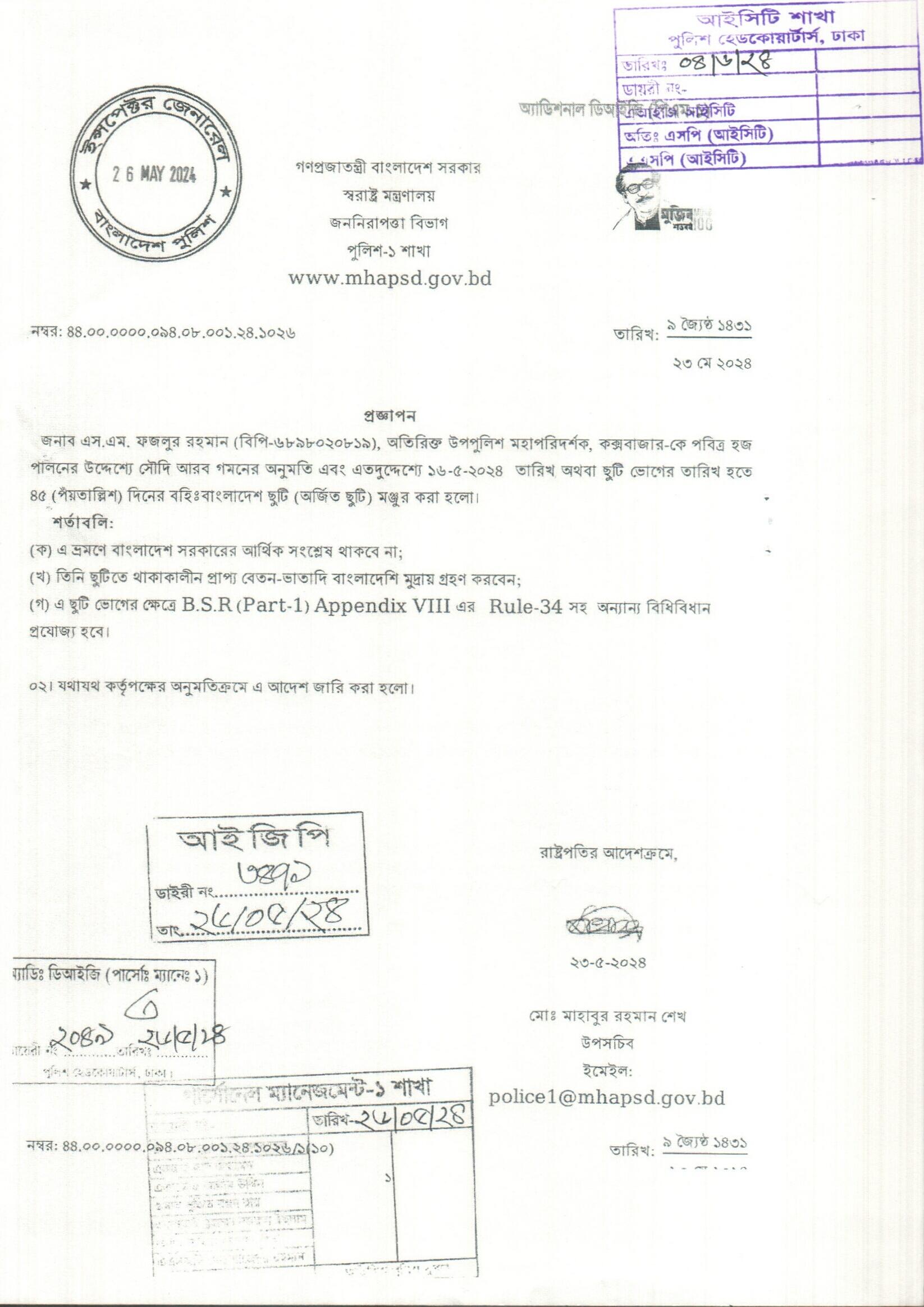 বহিঃ বাংলাদেশ ছুটি, প্রজ্ঞাপন নং- ১০২৬, তারিখঃ ২৩/০৫/২০২৪ খ্রিঃ।