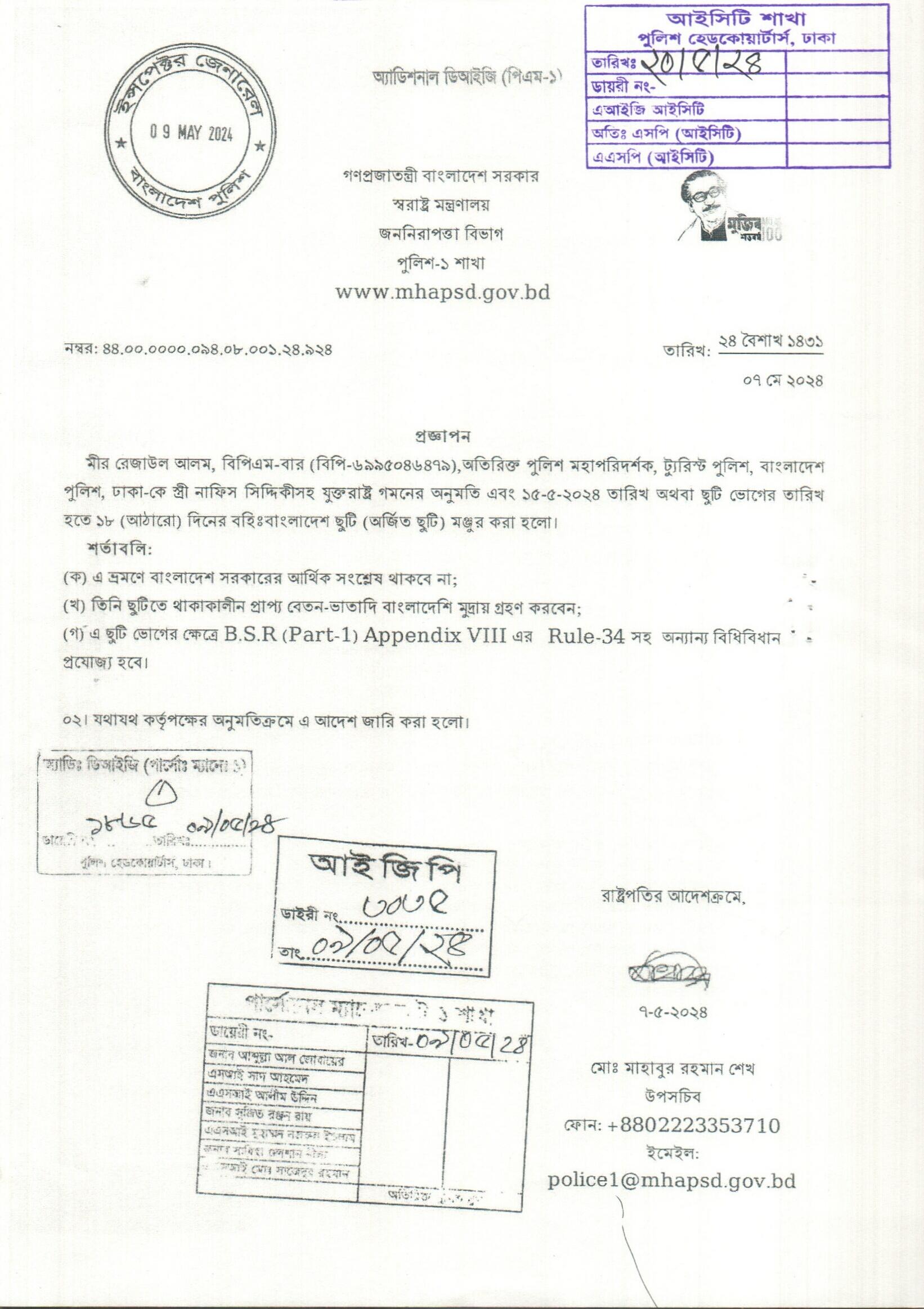 বহিঃ বাংলাদেশ ছুটি, প্রজ্ঞাপন নং- ৯২৫, তারিখঃ ০৭/০৫/২০২৪ খ্রিঃ।