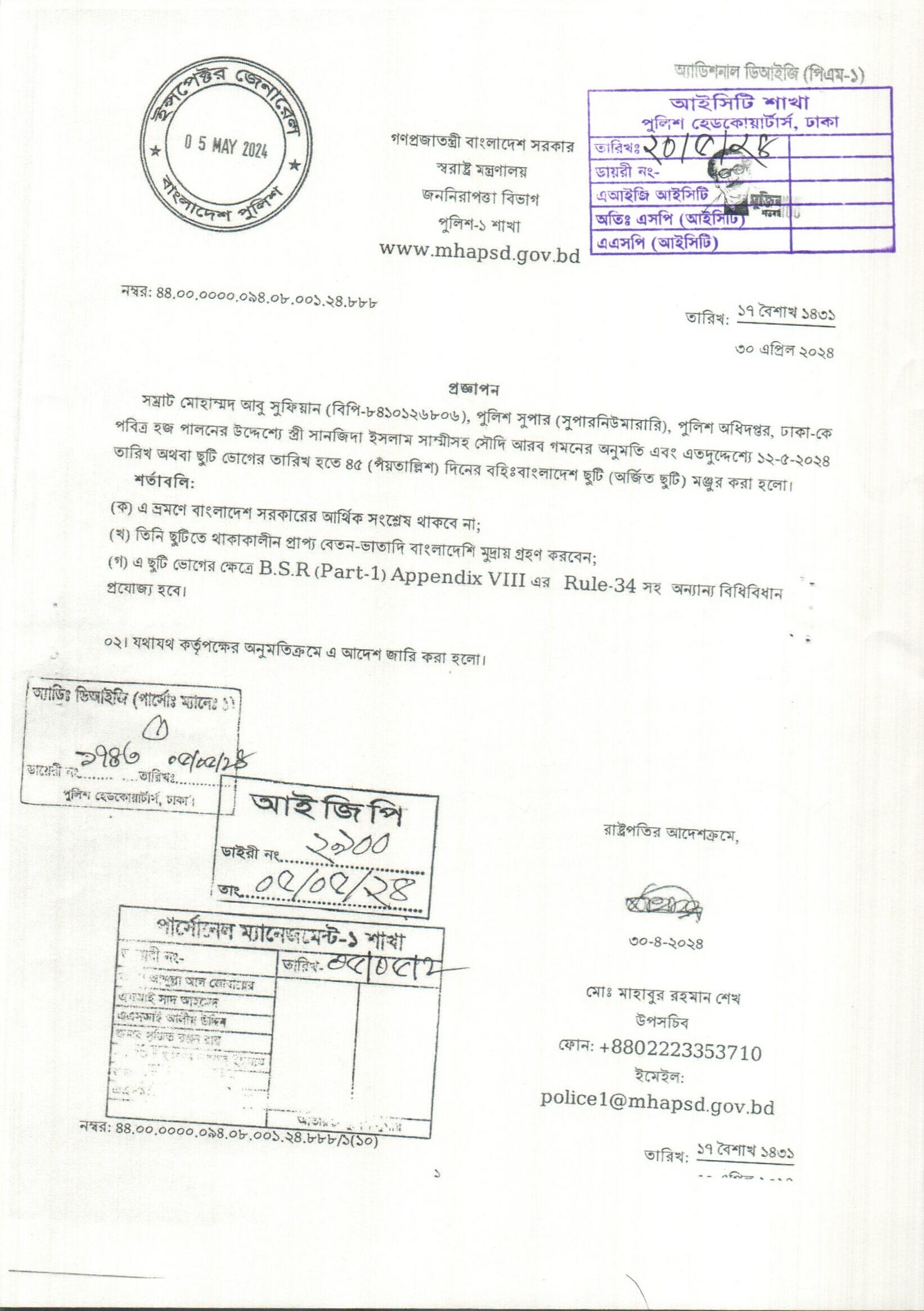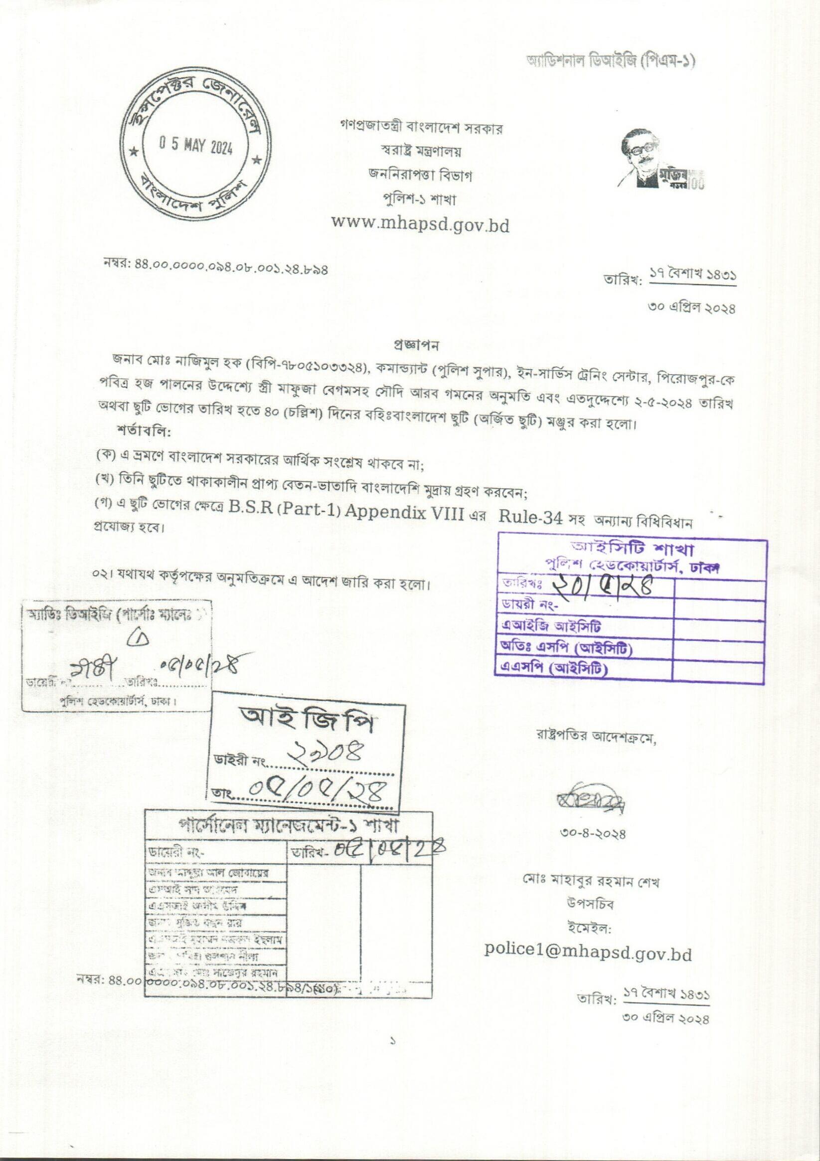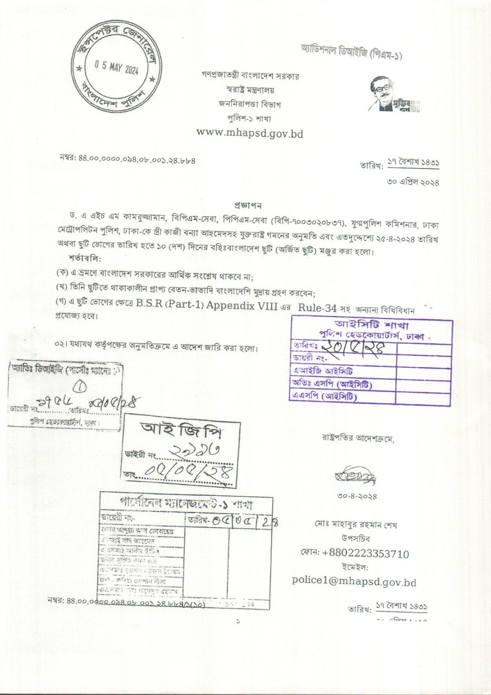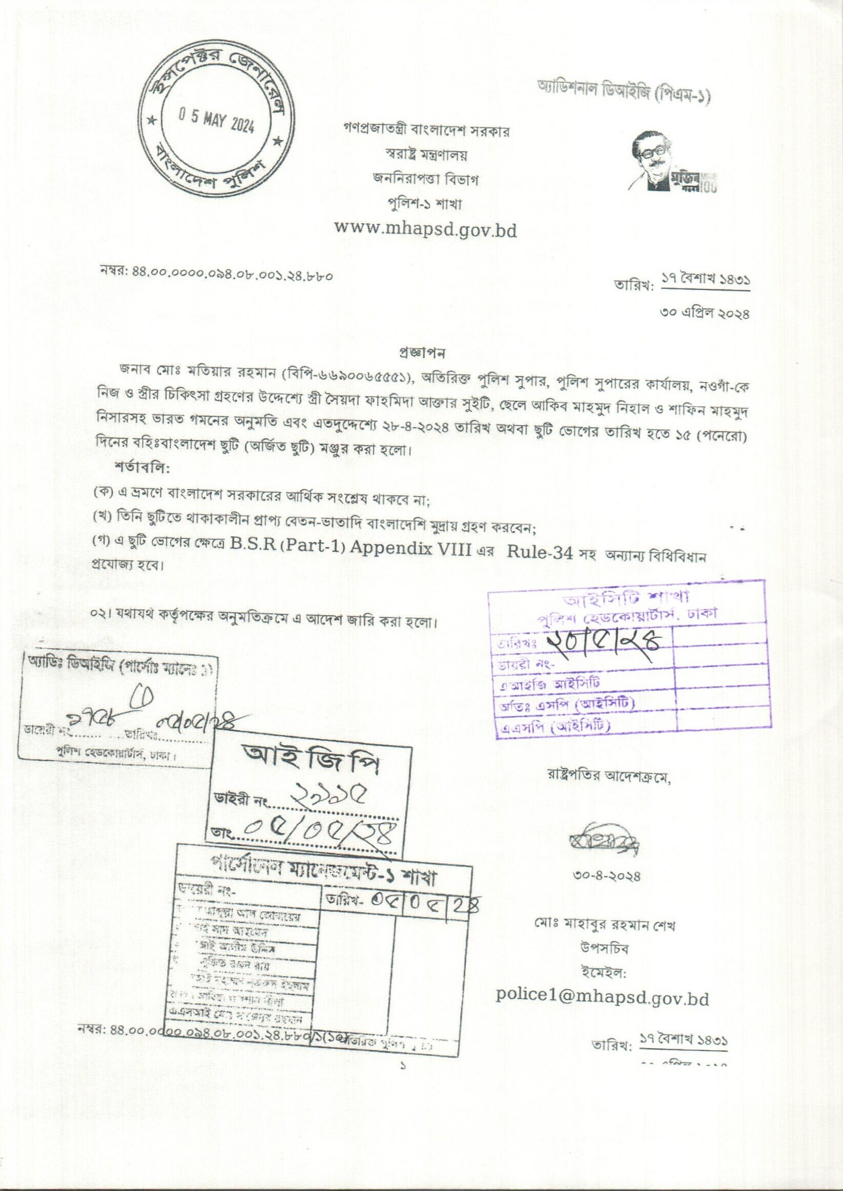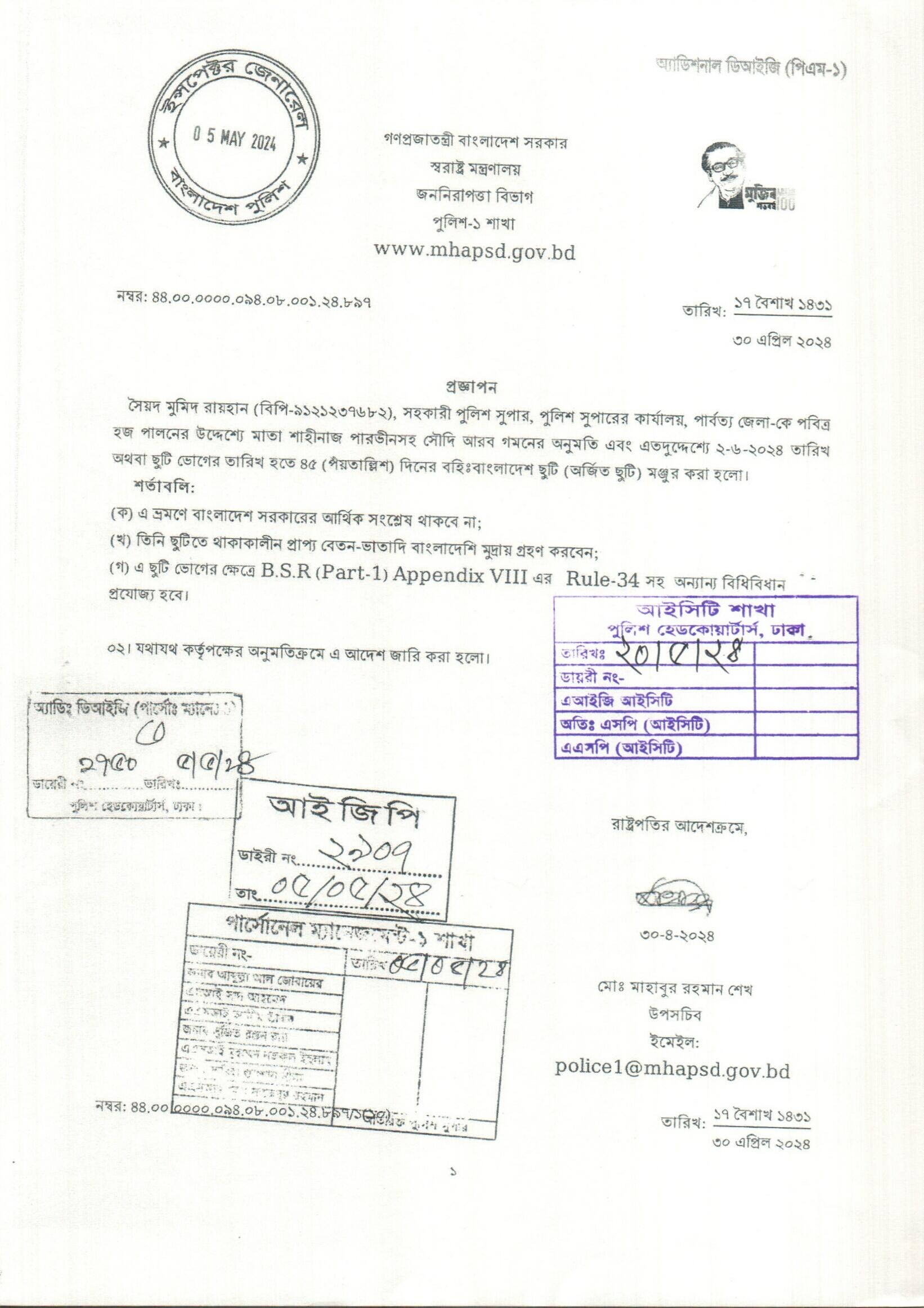 বহিঃ বাংলাদেশ ছুটি, প্রজ্ঞাপন নং- ৮৯৩, তারিখঃ ৩০/০৪/২০২৪ খ্রিঃ।