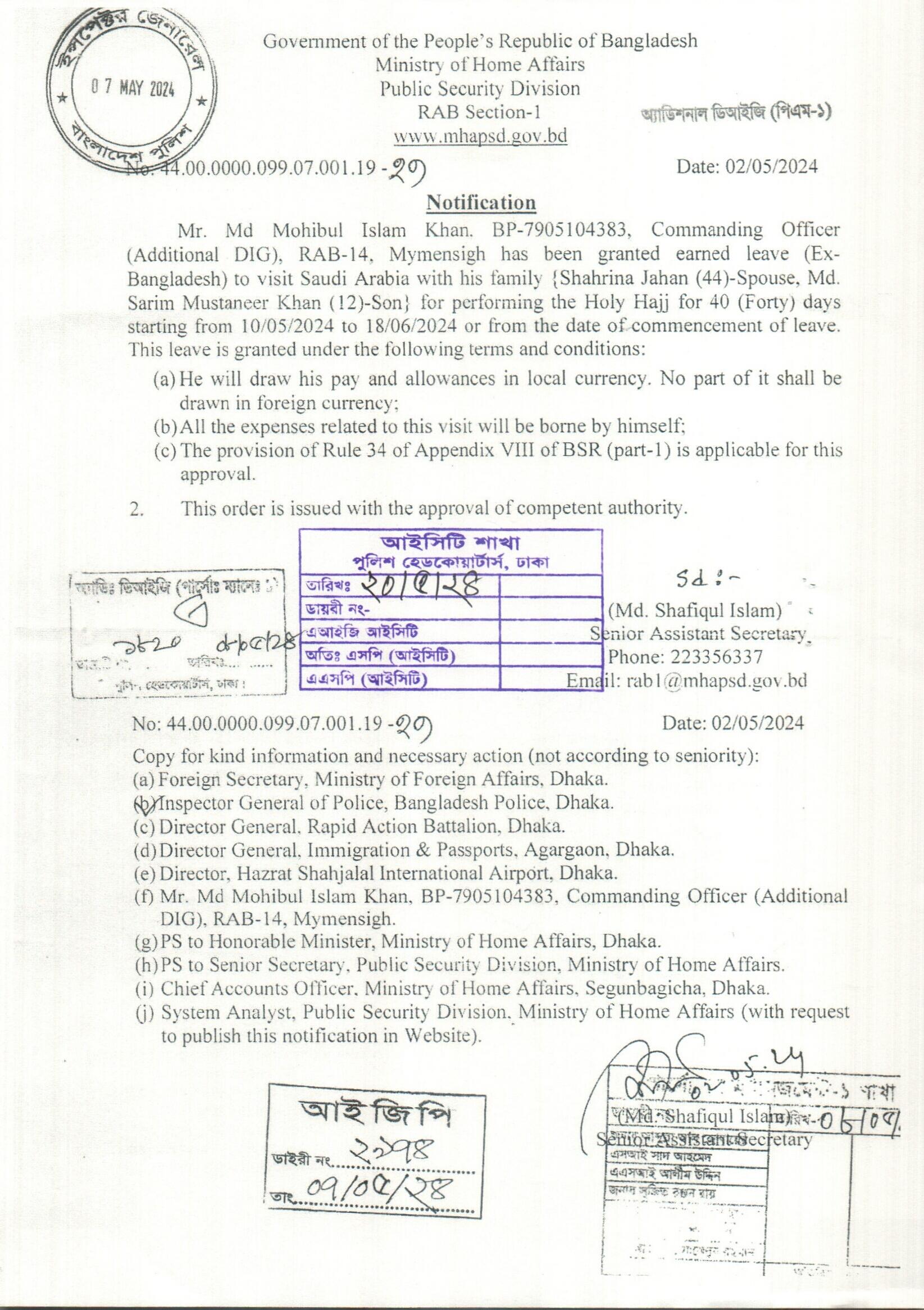 বহিঃ বাংলাদেশ ছুটি, প্রজ্ঞাপন নং- ৯০৫, তারিখঃ ০২/০৫/২০২৪ খ্রিঃ।