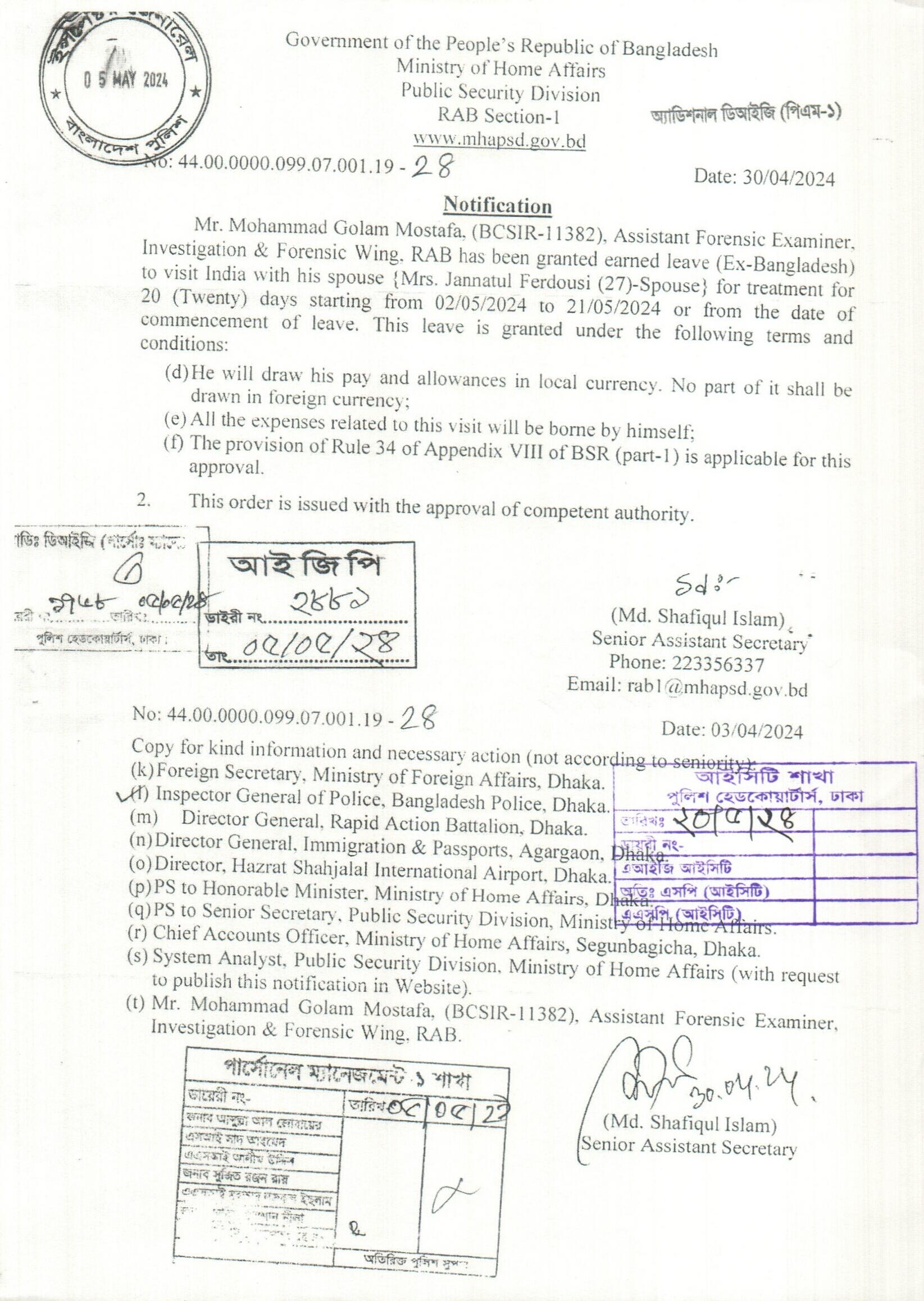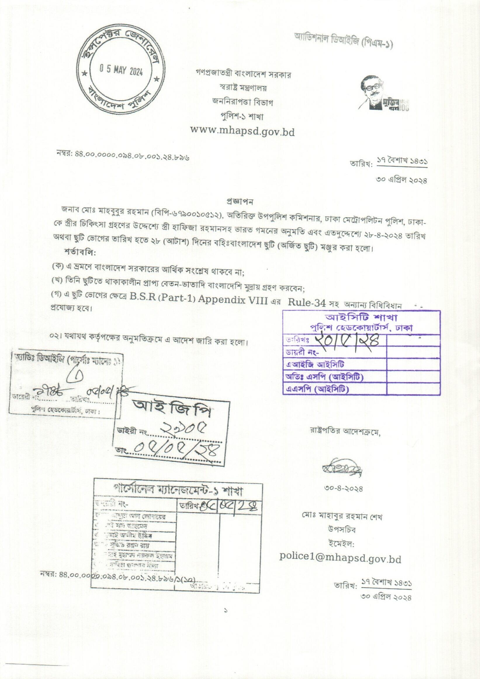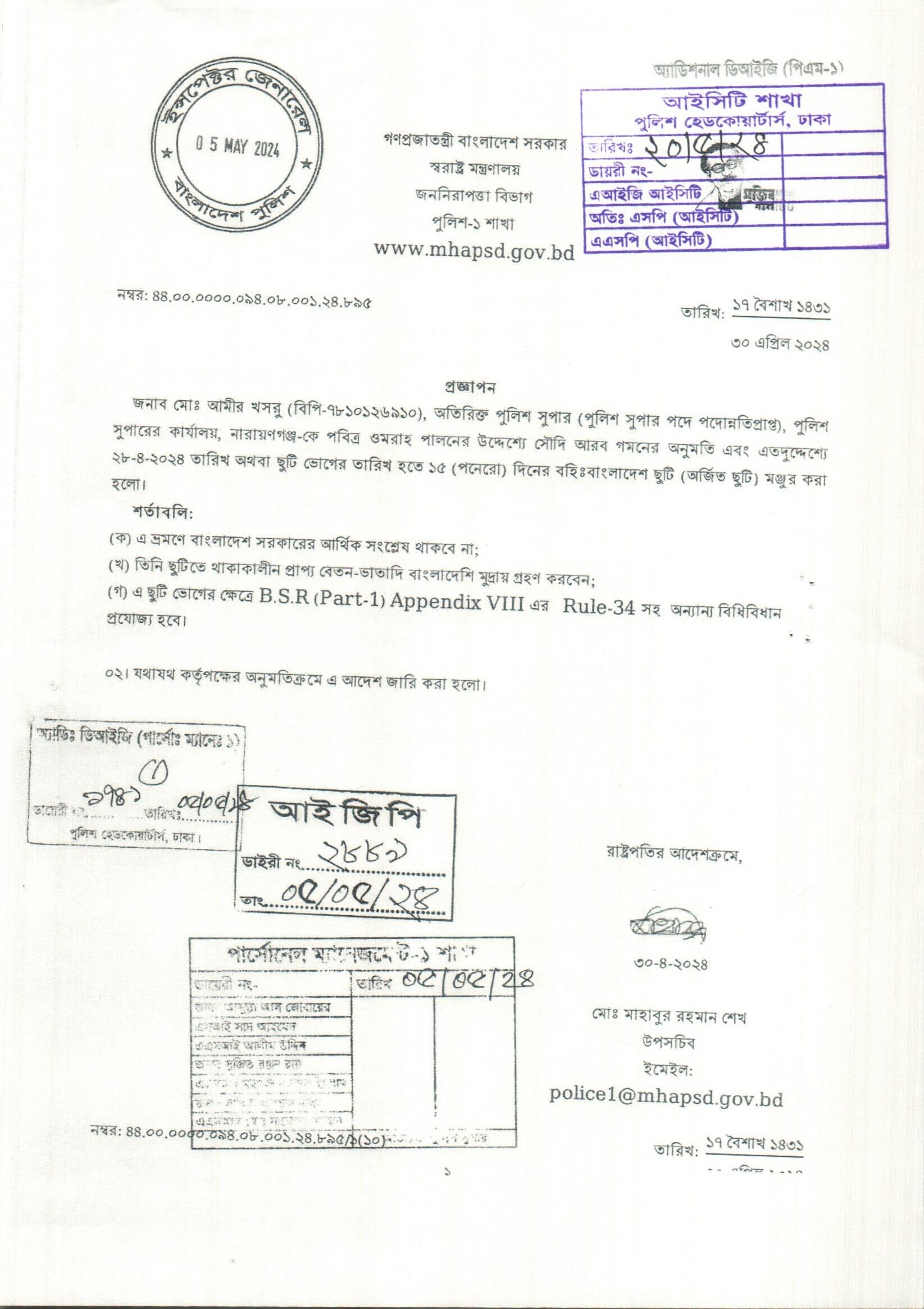 বহিঃ বাংলাদেশ ছুটি, প্রজ্ঞাপন নং- ৮৯৫, তারিখঃ ৩০/০৪/২০২৪ খ্রিঃ।
