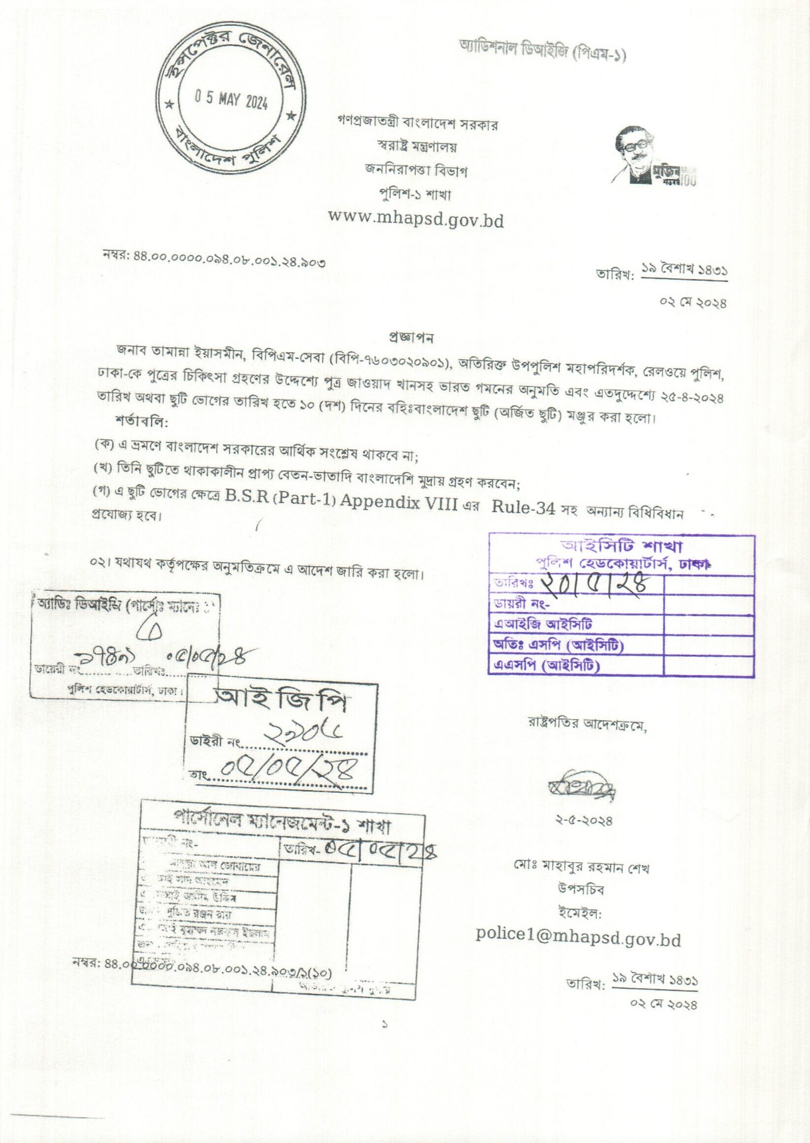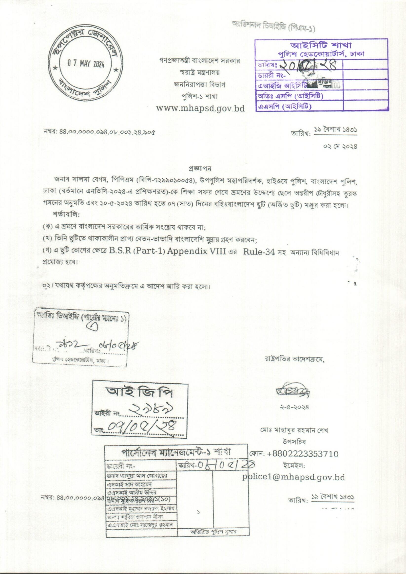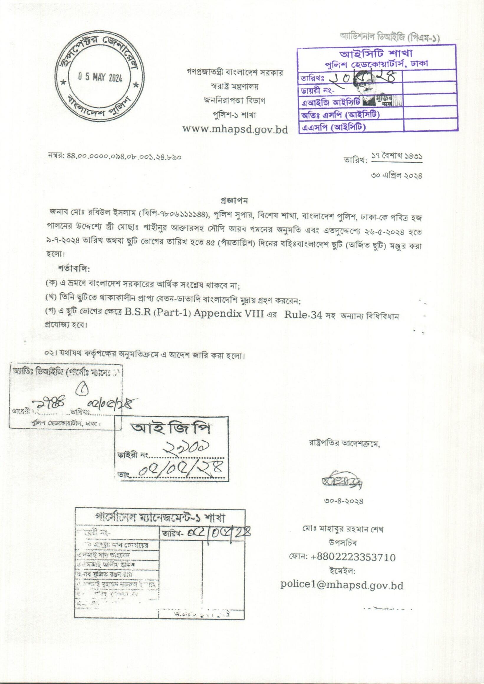 বহিঃ বাংলাদেশ ছুটি, প্রজ্ঞাপন নং- ৮৯০, তারিখঃ ৩০/০৪/২০২৪ খ্রিঃ।