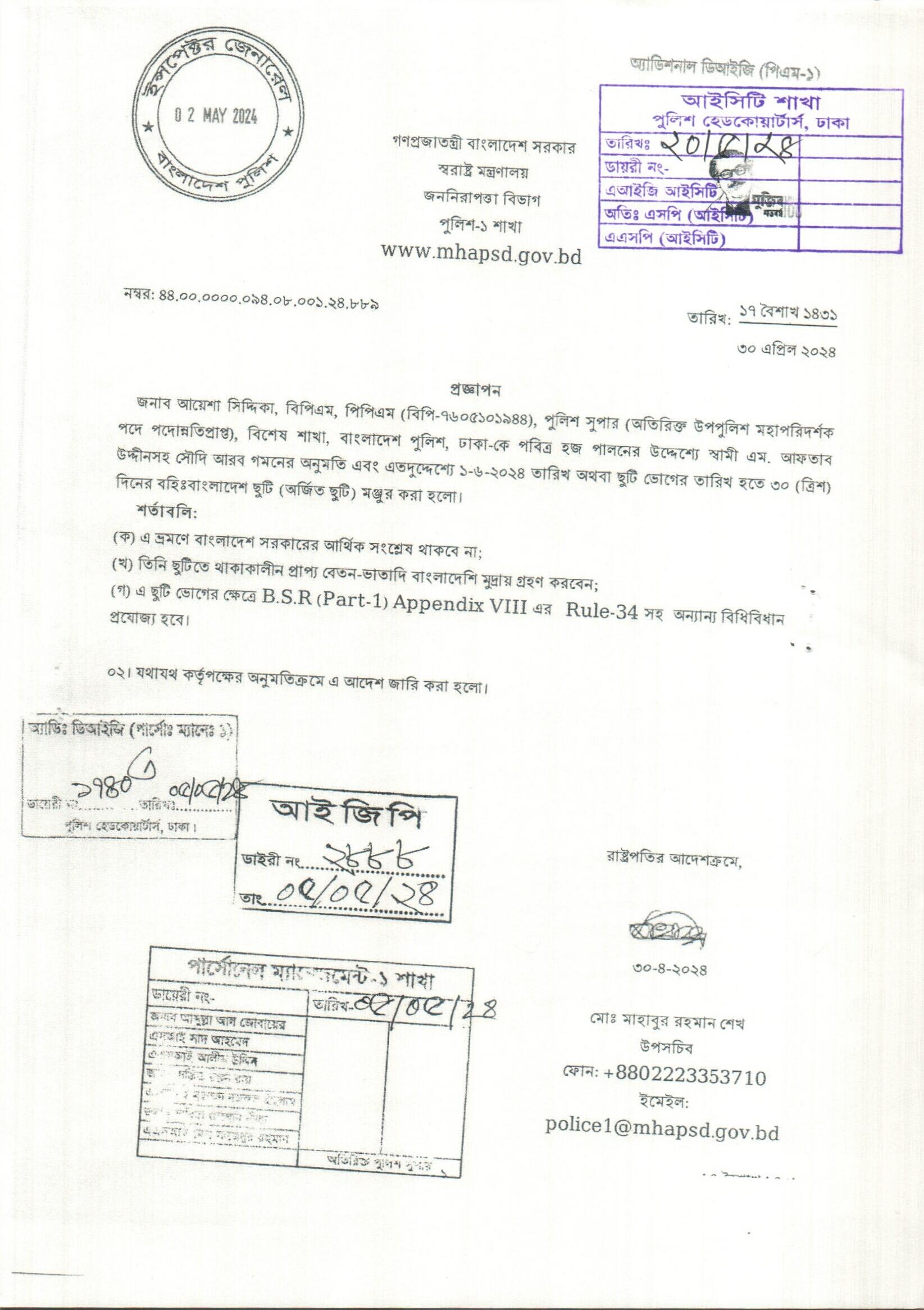 বহিঃ বাংলাদেশ ছুটি, প্রজ্ঞাপন নং- ৮৮৯, তারিখঃ ৩০/০৪/২০২৪ খ্রিঃ।