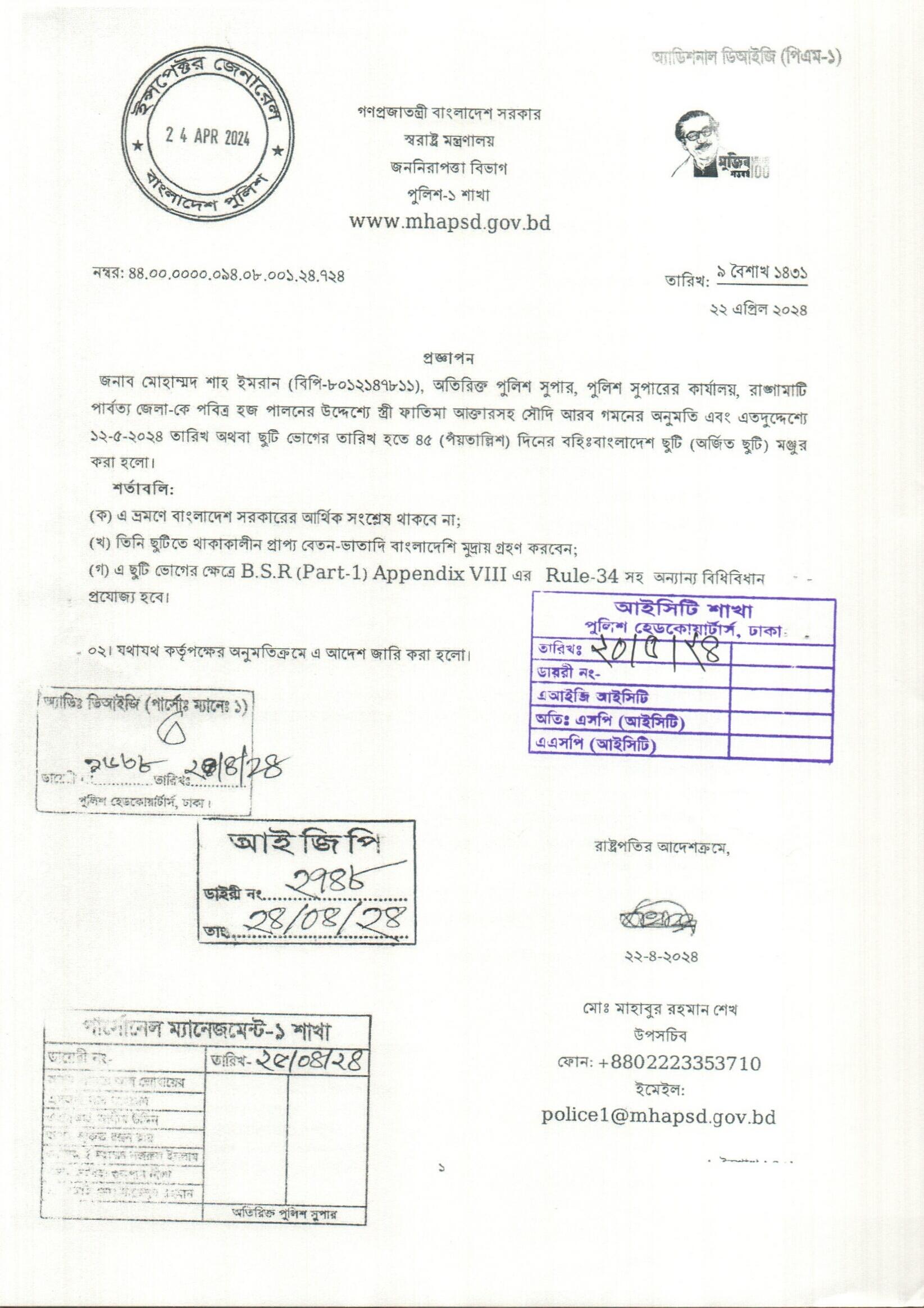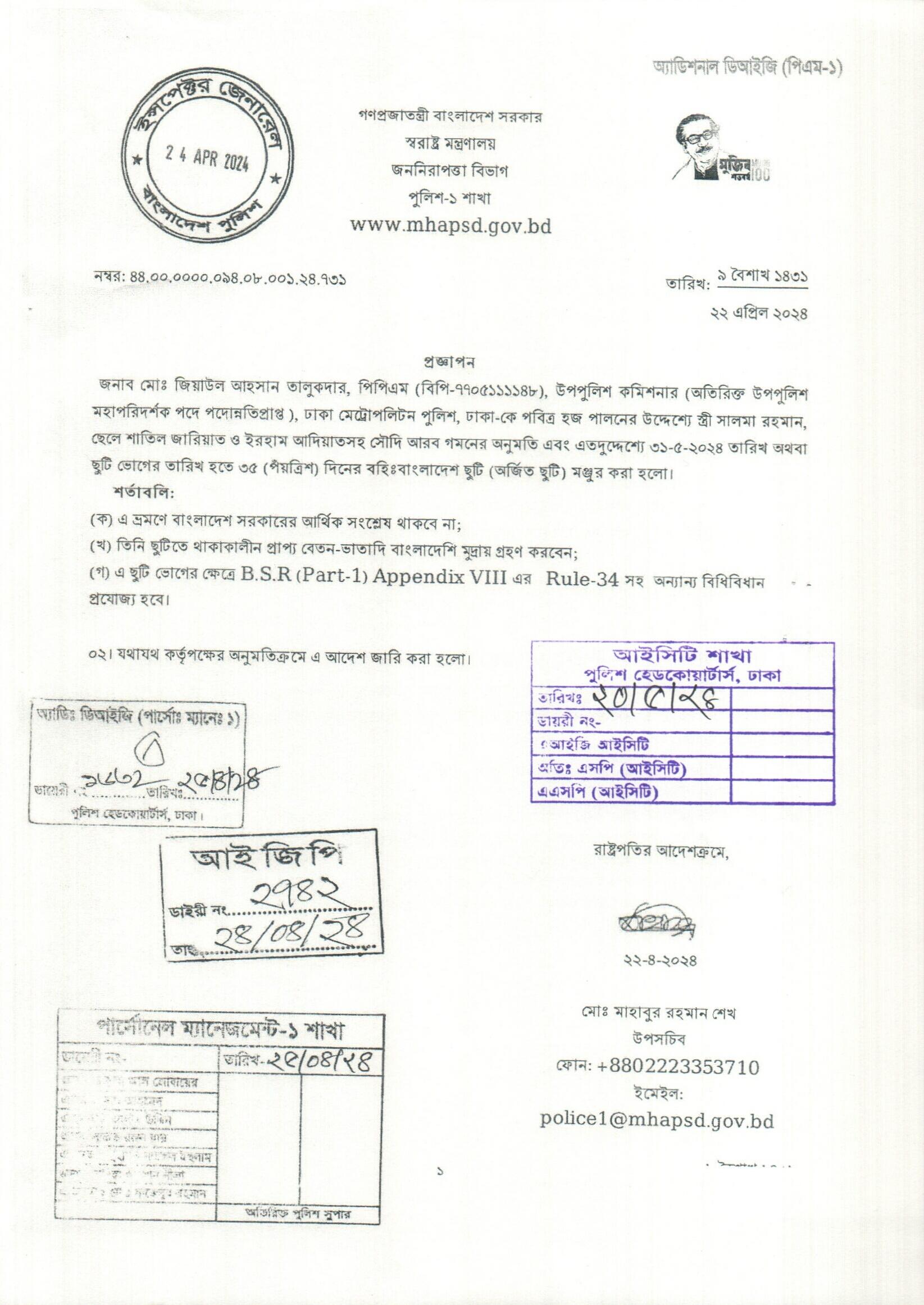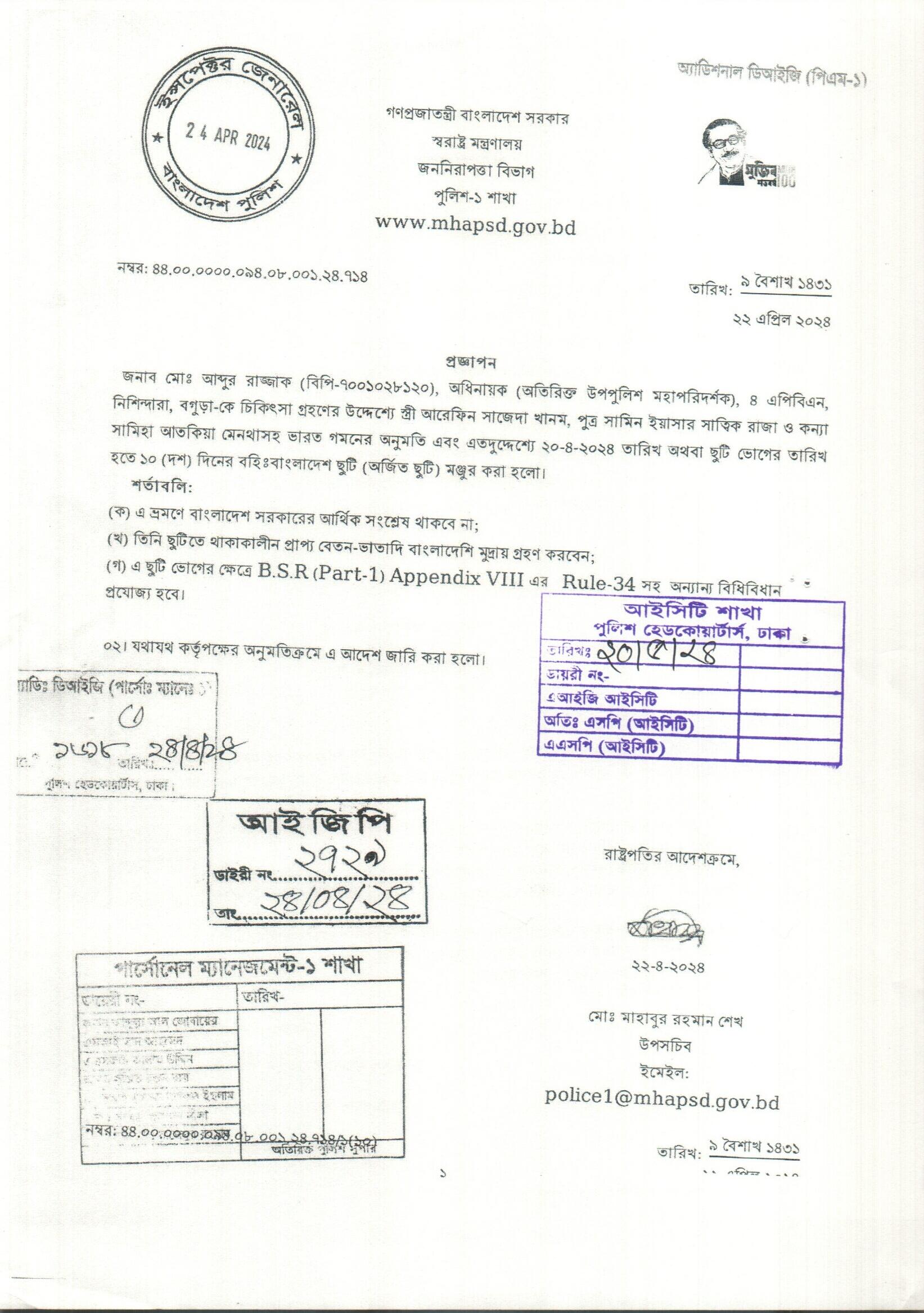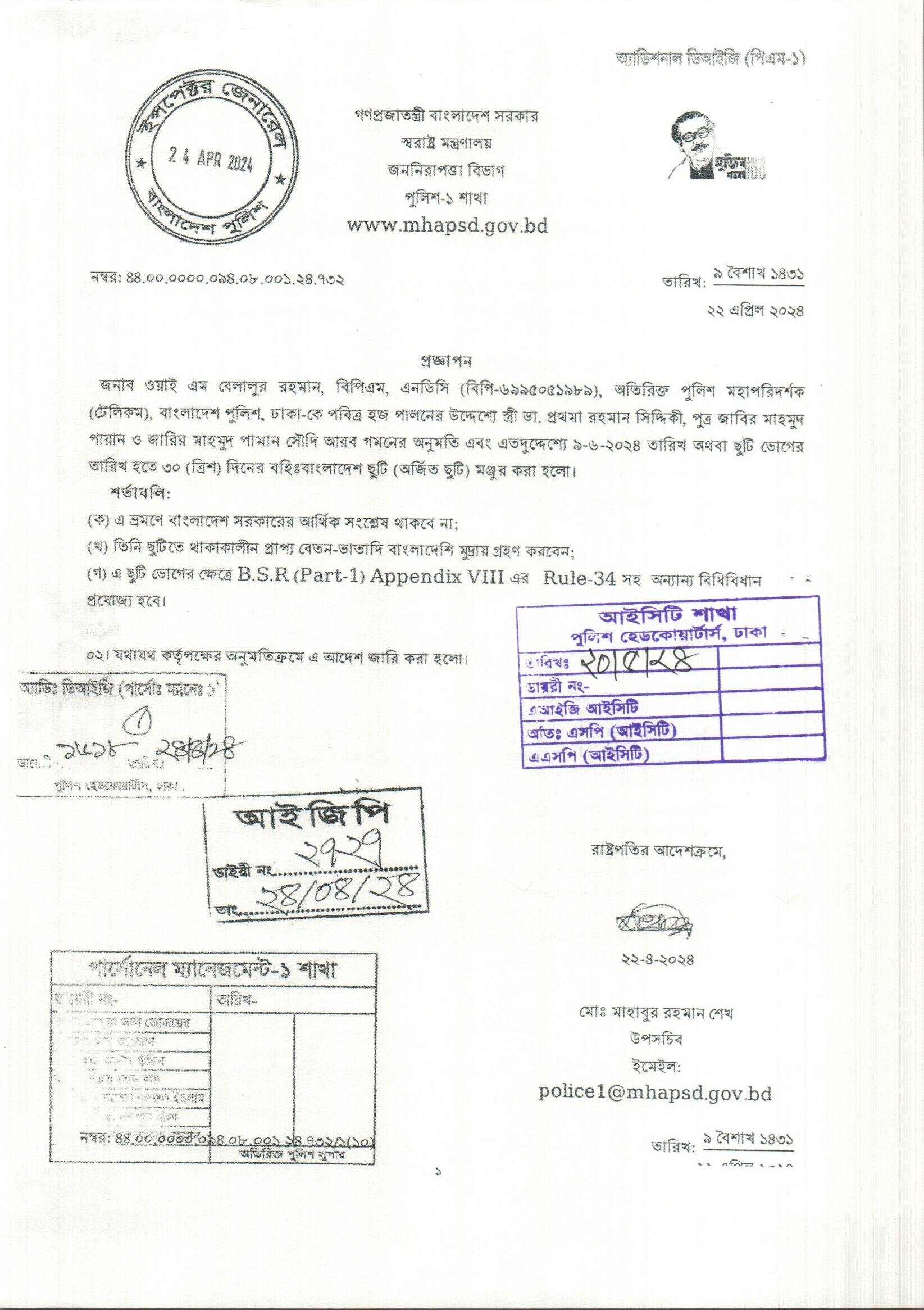 বহিঃ বাংলাদেশ ছুটি, প্রজ্ঞাপন নং- ৭২২, তারিখঃ ২২/০৪/২০২৪ খ্রিঃ।