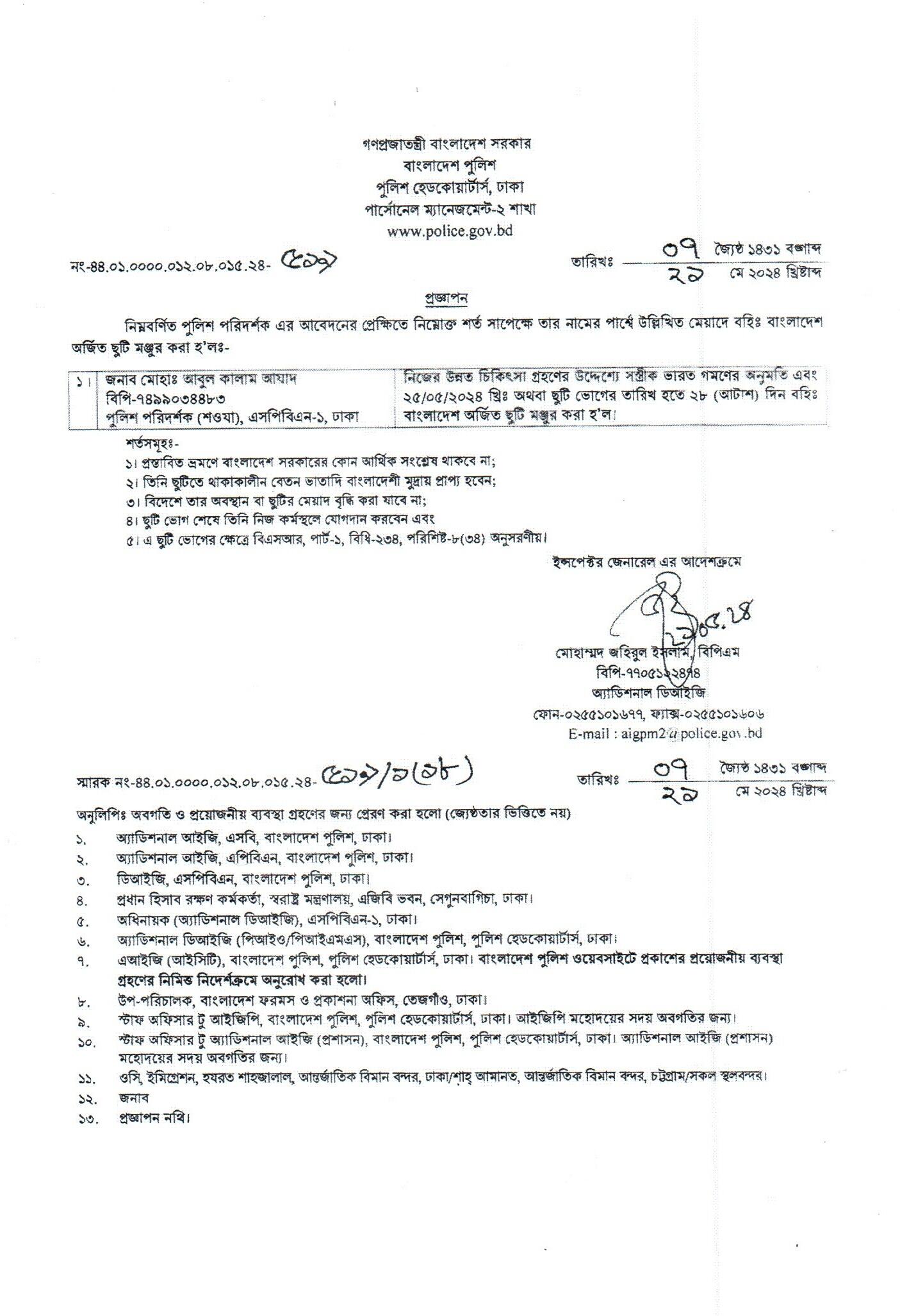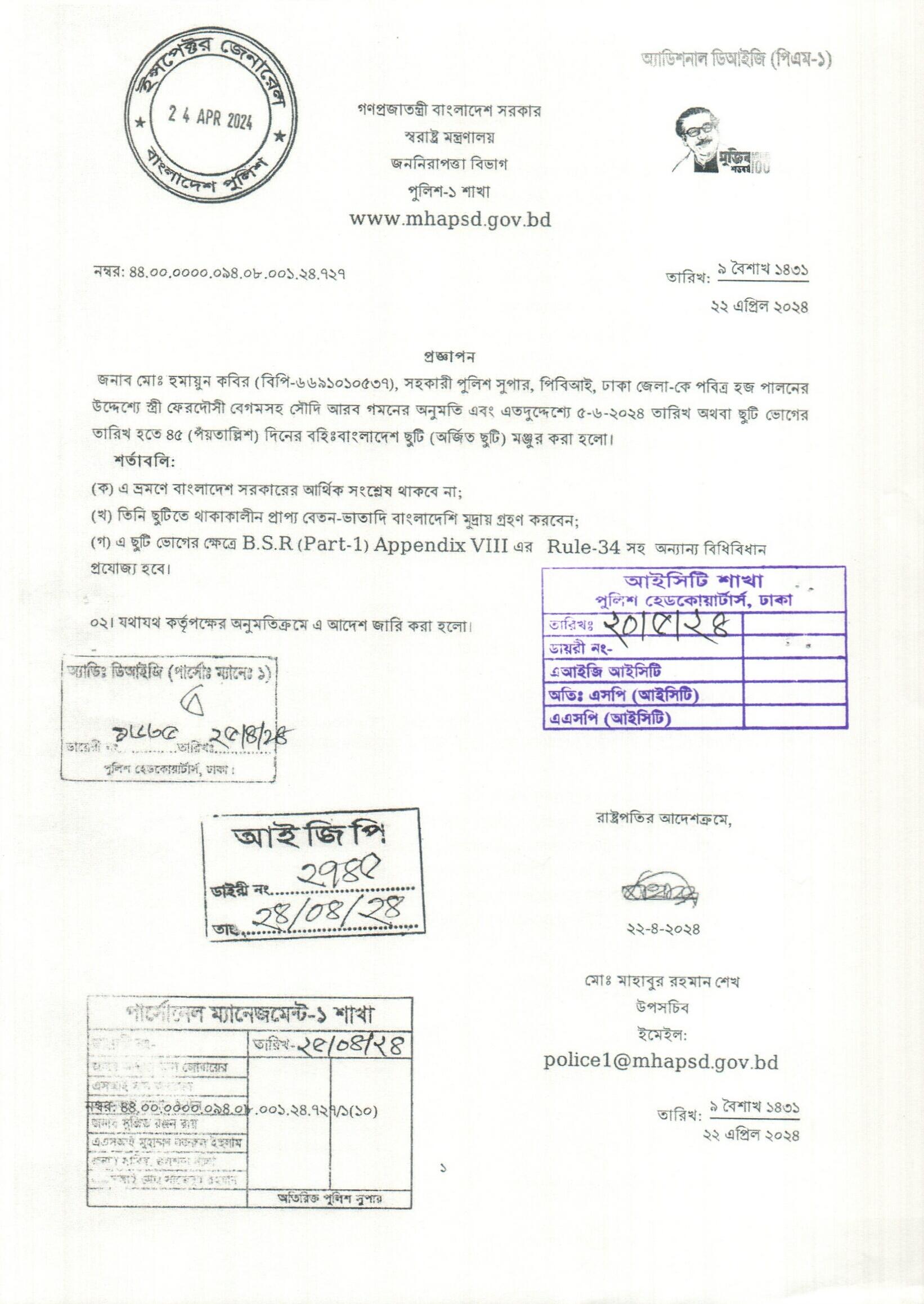 বহিঃ বাংলাদেশ ছুটি, প্রজ্ঞাপন নং- ৭৩৪, তারিখঃ ২২/০৪/২০২৪ খ্রিঃ।