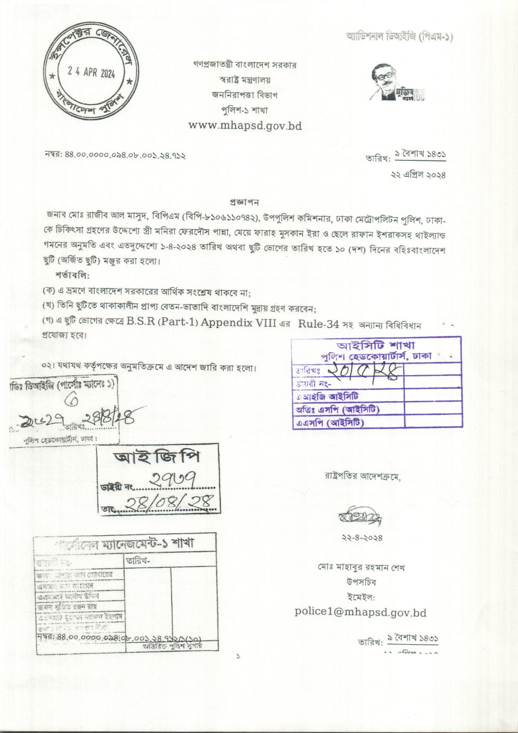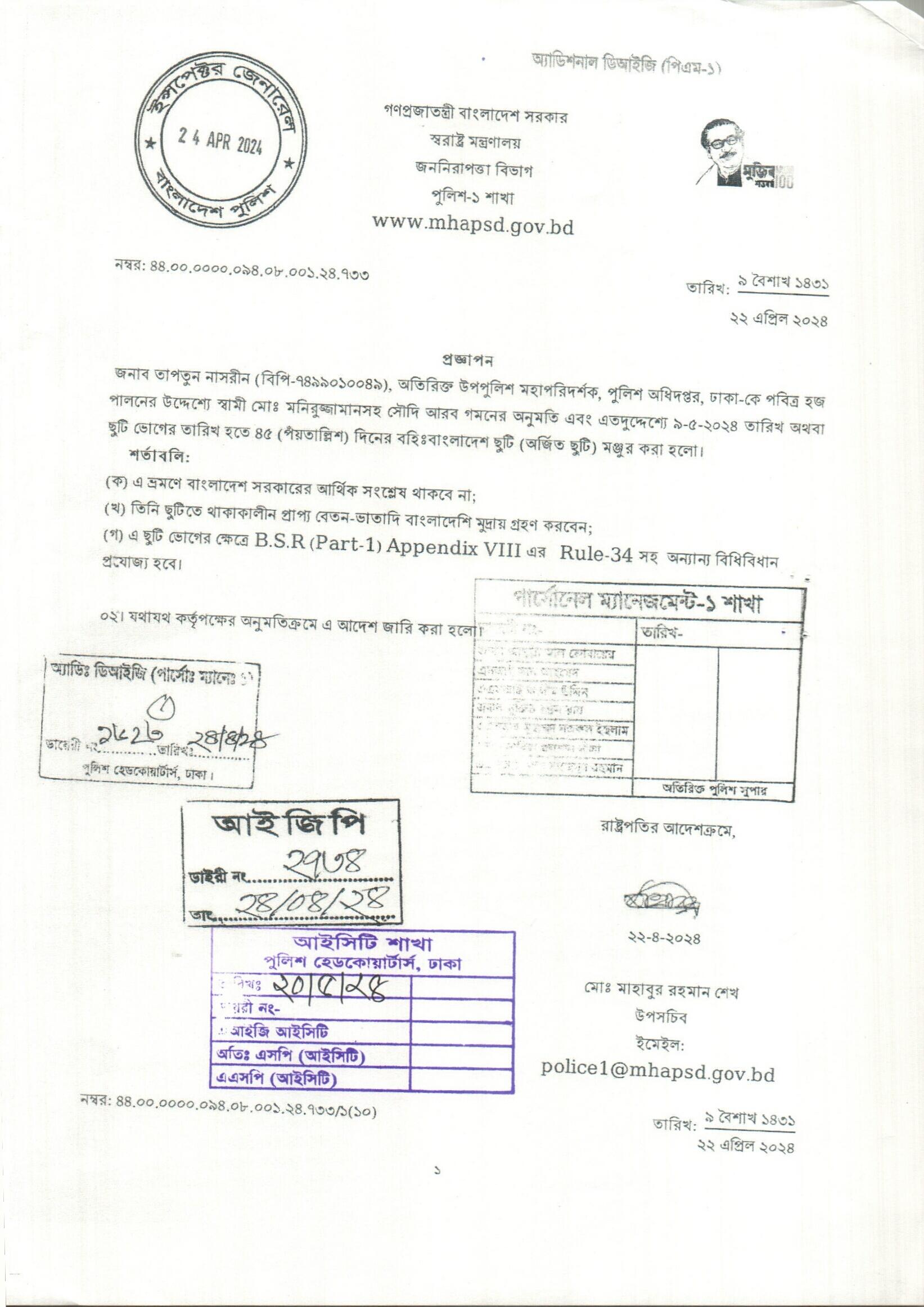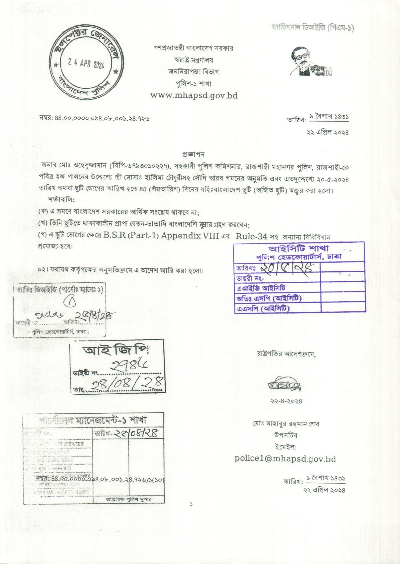বহিঃ বাংলাদেশ ছুটি, প্রজ্ঞাপন নং- ৭৩১, তারিখঃ ২২/০৪/২০২৪ খ্রিঃ।