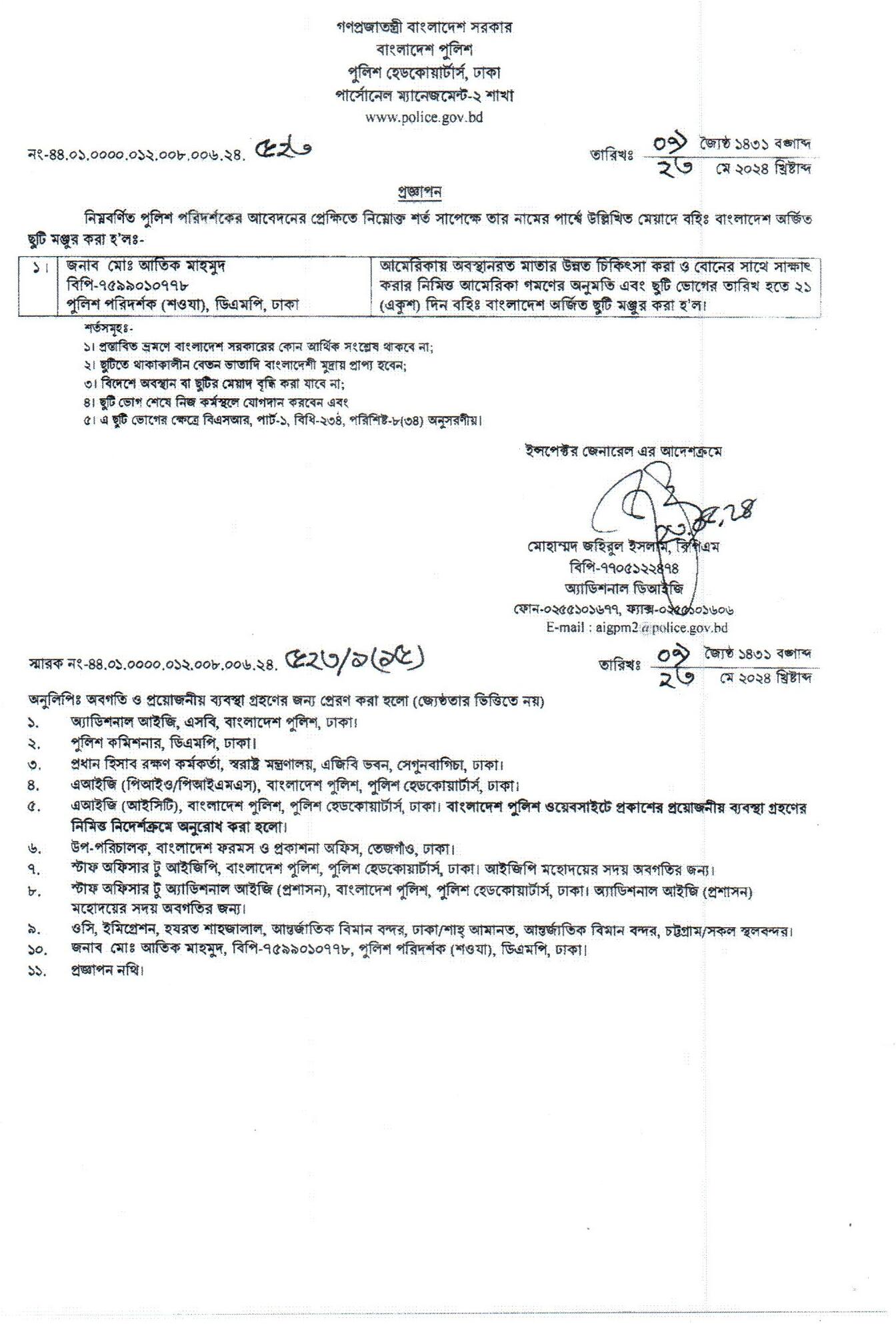 বহিঃ বাংলাদেশ ছুটি, প্রজ্ঞাপন নং- ৫২৩, তারিখঃ ২১/০৫/২০২৪ খ্রিঃ।