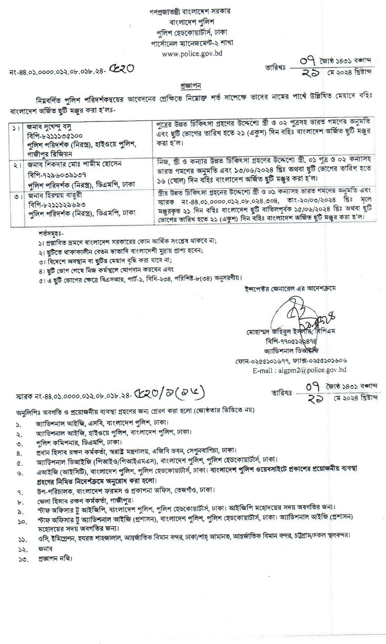 বহিঃ বাংলাদেশ ছুটি, প্রজ্ঞাপন নং- ৫২০, তারিখঃ ২১/০৫/২০২৪ খ্রিঃ।