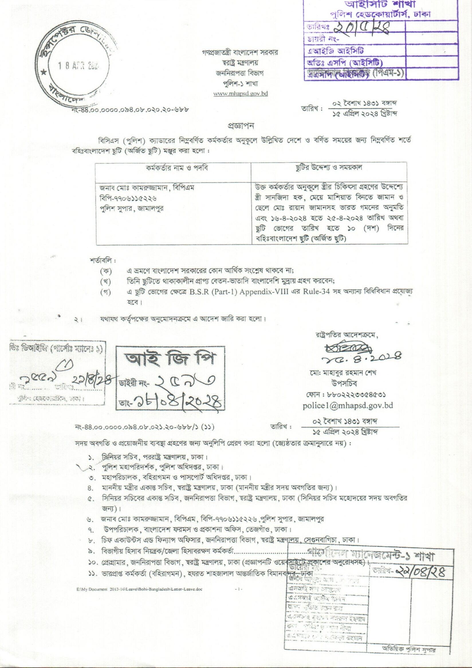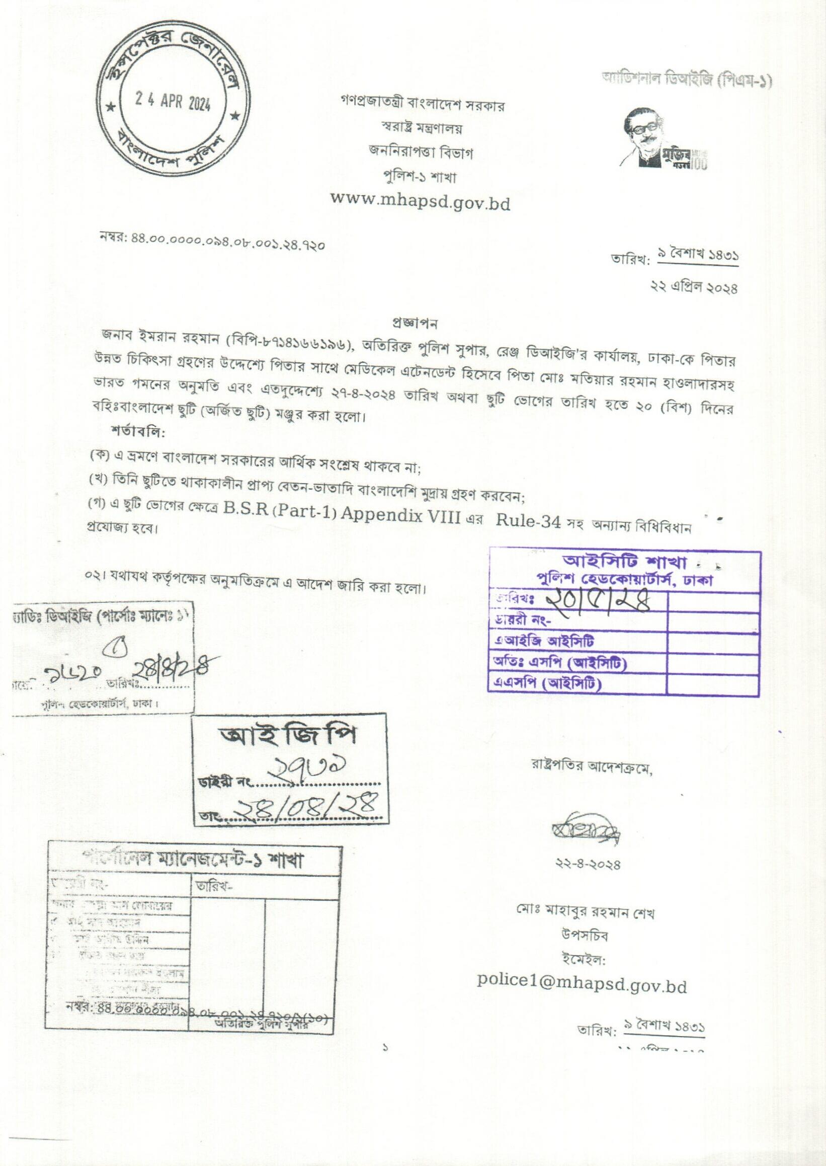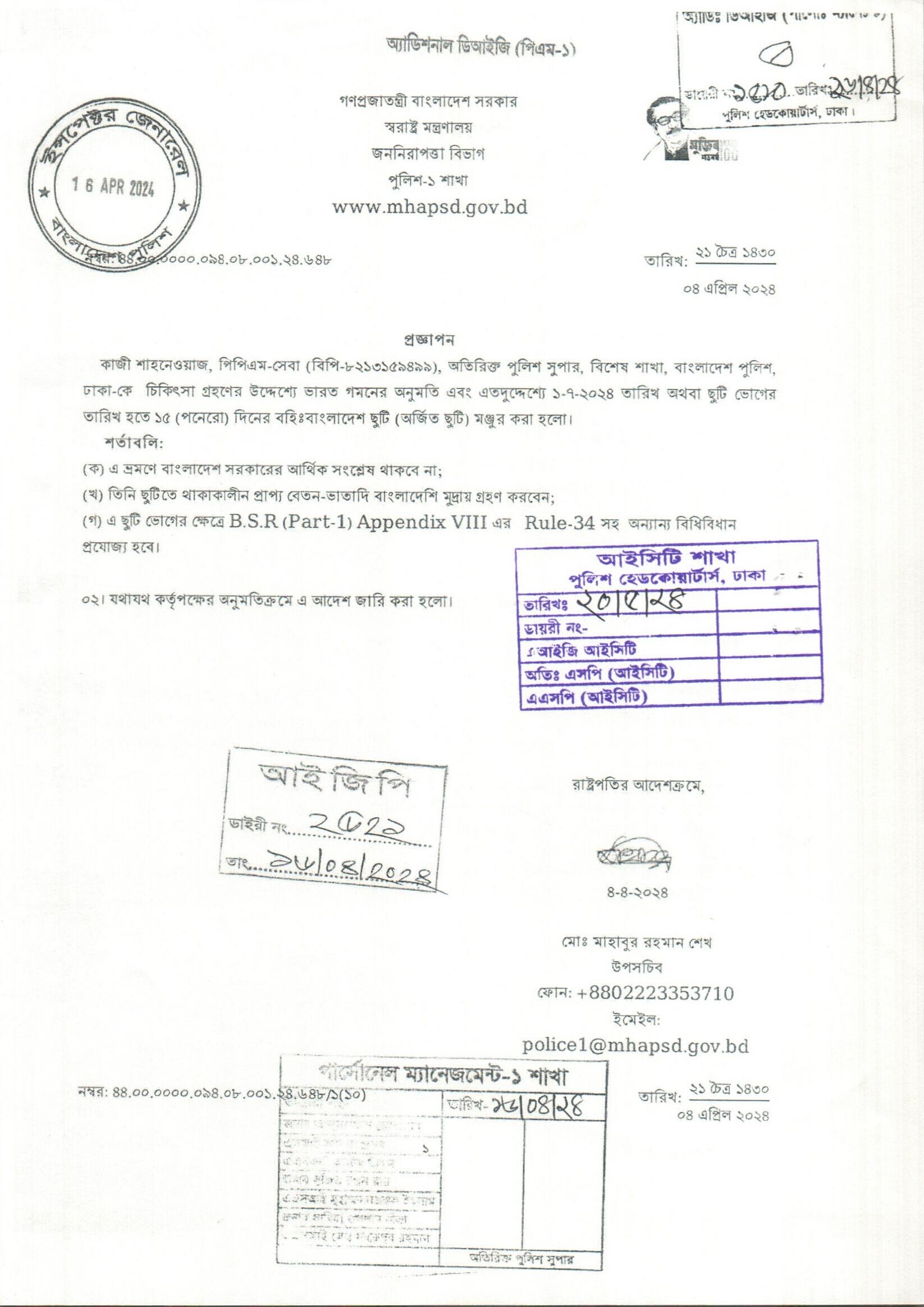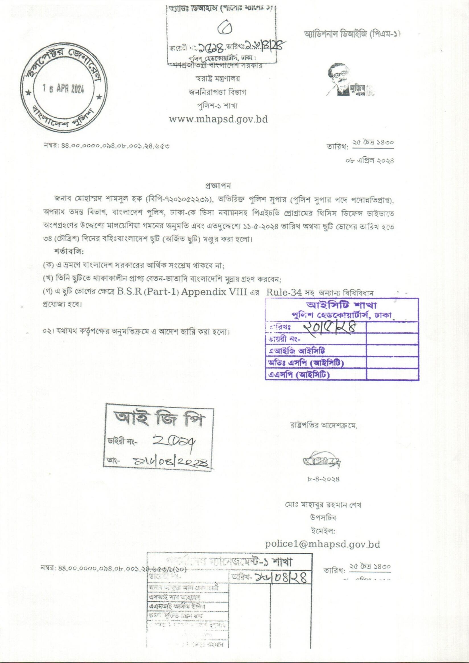 বহিঃ বাংলাদেশ ছুটি, প্রজ্ঞাপন নং- ৭২১, তারিখঃ ২২/০৪/২০২৪ খ্রিঃ।