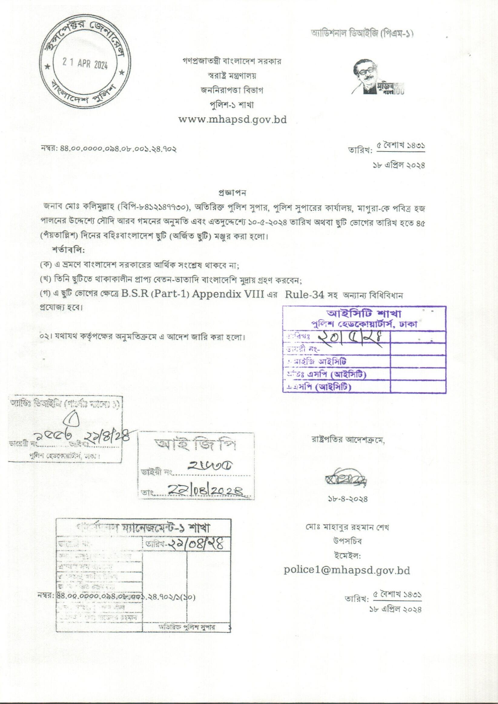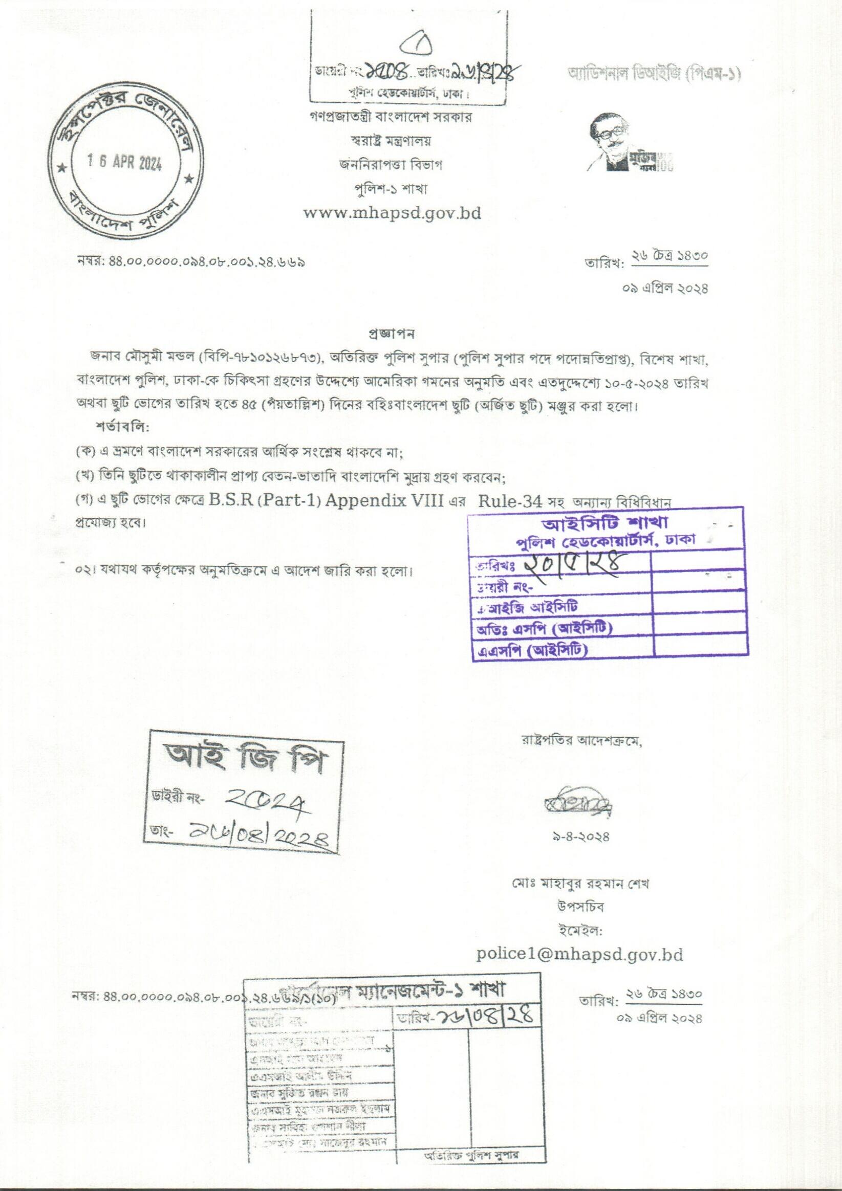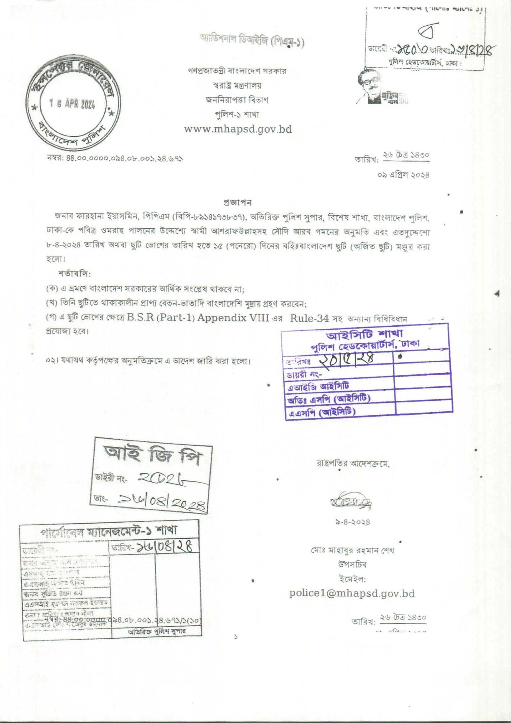 বহিঃ বাংলাদেশ ছুটি, প্রজ্ঞাপন নং- ৭১, তারিখঃ ০৯/০৪/২০২৪ খ্রিঃ।
