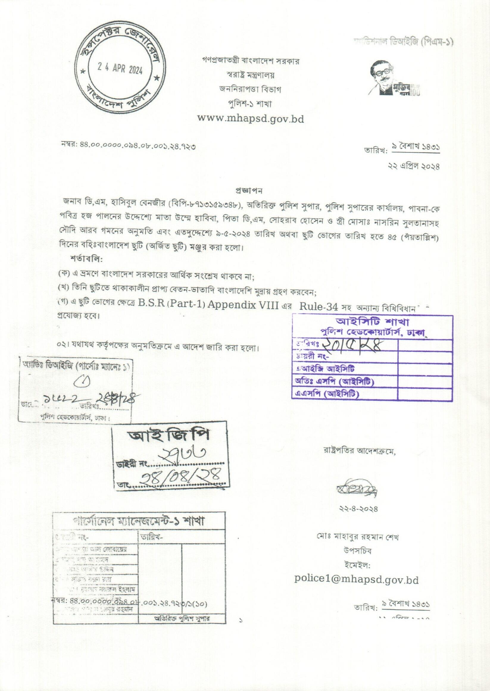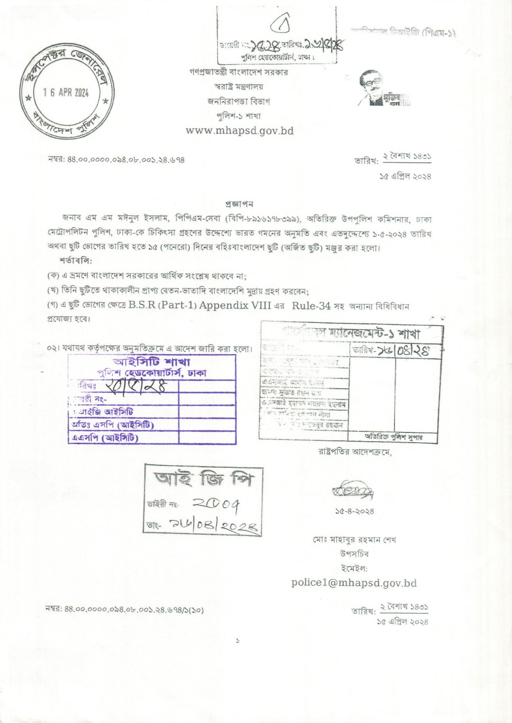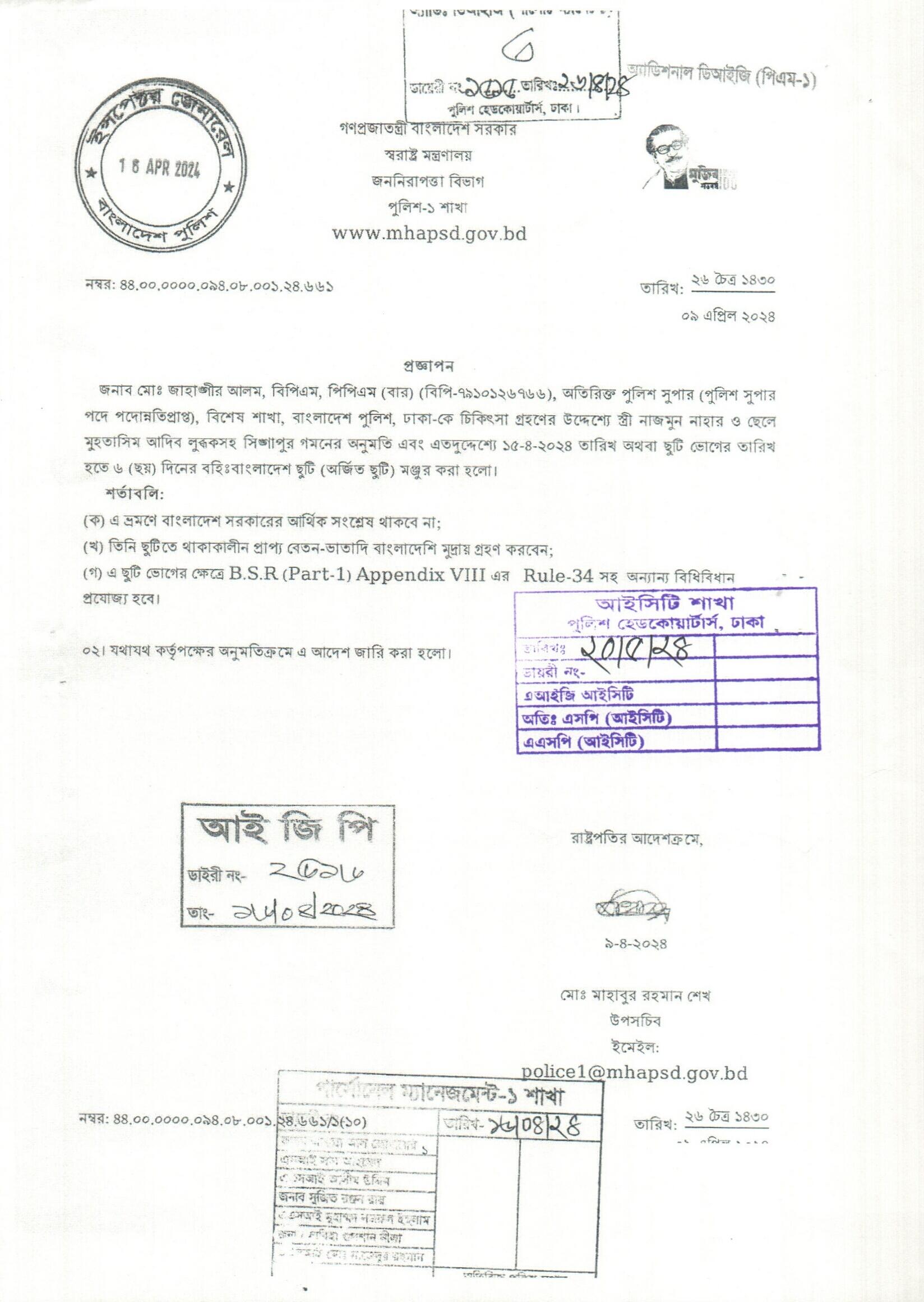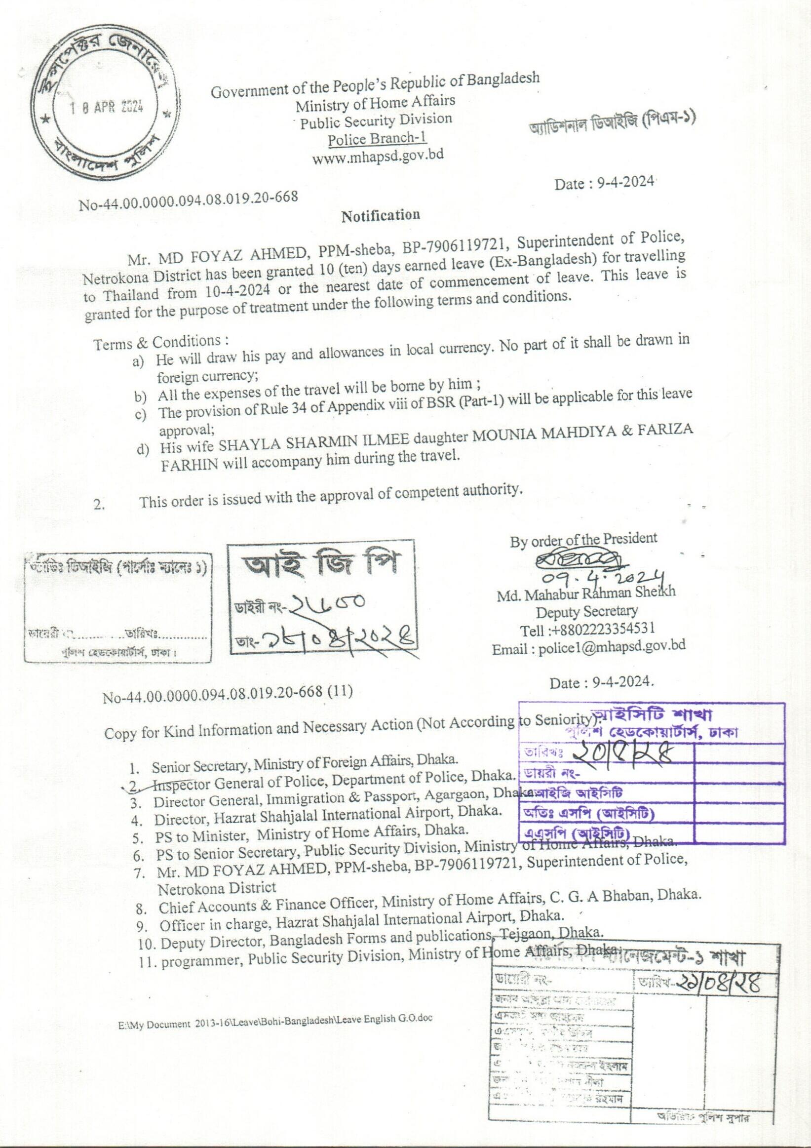 বহিঃ বাংলাদেশ ছুটি, প্রজ্ঞাপন নং- ৬৬৯, তারিখঃ ০৯/০৪/২০২৪ খ্রিঃ।