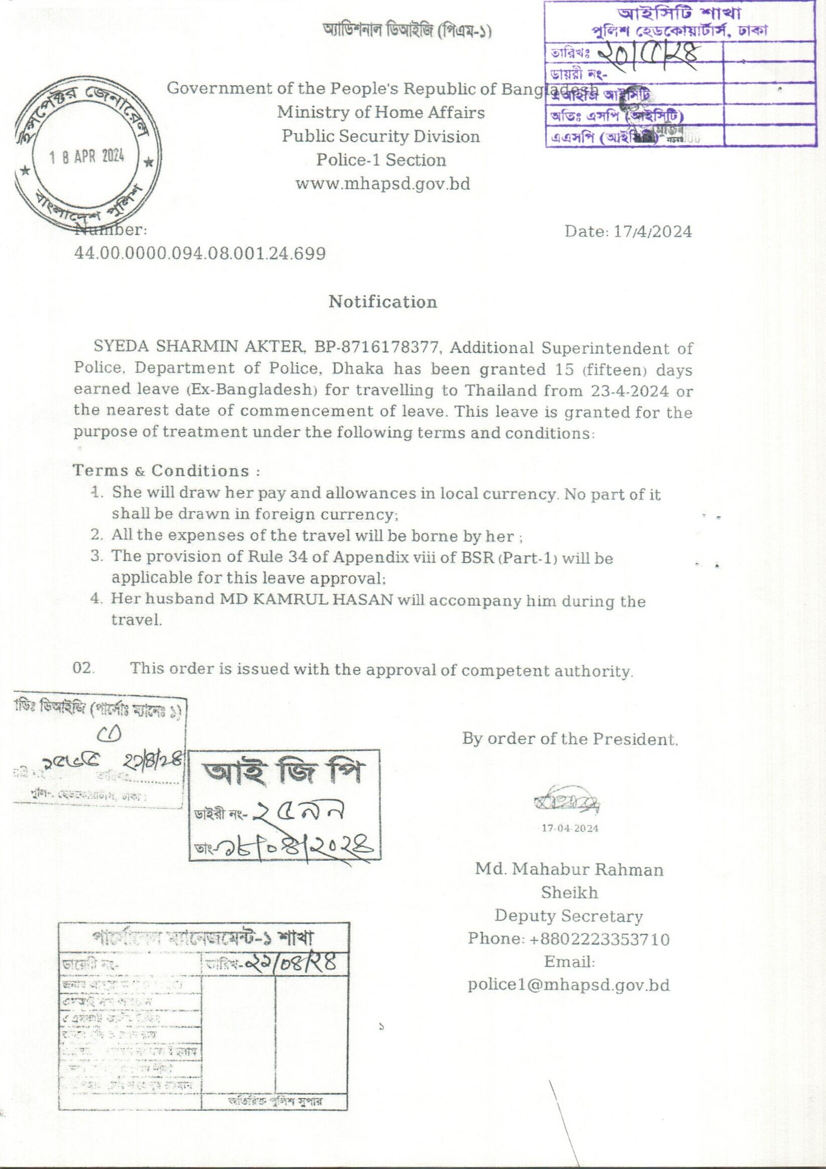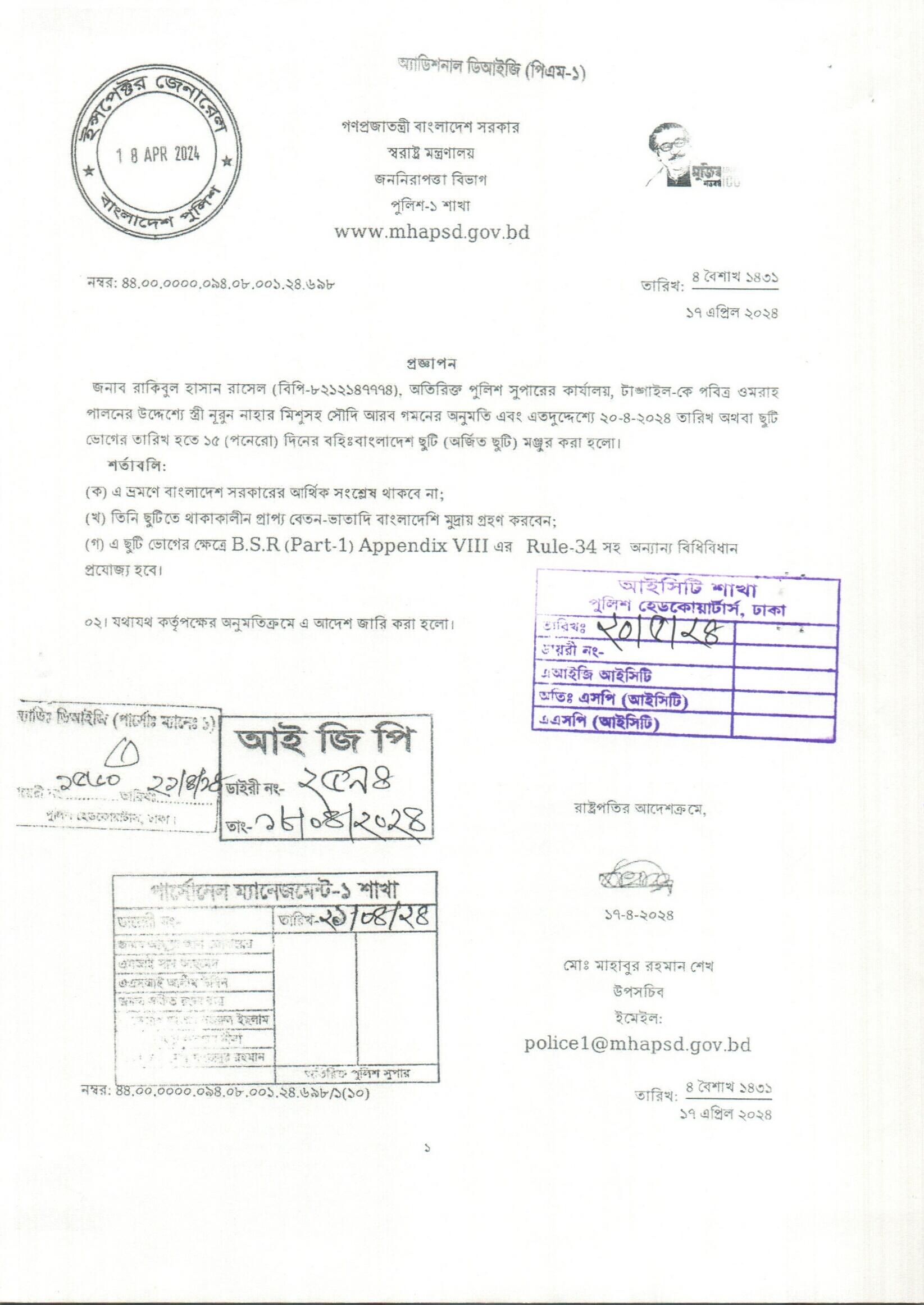 বহিঃ বাংলাদেশ ছুটি, প্রজ্ঞাপন নং- ৭০২, তারিখঃ ১৭/০৪/২০২৪ খ্রিঃ।